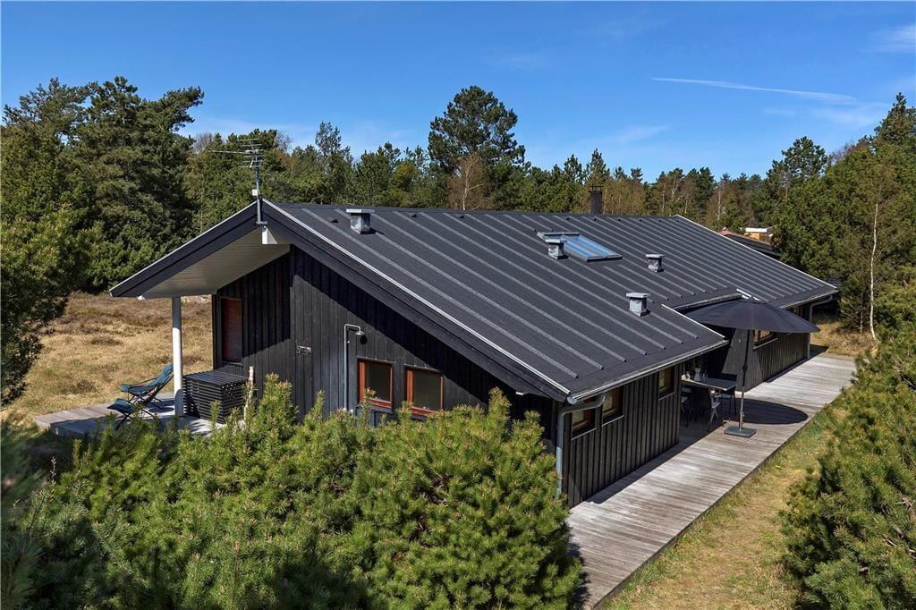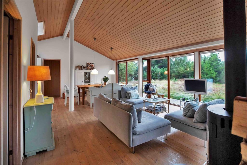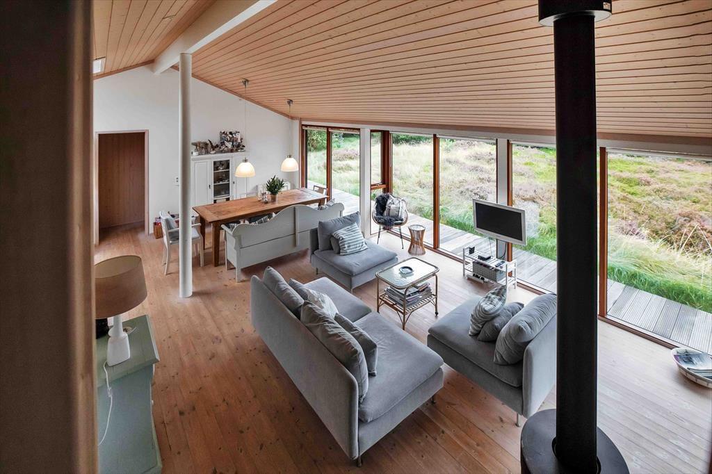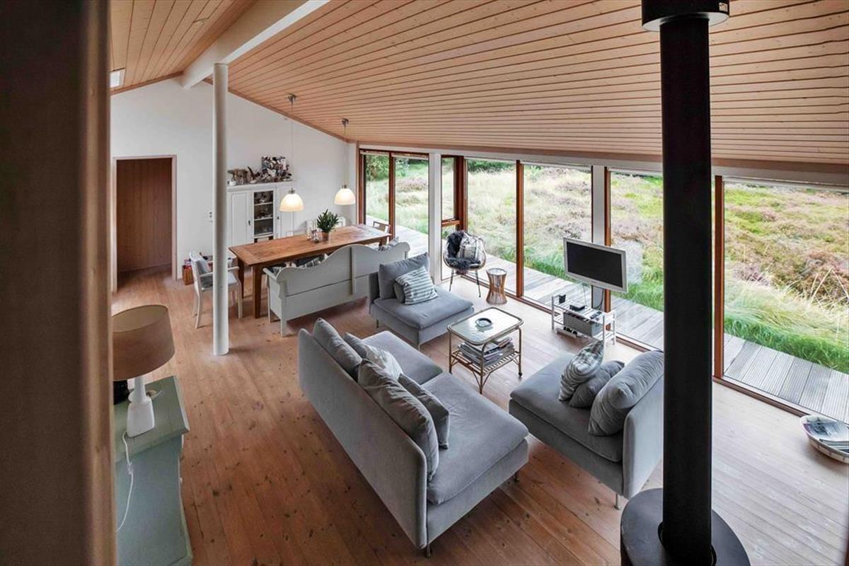 Dieses ansprechende, in warmen Farbtönen gehaltene und gut eingerichtete Ferienhaus fasziniert mit seinen großen Räumen. Die hohen Decken lassen die Räumlichkeiten noch größer erscheinen, als sie sind. Der Wohnraum mit offen integrierter Küche ist das Herzstück deines Mietobjektes. Sofa und Esstisch verwöhnen mit einem Panoramablick auf das große, mit Heide bedeckte Naturgrundstück. Das Sofa lädt mit seinen weichen Kissen zu erholsamen entspannten Stunden, aber auch zu angeregten Gesprächen mit einem frischen Kaffee in der Hand ein. In der Küche sorgt ein Dachflächenfenster für einen schönen Tageslichteinfall und einen allabendlichen Ausblick auf die funkelnden Sterne.