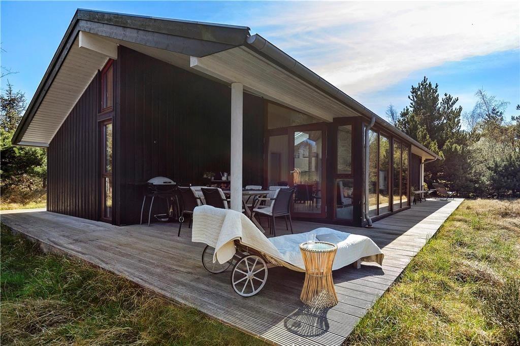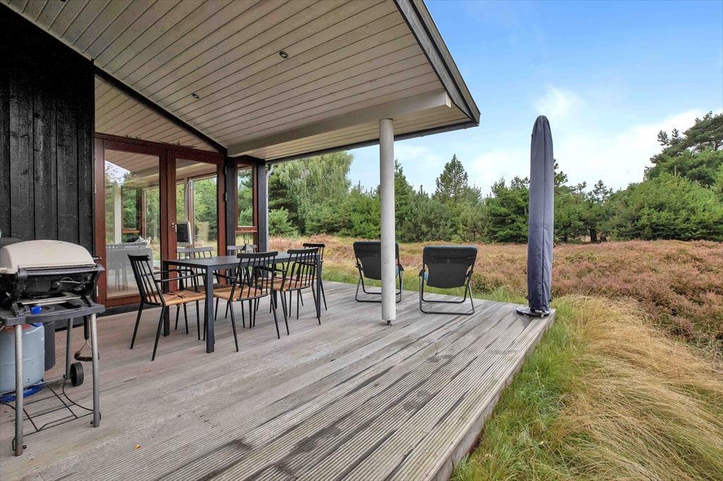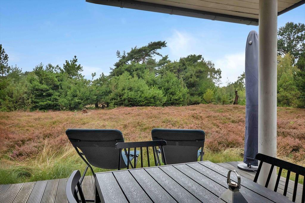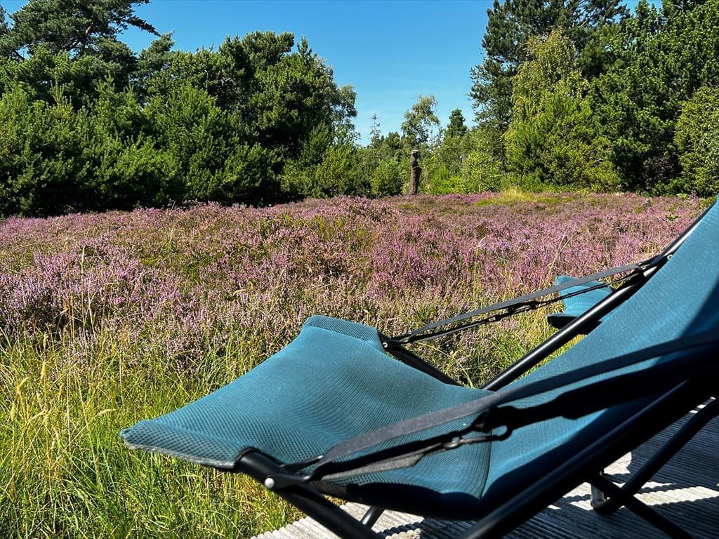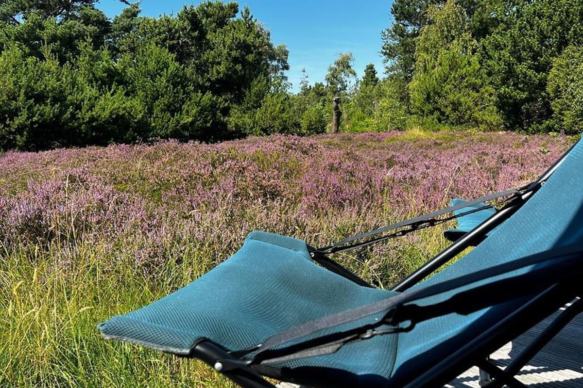 Natürlicher Bewuchs mit Heide prägt dein Naturgrundstück. Die Grundstücksränder zieren überwiegend Nadelbäume. Auf der breiten Terrasse befindest du dich förmlich mitten in der Natur und spürst die Nähe zum wenige hundert Meter entfernten Meer. Gern wirst du mit deinen Lieben einen langen, erlebnisreichen Urlaubstag mit einem Grillabend auf der Terrasse ausklingen lassen. Gartenmöbel und ein Gasgrill stehen selbstverständlich bereit. Nach einem Bad in den wogenden Wellen der Sejerøbucht spült dir die Außendusche deines Hauses den Sand und das Salz des Meeres von der Haut. Anschließend kannst du dich auf einem der Liegestühle von der Sonne trocknen lassen.