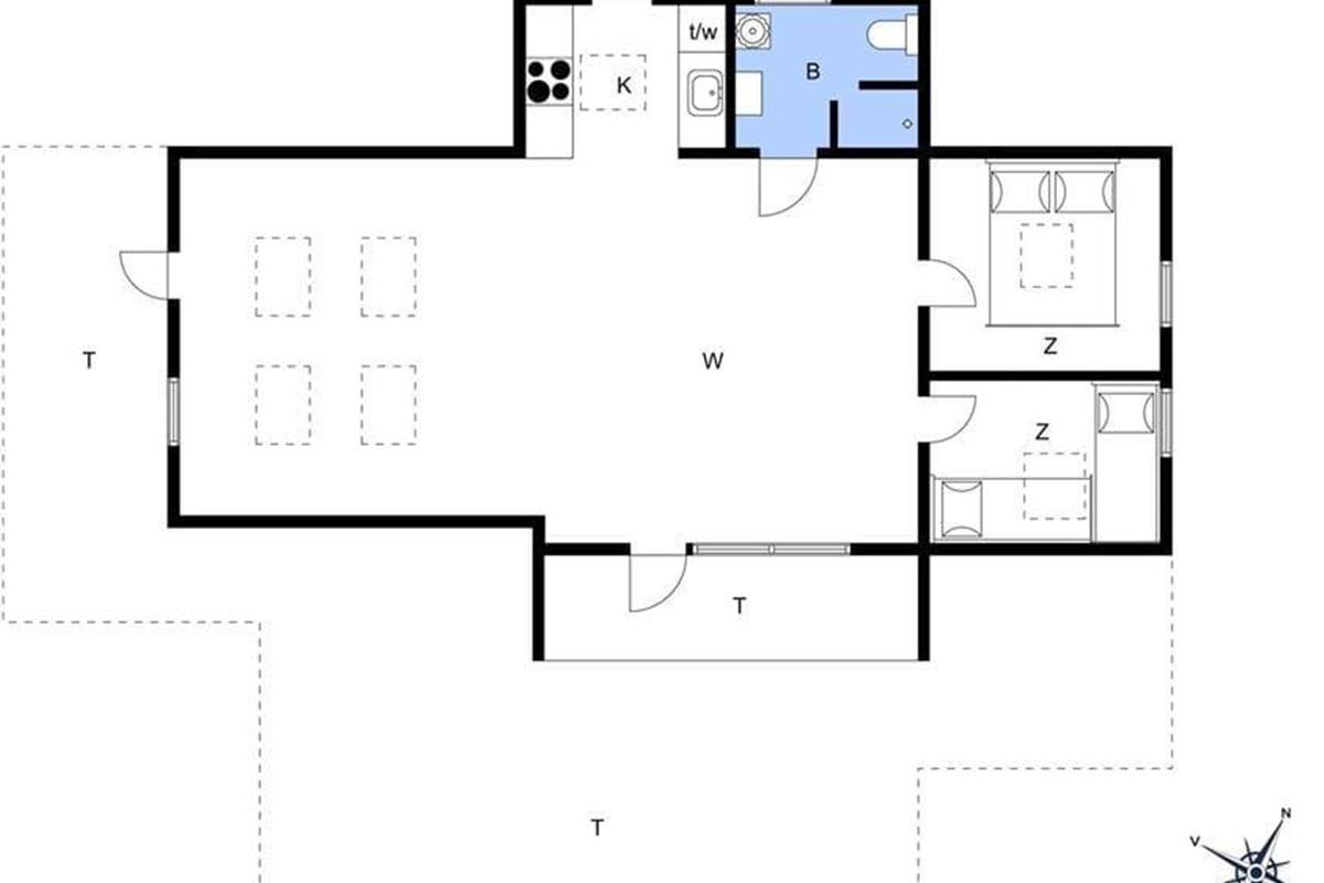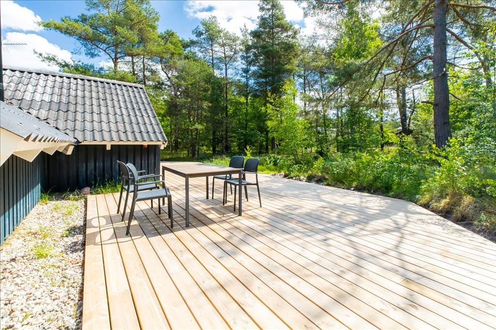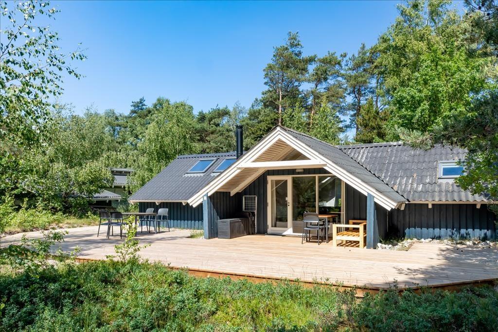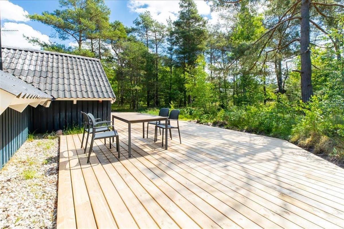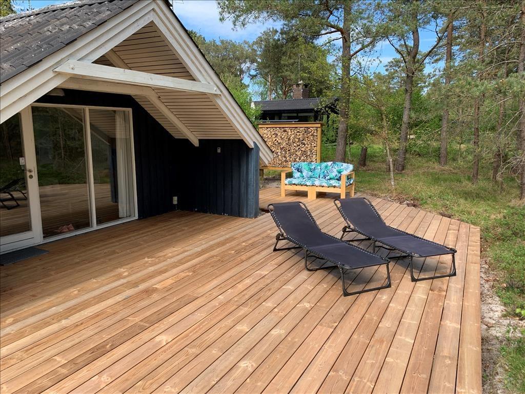 Das Haus empfängt Sie mit einem gemütlichen Wohnraum, der über ein Sofaarrangement vor dem Kaminofen verfügt und mit seinem Ausblick auf das Naturgrundstück mit herrlicher Heide besticht, auf dem Sie mit ein wenig Glück äsende Rehe beobachten werden. Im großen Esszimmer ist ein Schlafsofa für zwei Personen untergebracht. Das Esszimmer grenzt direkt an die offene Küche und verwöhnt Ihre Kinder mit viel Platz zum Spielen. In der Küche erleichtert Ihnen ein Geschirrspüler den täglichen Abwasch. Die Schlafplätze verteilen sich neben dem bereits erwähnten Schlafsofa auf einen Schlafraum mit einem Doppelbett und einen Schlafraum mit zwei Einzelbetten, einer Kommode und Schrankfläche. Das Badezimmer beinhaltet eine Dusche. Aufgrund der Dachkonstruktion und der Dachfenster dürfen Sie sich auf einen fantastischen Tageslichteinfall freuen. Die große Holzterrasse ist direkt vom Wohnraum aus zugänglich und lädt zu herrlichen Stunden mit einem guten Buch, einem ausgedehnten Sonnenbad oder der einen oder anderen geselligen Runde mit einem köstlichen Essen vom Grill ein.