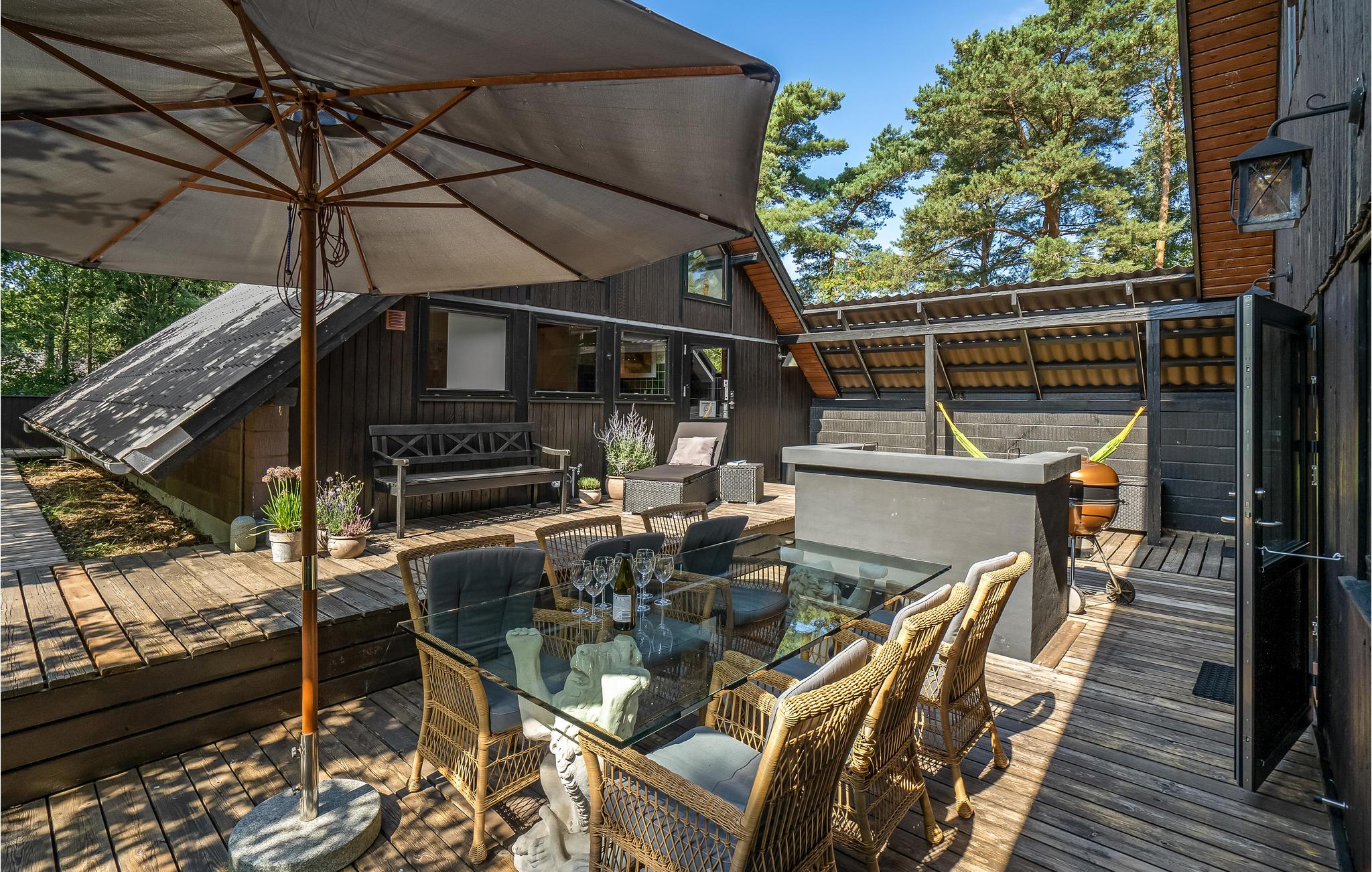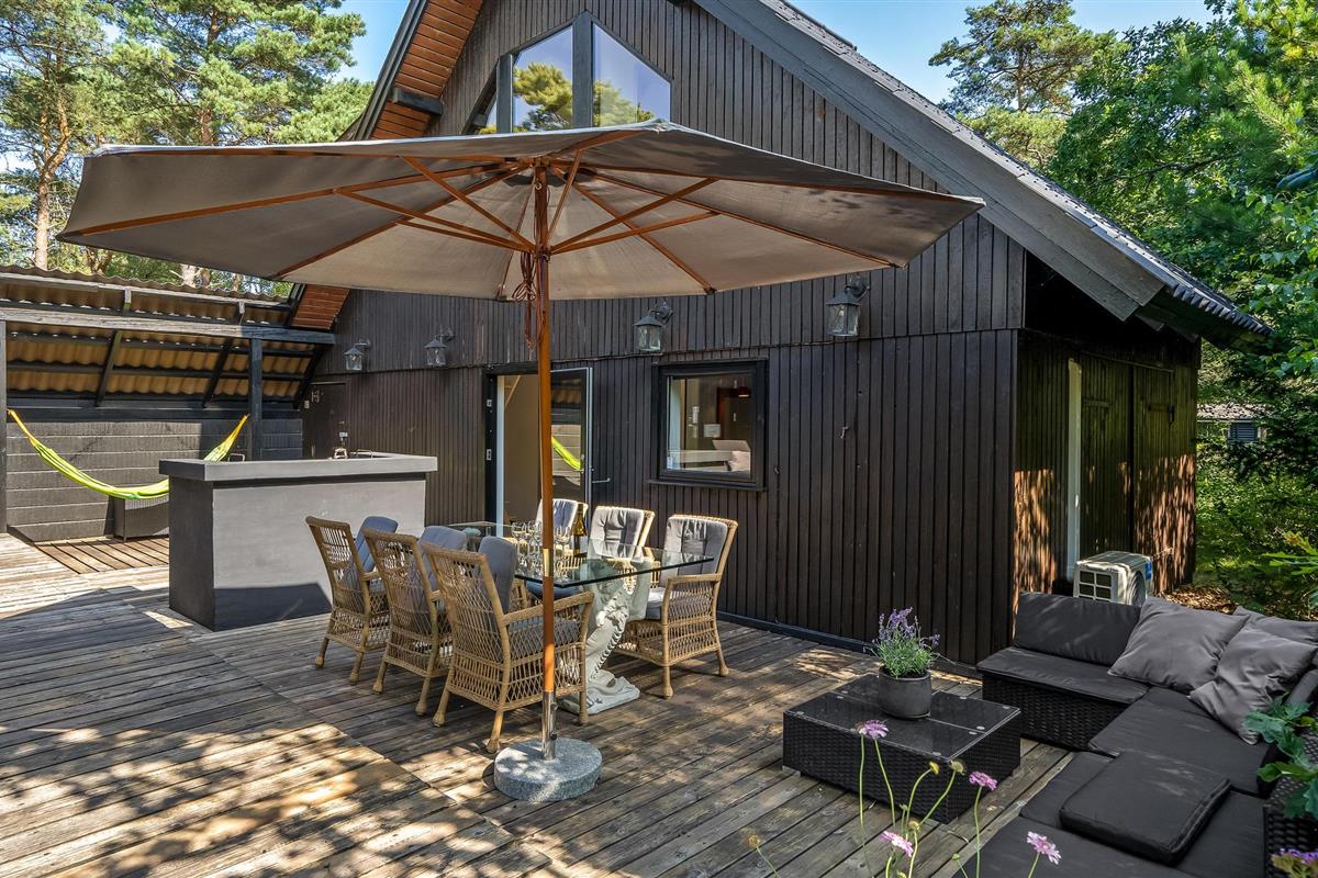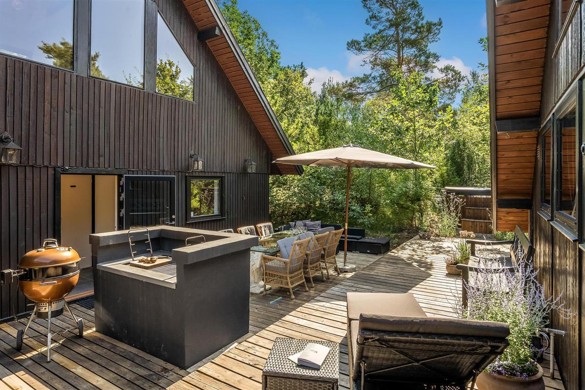 Charmant vakantiehuis vlakbij kindvriendelijk strand in Gudmindrup met modern comfort en ruime terrassen.