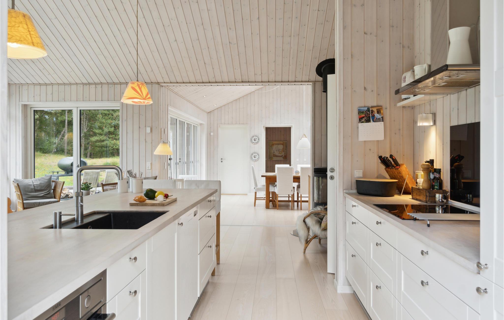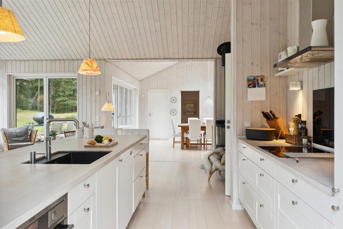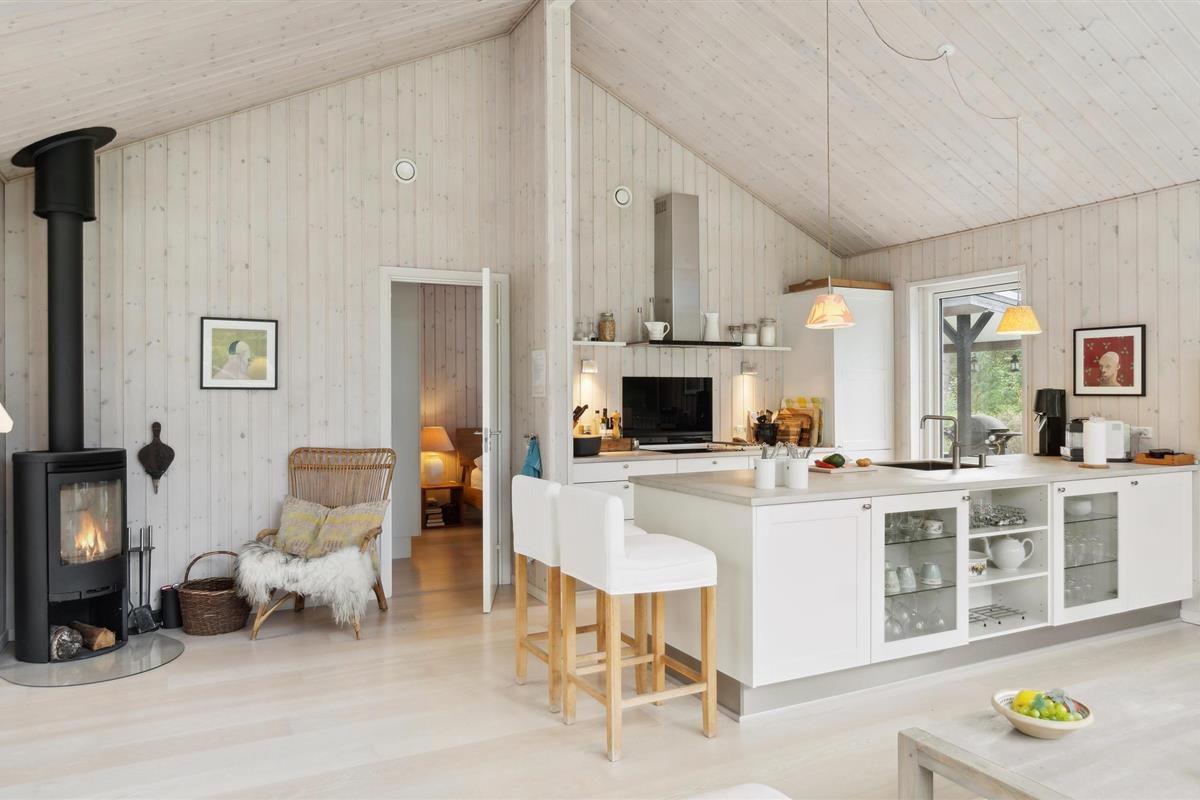 Geniet van je familievakantie in dit smaakvolle en aantrekkelijke vakantiehuis in Gudminderup. Doe alsof je thuis bent en geniet van de kamers met houten lambrisering. De open woonkamer, met keuken, eethoek, open haard en gezellige zithoek, biedt je een geweldige sfeer met zijn grote panoramische ramen, want hier wordt het binnenleven gecombineerd met het terras en de idyllische tuin. Afhankelijk van het moment van de dag vind je de mooiste zonnige plekjes op het terras en kun je ontspannen terwijl je koffie drinkt, leest of samen speelt. Terwijl sommigen barbecueën in de tuin, kunnen anderen een sauna nemen en 's avonds samenkomen voor heerlijke maaltijden op het terras.