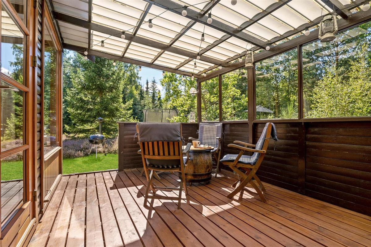 Kom binnen in het gezellige houten huis en voel u thuis. Hier kunt u tot rust komen en genieten. In de lichtovergoten woonkamer kunt u zich uitrekken op de bank en u laten verwarmen door de open haard terwijl u naar een leuke film kijkt. Ook in de andere kamers kunt u samen genieten en samen koken, eten en spelen. Een sauna maakt het aanbod van het huis compleet. Breng ook sociale tijd door in de tuin. Geniet van een koel drankje op het overdekte terras of rooster marshmallows boven de vuurschaal. Uw kinderen kunnen zich ook uitleven op de trampoline en de andere speeltoestellen.