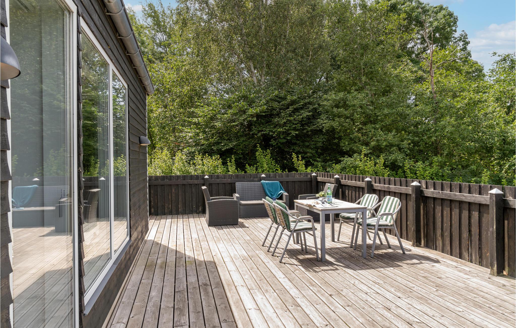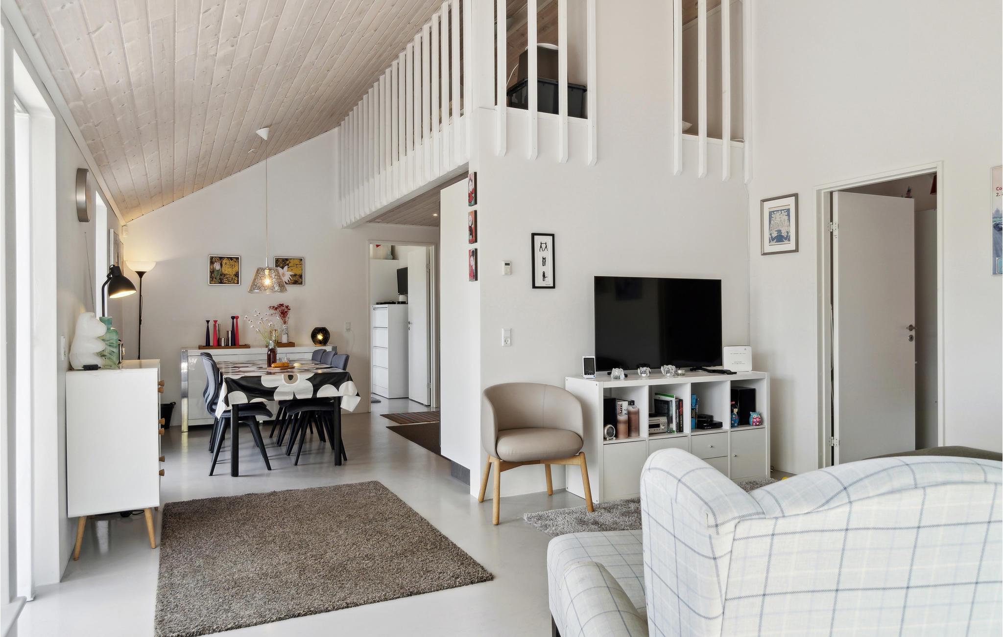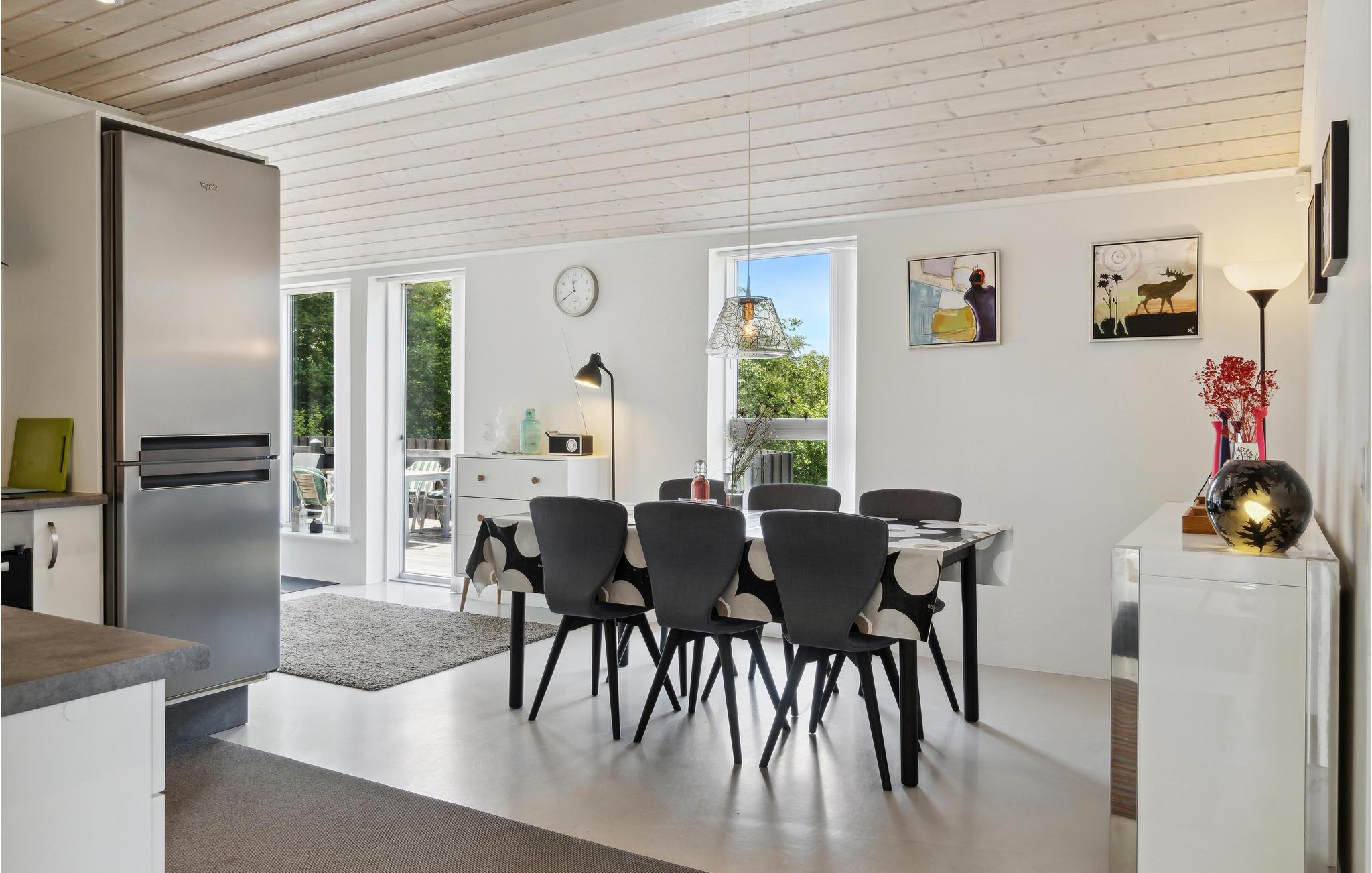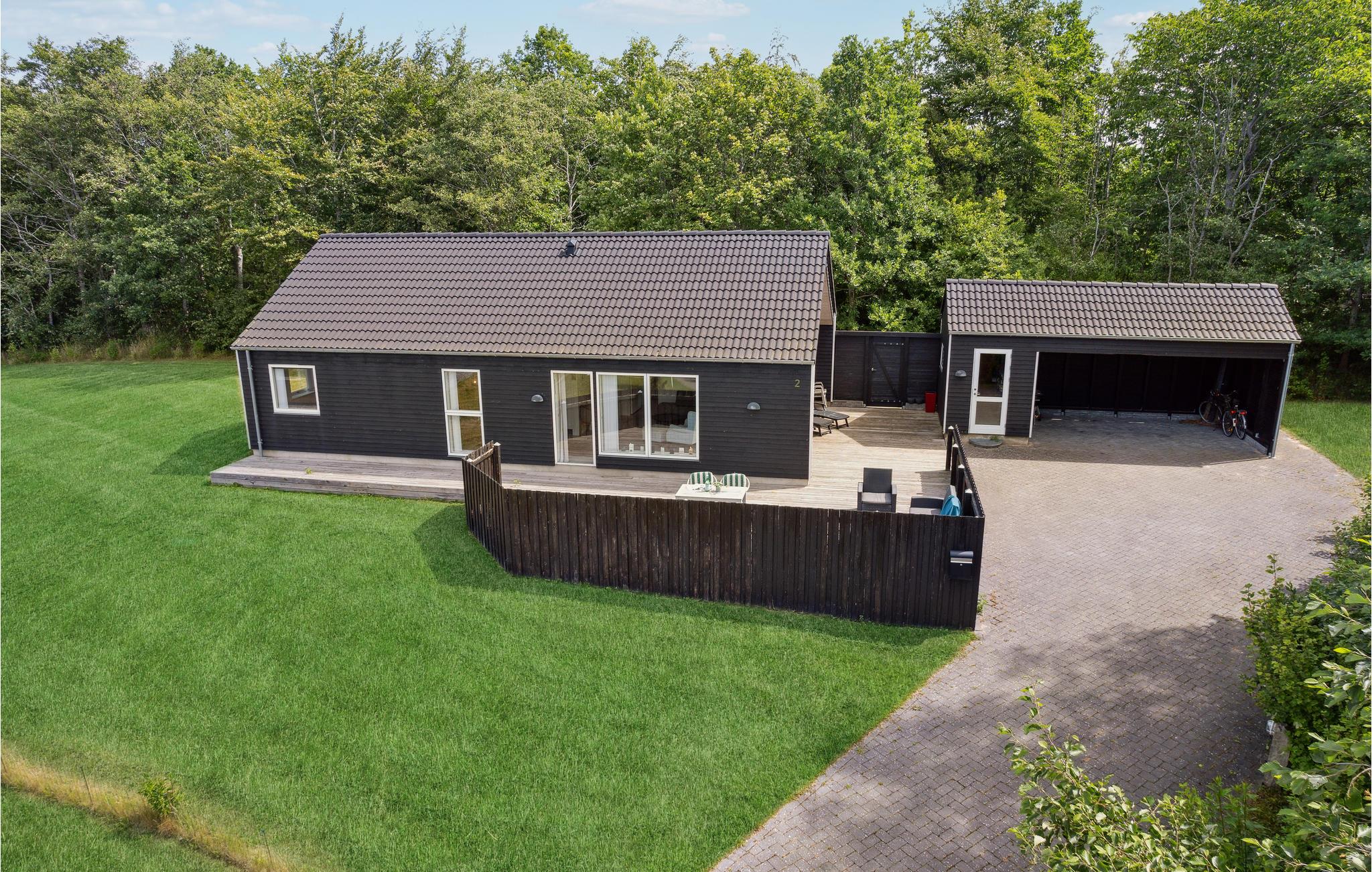 Ontdek dit energiezuinige vakantiehuis nabij het kindvriendelijke strand van Gudmindrup, met ruime tuin en moderne voorzieningen.