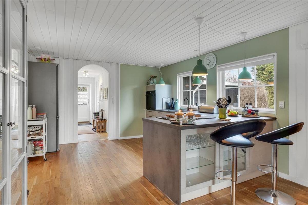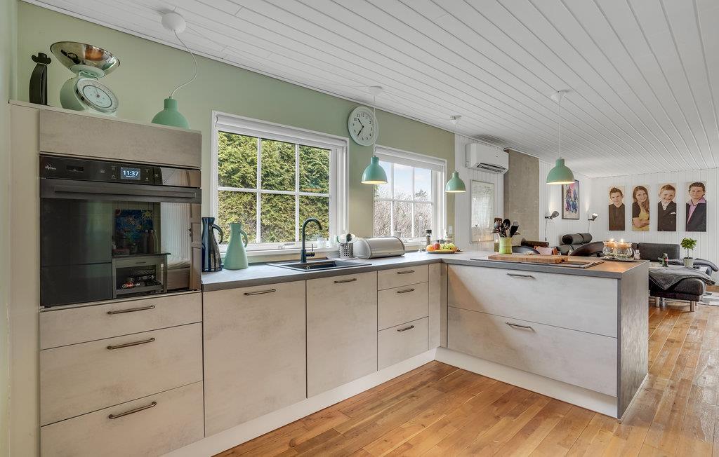 Niet ver van een bos en het mooie zandstrand van Gudmindrup heet dit mooie vakantiehuis u welkom.