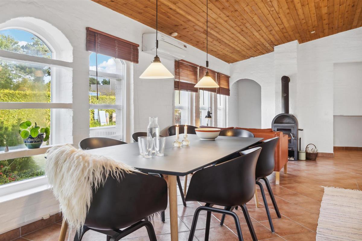 Kom tot rust in Haarbölle en geniet van dit huis van hoge kwaliteit met je uitgebreide familie of meerdere stellen, dat je niet alleen goede faciliteiten biedt, maar ook uitzicht op zee op de 1e verdieping. Geniet van de mogelijkheden die dit lichte huis met zorgvuldig geselecteerde decoratie biedt. Drink je ochtendkoffie op het balkon met uitzicht op de haven terwijl je je eerste plannen voor de komende dag maakt. Je kunt ook genieten van de omheinde tuin met verschillende ontspanningsruimtes zoals een schommel, hangmat en ligstoel. Hier kun je overdag ontspannen in de zon of de zomeravonden doorbrengen met barbecueën en gezelligheid bij de vuurschaal.