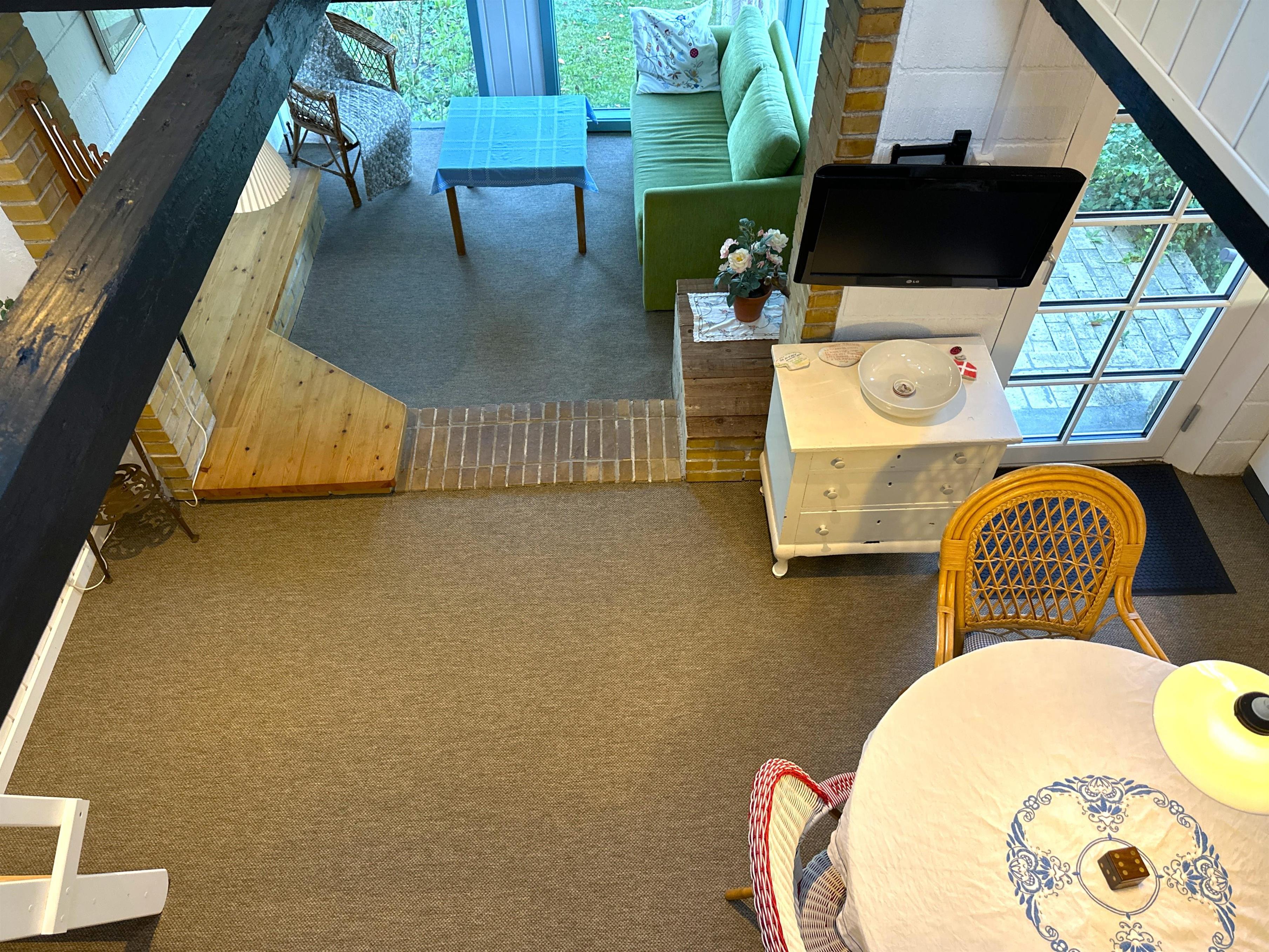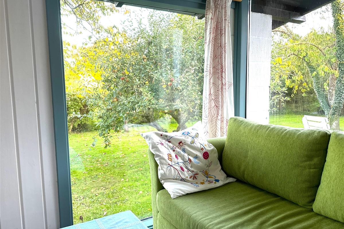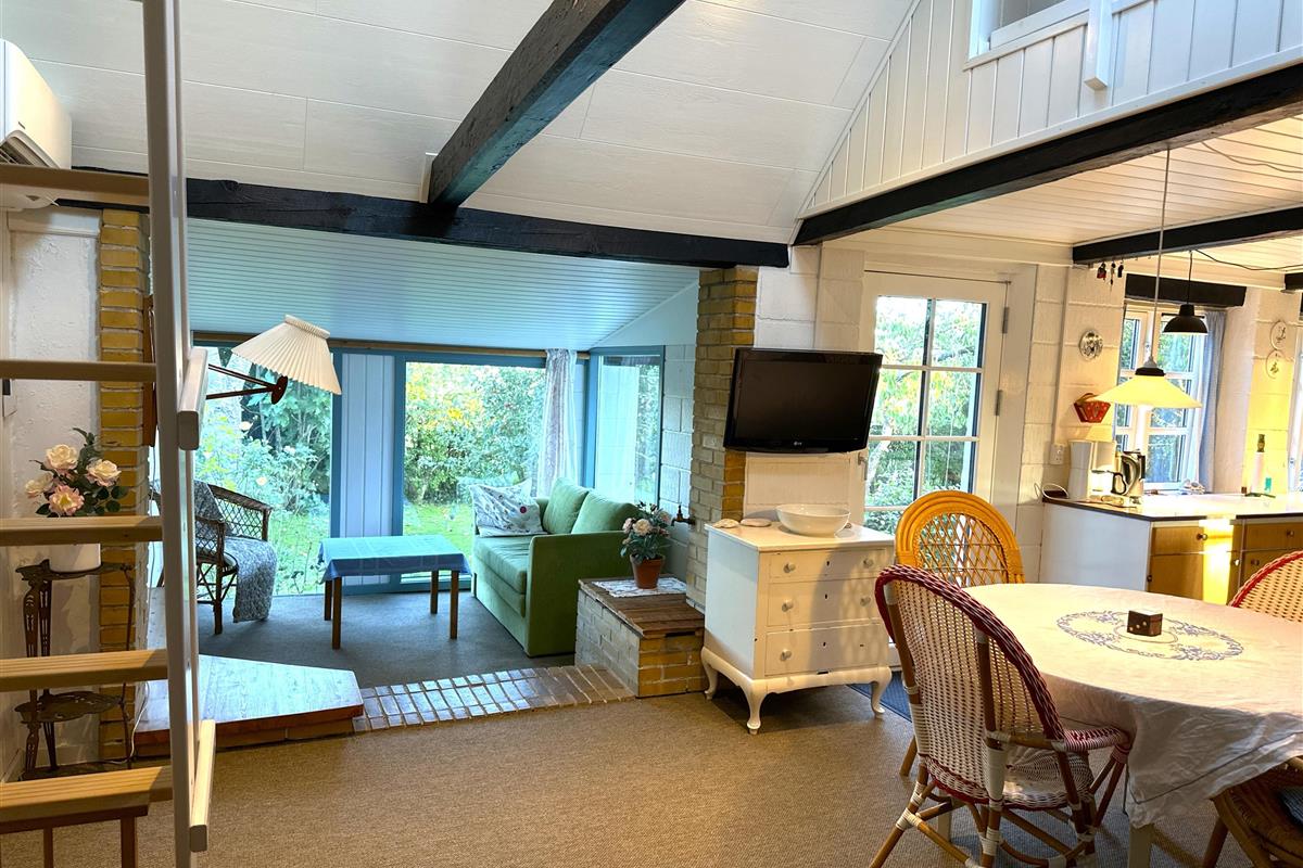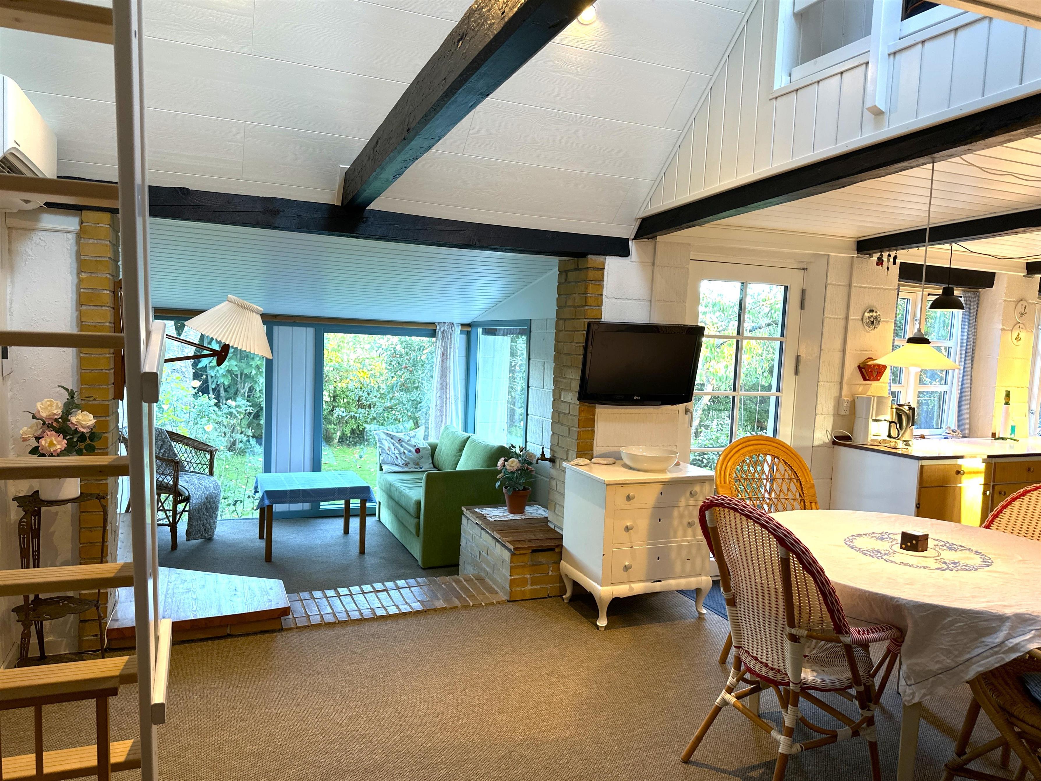When you step inside, you are greeted by the kitchen and a large dining room, which provides the setting for meals and socialising. There is also a smaller dining area close to the kitchen, which is perfect for quiet mornings or afternoon coffee. The conservatory, which is connected to the living room, lets in light and makes the house bright and inviting even on grey days. There are two bedrooms – one with a double bed and one with two single beds – as well as a loft with two extra single beds. The bathroom has a bathtub and shower, so you can choose according to your mood and the weather.