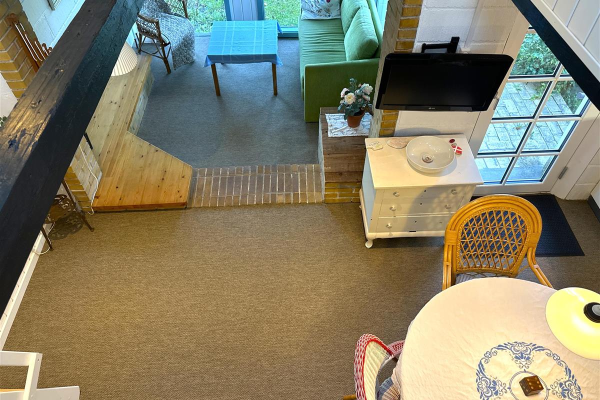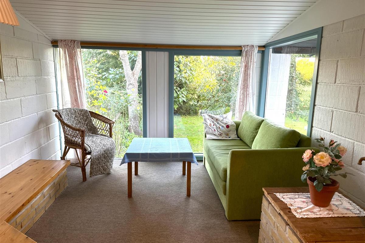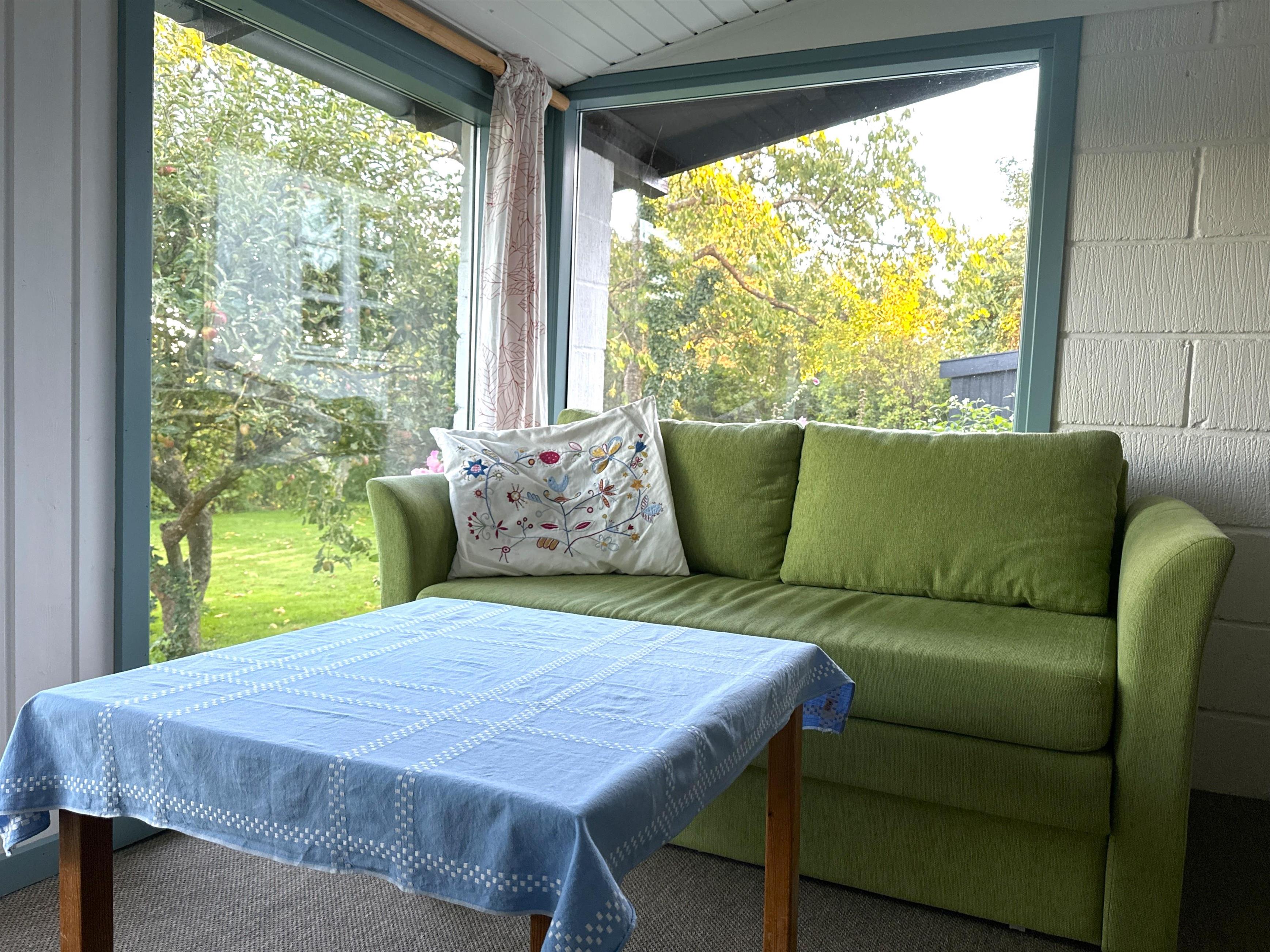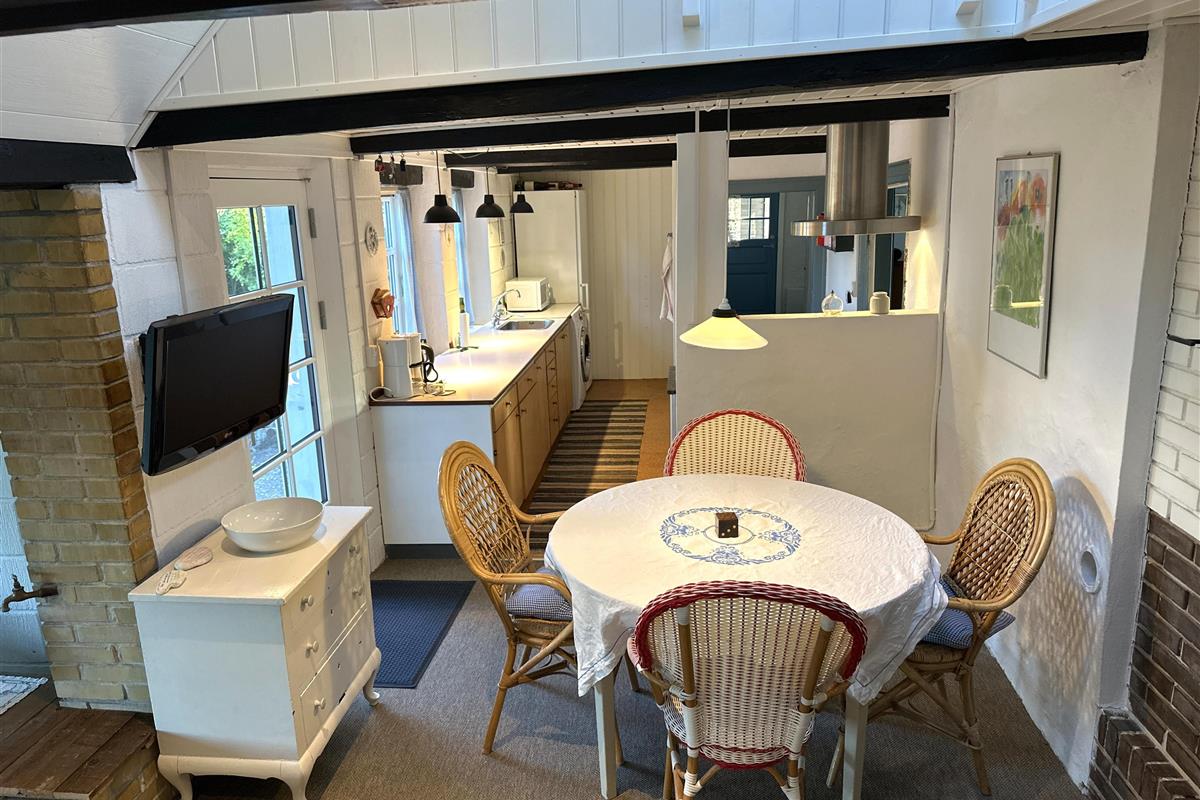 When you step inside, you are greeted by the kitchen and a large dining room, which provides the setting for meals and socialising. There is also a smaller dining area close to the kitchen, which is perfect for quiet mornings or afternoon coffee. The conservatory, which is connected to the living room, lets in light and makes the house bright and inviting even on grey days. There are two bedrooms – one with a double bed and one with two single beds – as well as a loft with two extra single beds. The bathroom has a bathtub and shower, so you can choose according to your mood and the weather.