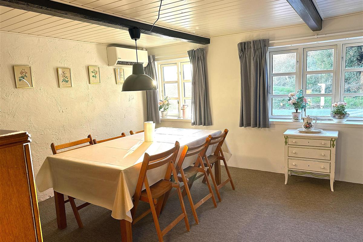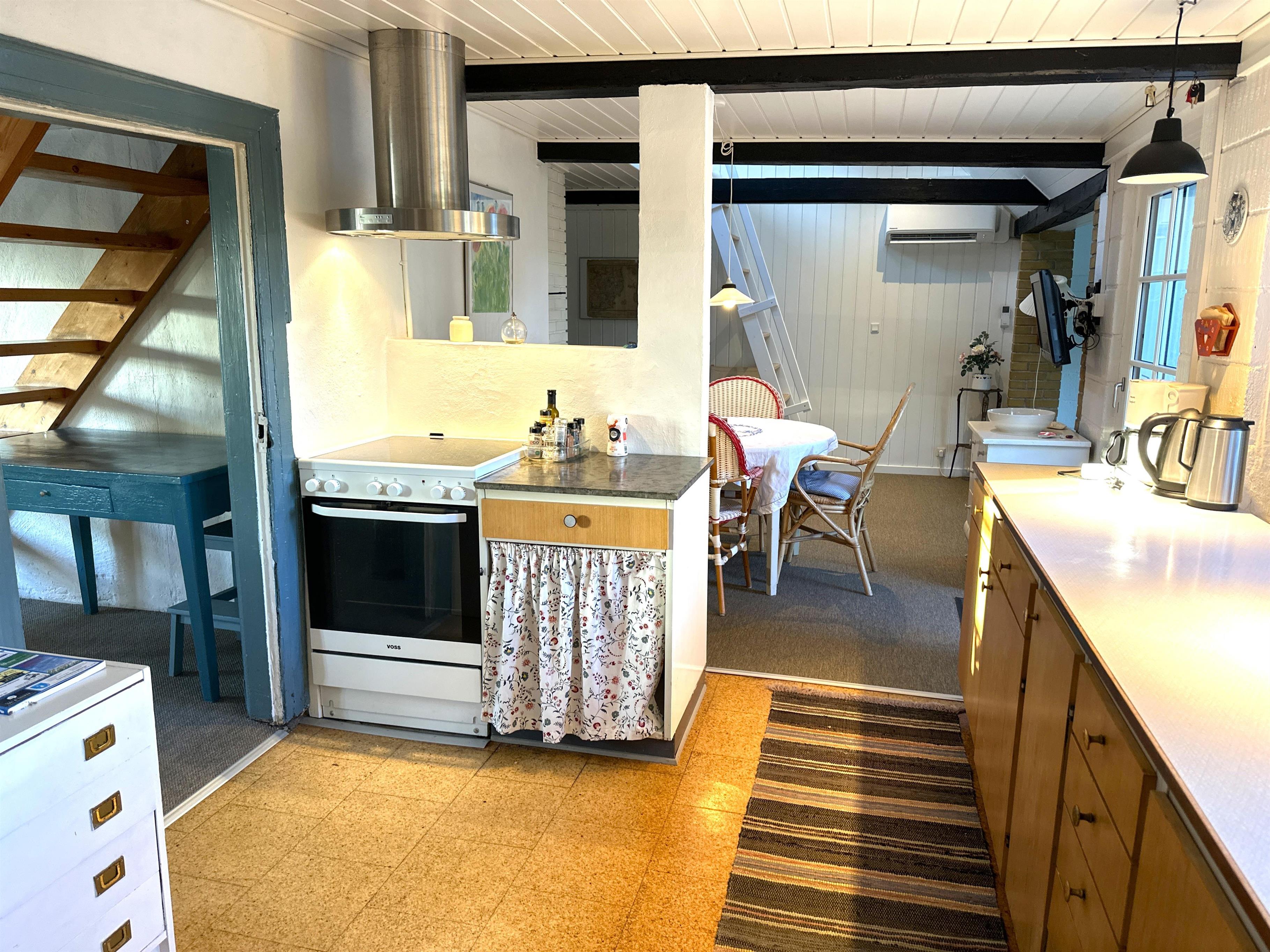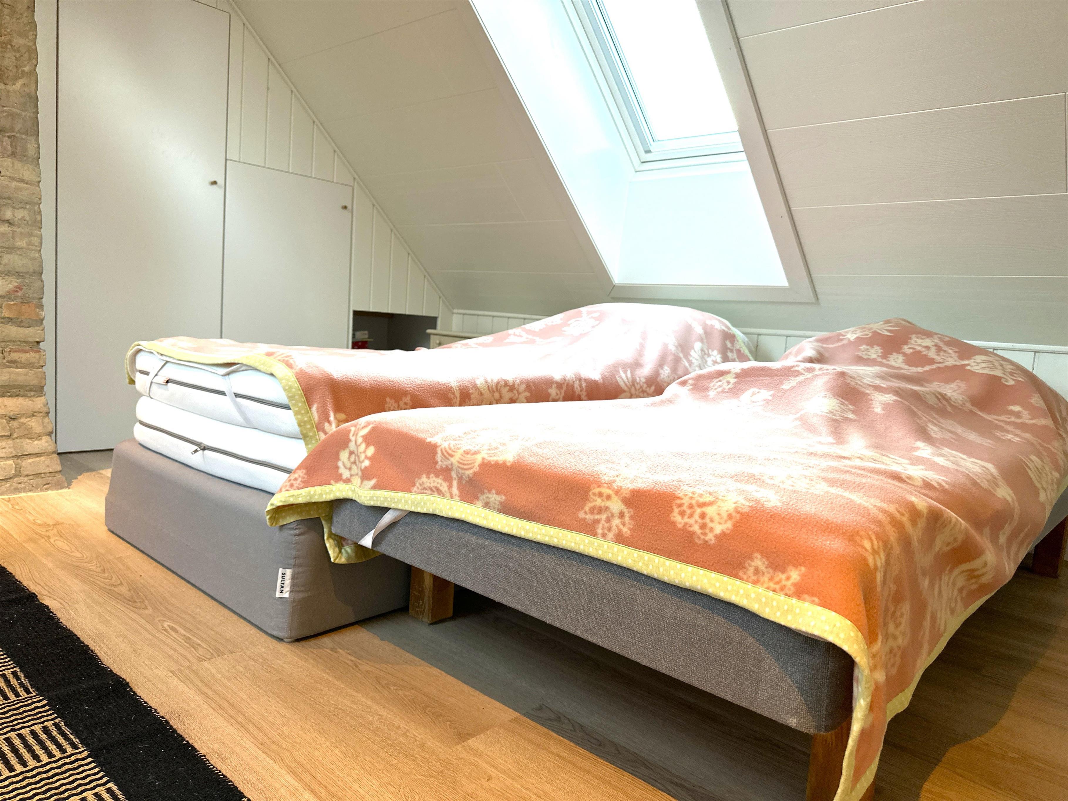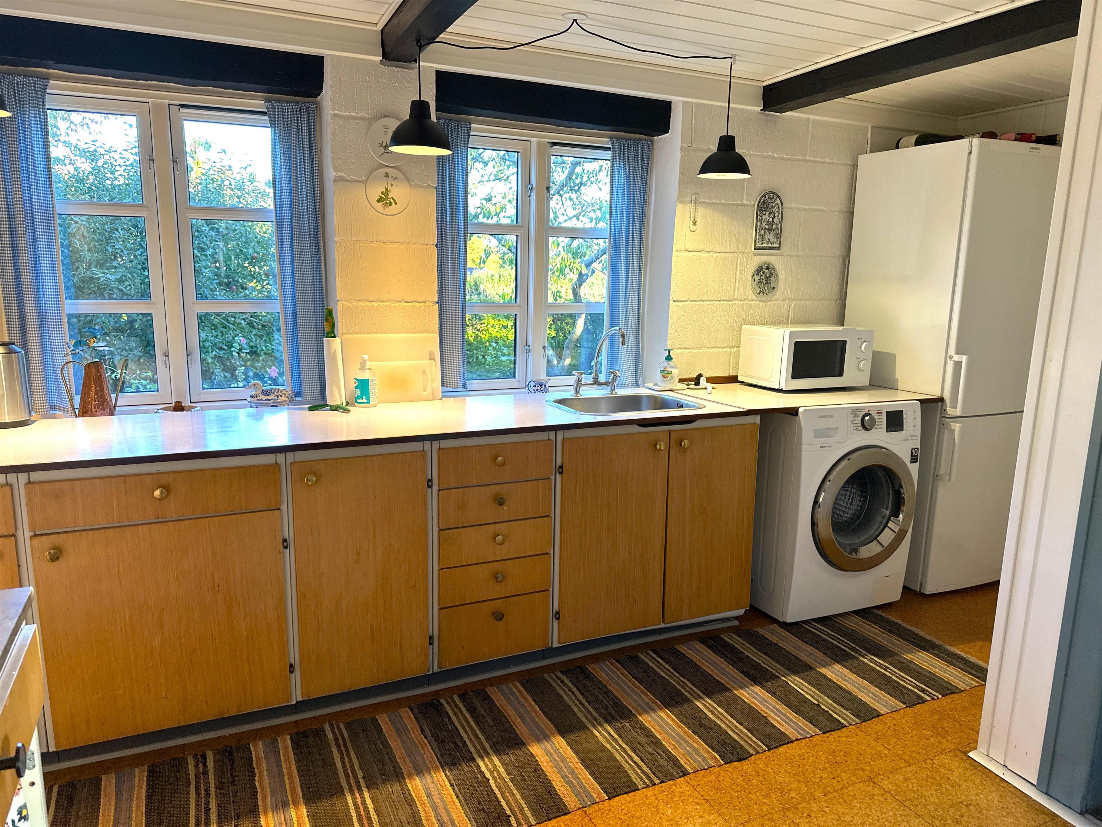 When you step inside, you are greeted by the kitchen and a large dining room, which provides the setting for meals and socialising. There is also a smaller dining area close to the kitchen, which is perfect for quiet mornings or afternoon coffee. The conservatory, which is connected to the living room, lets in light and makes the house bright and inviting even on grey days. There are two bedrooms – one with a double bed and one with two single beds – as well as a loft with two extra single beds. The bathroom has a bathtub and shower, so you can choose according to your mood and the weather.