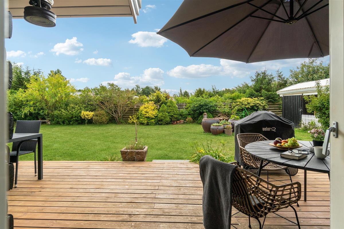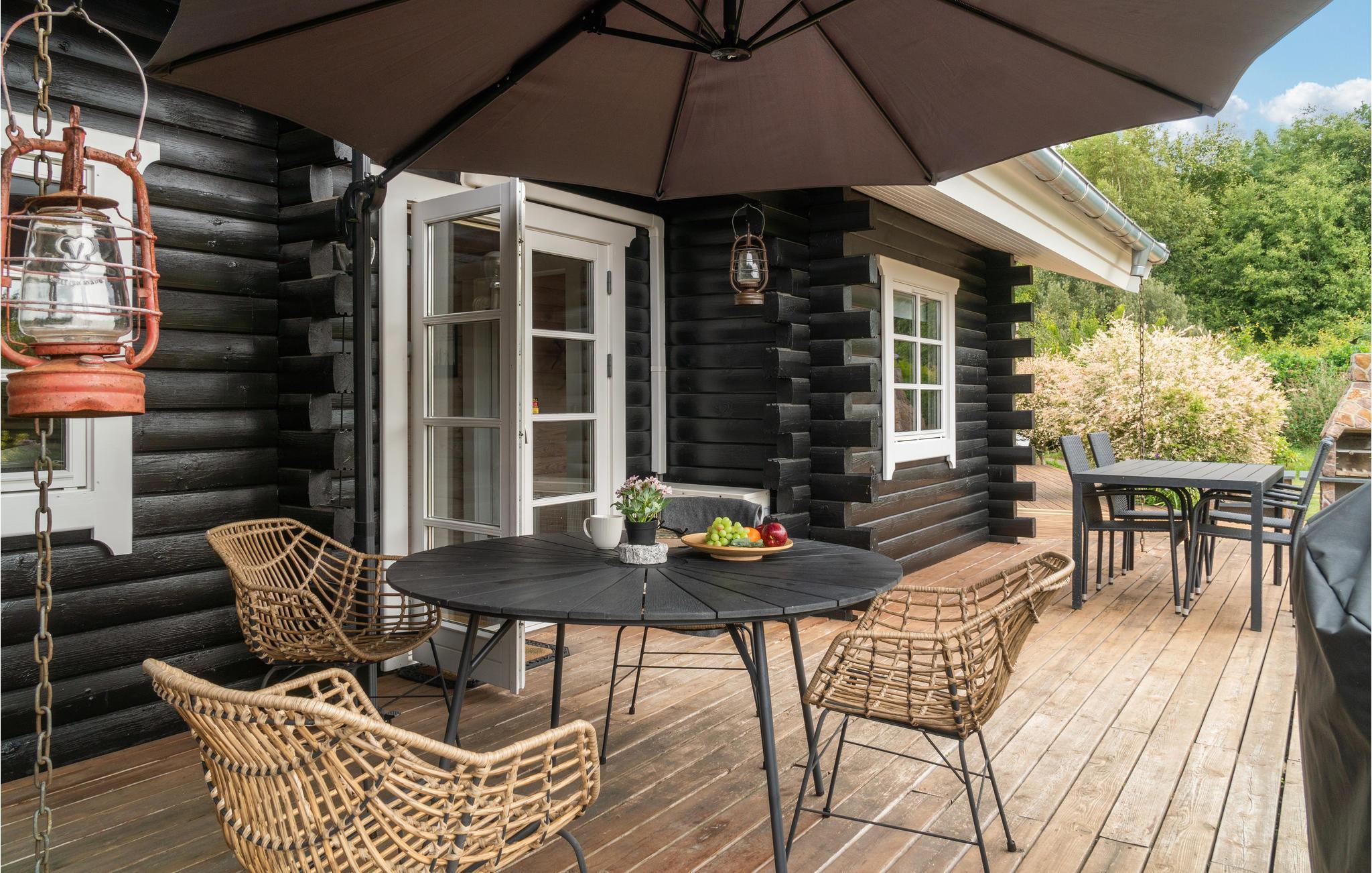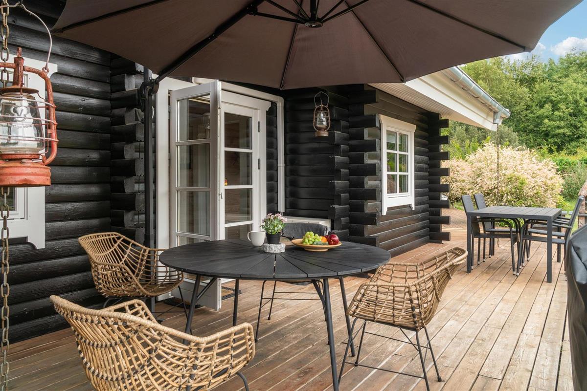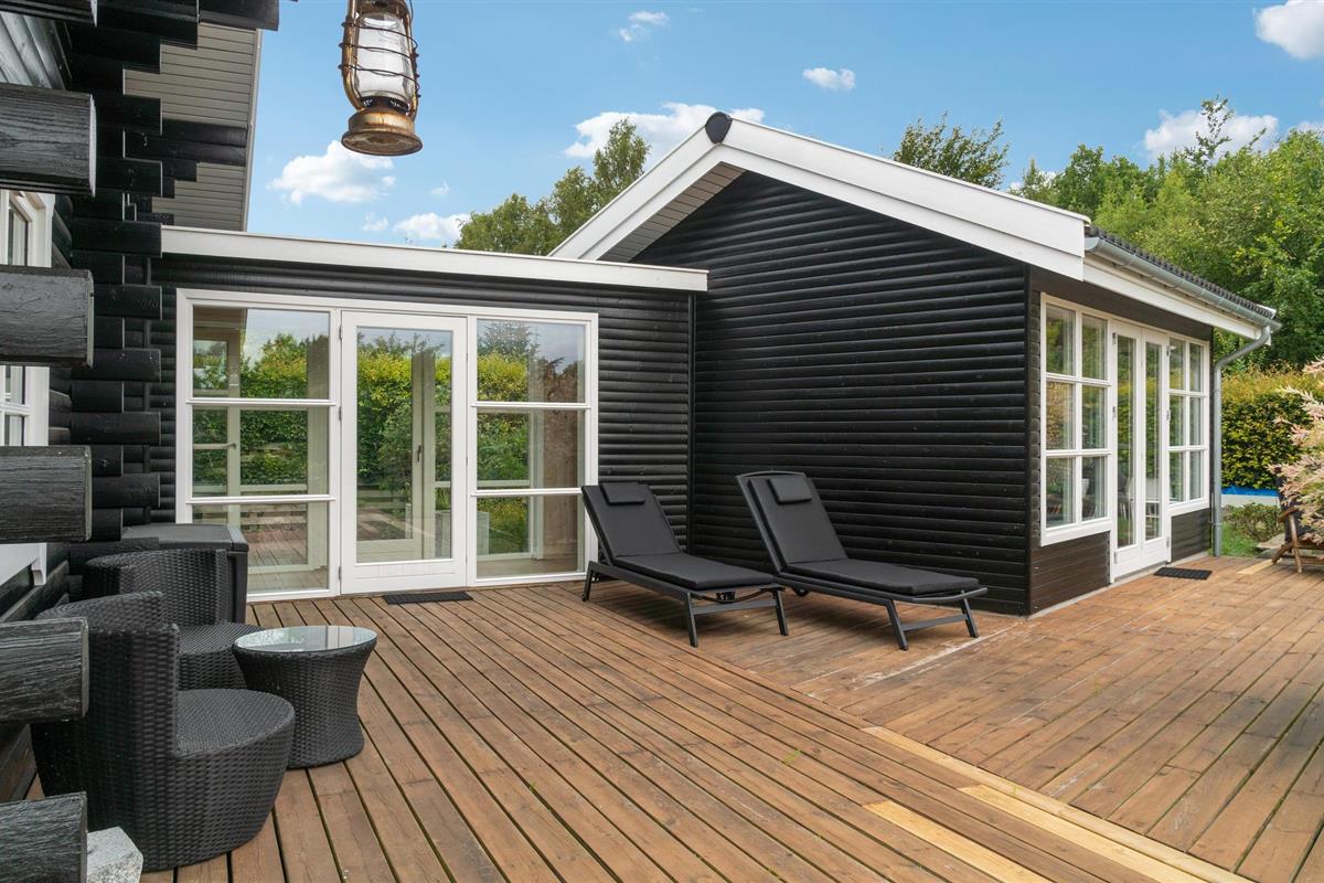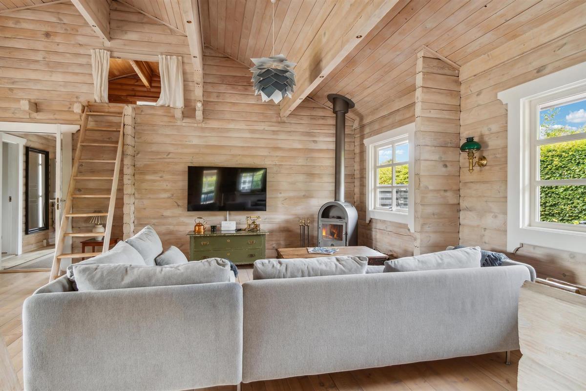 Vanuit de leefruimtes stap je op het uitgestrekte terras met verschillende hoekjes die je uitnodigen om te luieren en te zonnebaden. Buiten heeft het vakantiehuis ook veel te bieden, zoals de buitendouche, die gewaardeerd wordt op warme dagen, of de open haard, waar je 's avonds marshmellows kunt roosteren en in het vuur kunt staren. Je kunt zelfs buiten overnachten in de typisch Deense schuilplaats.