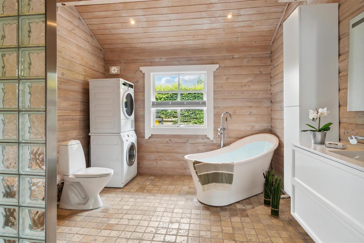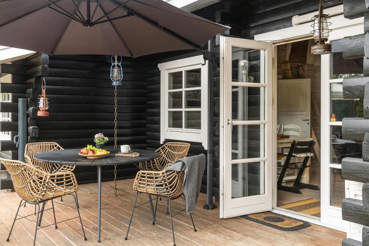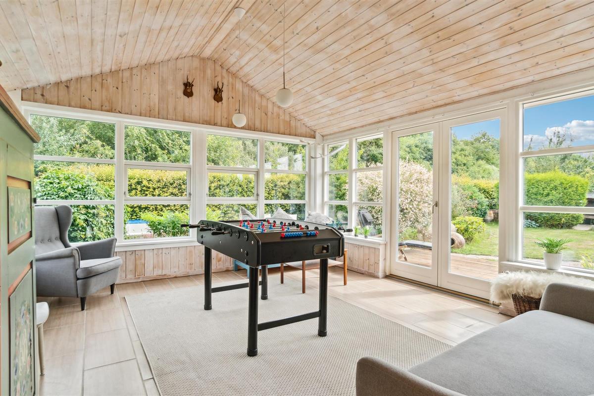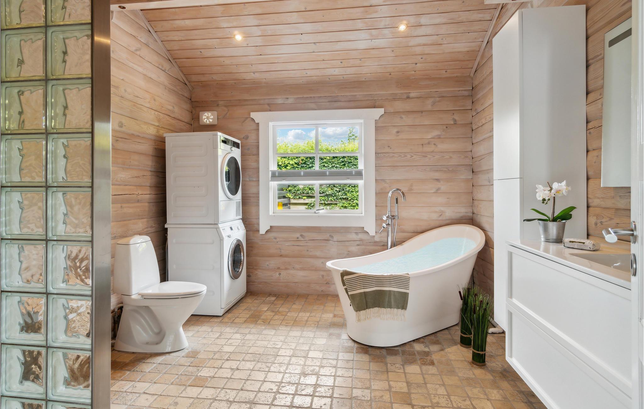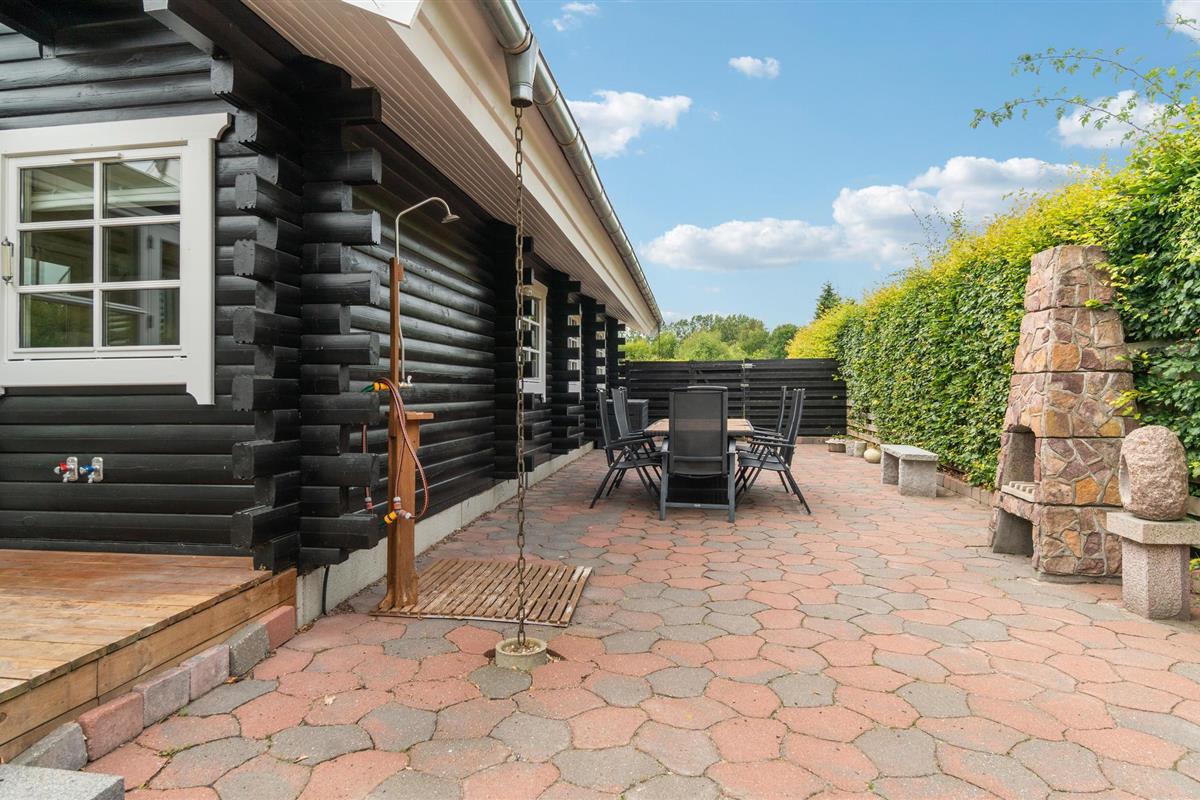 Vanuit de leefruimtes stap je op het uitgestrekte terras met verschillende hoekjes die je uitnodigen om te luieren en te zonnebaden. Buiten heeft het vakantiehuis ook veel te bieden, zoals de buitendouche, die gewaardeerd wordt op warme dagen, of de open haard, waar je 's avonds marshmellows kunt roosteren en in het vuur kunt staren. Je kunt zelfs buiten overnachten in de typisch Deense schuilplaats.