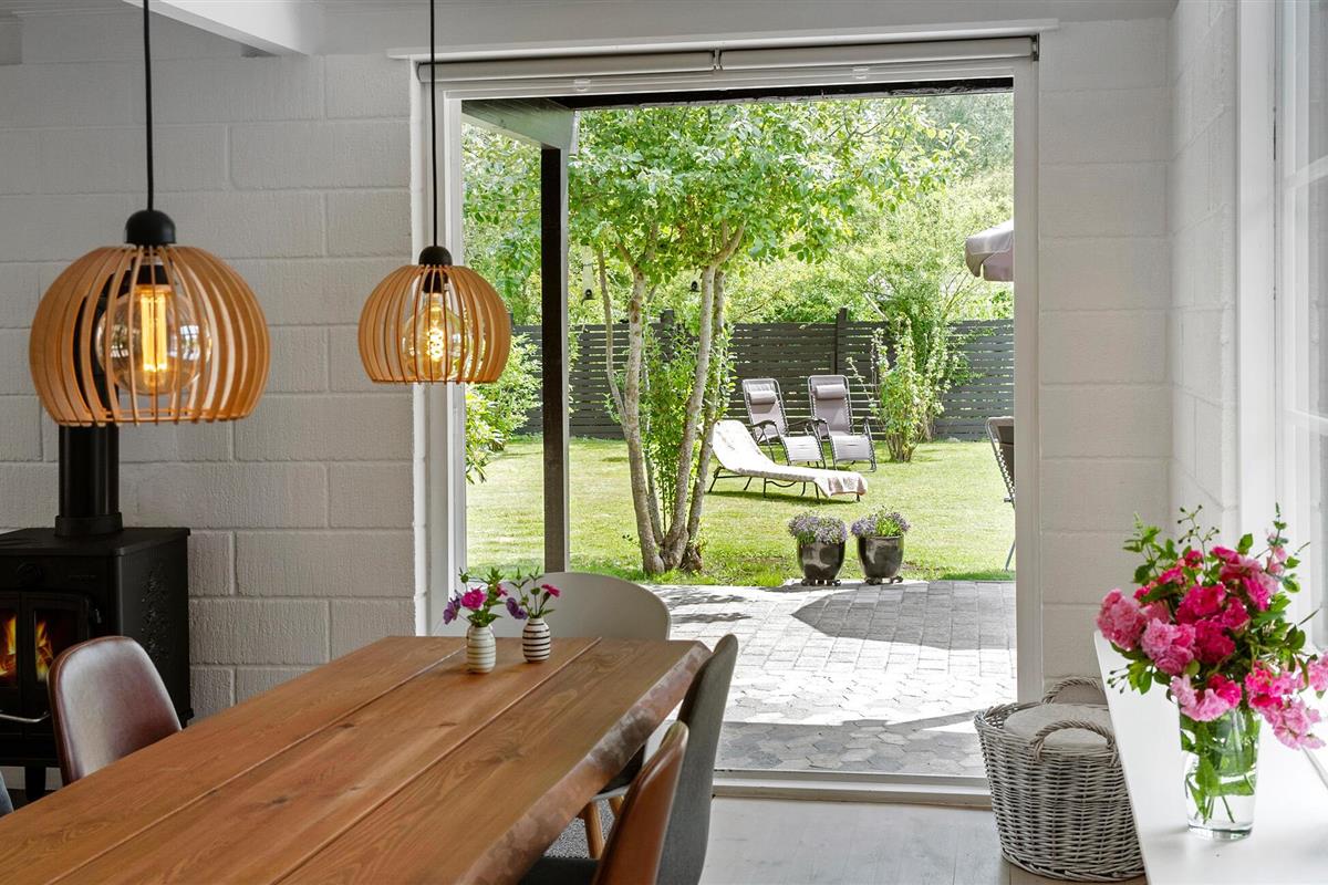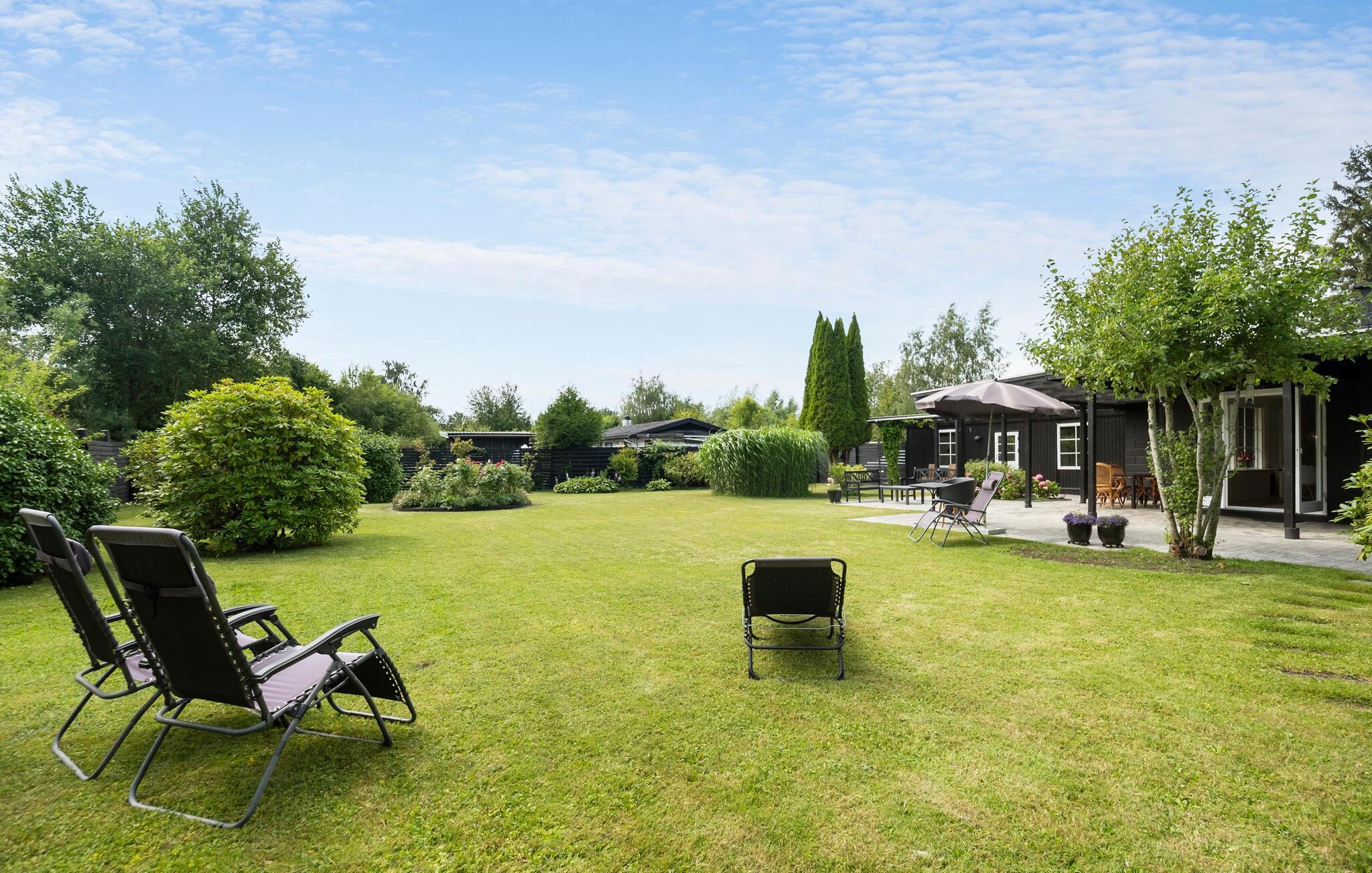 Stijlvol vakantiehuis met omheinde tuin nabij het zandstrand van Gudmindrup Lyng.