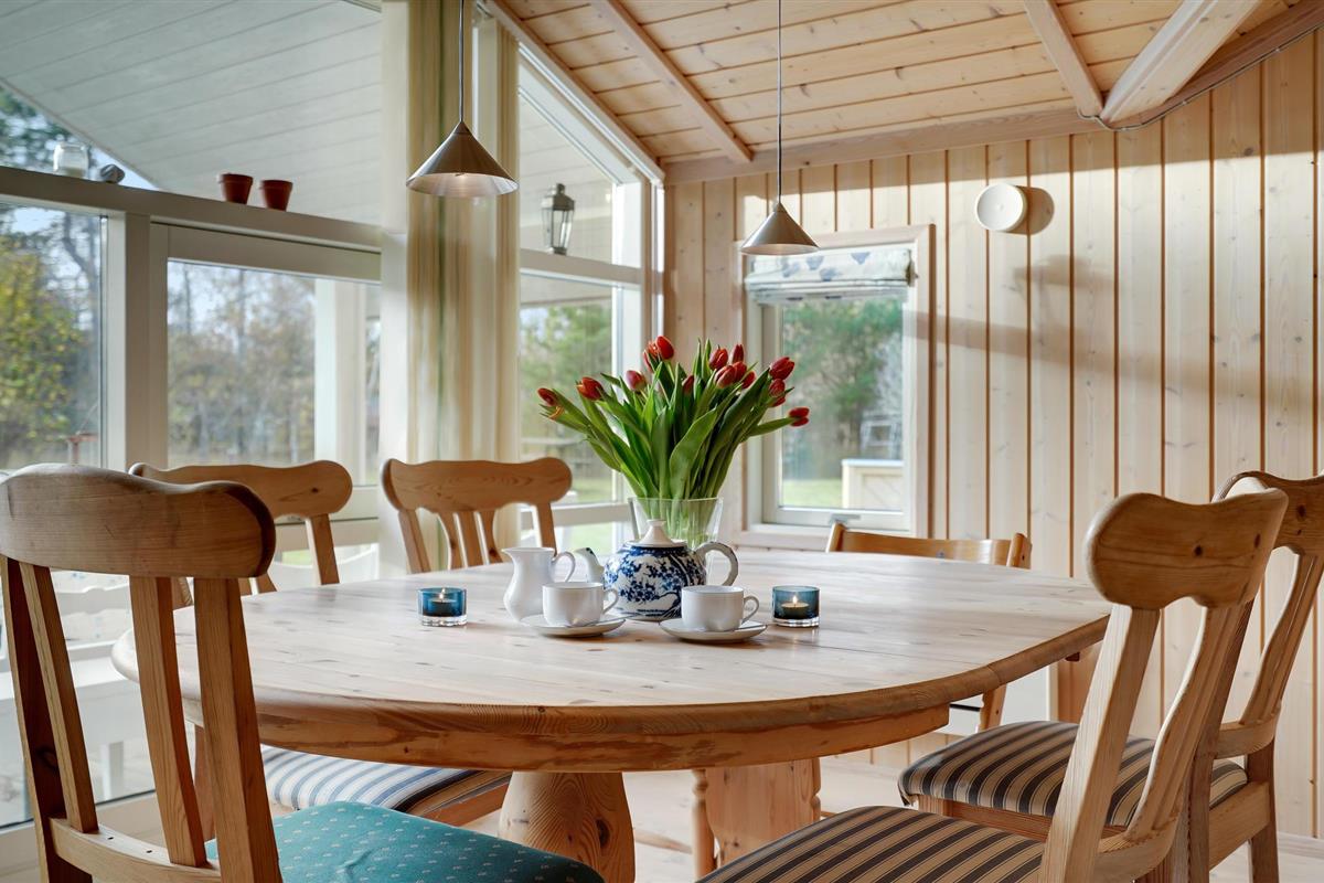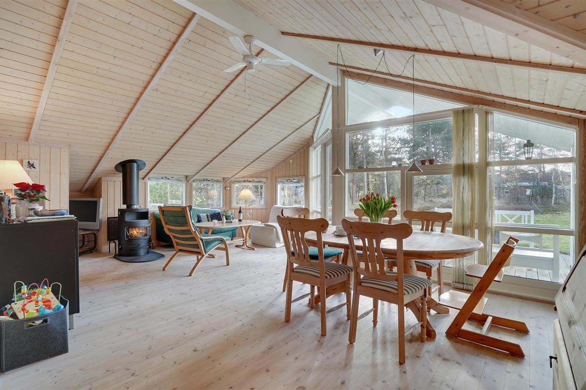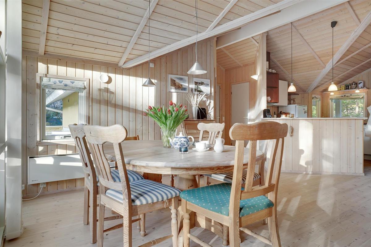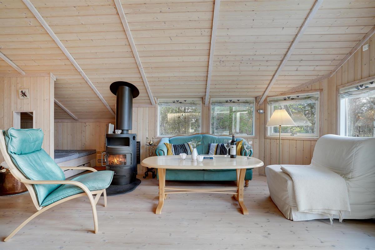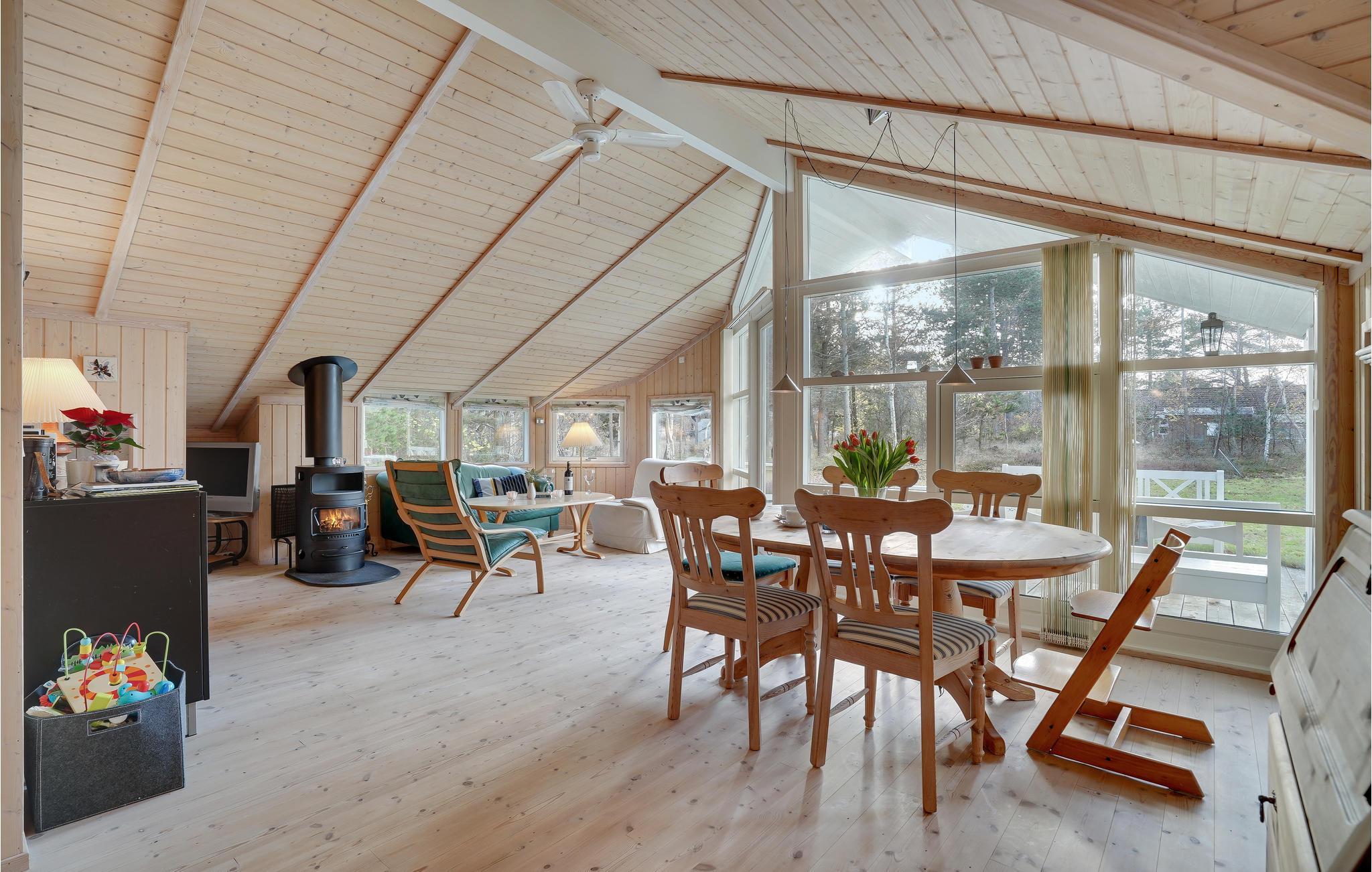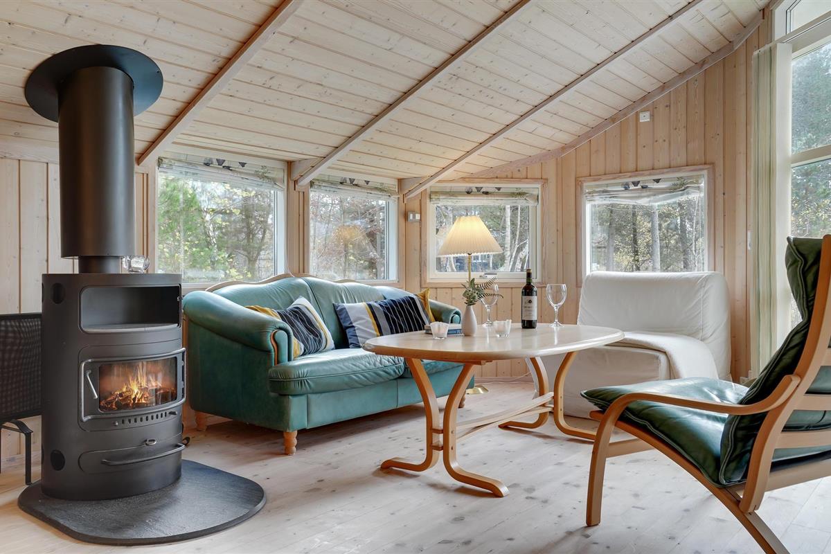 Dit vakantiehuis wacht op u met een lichte sfeer met grote ramen, veel hout en gezelligheid. Verzamel de familie in de woonkamer voor heerlijke avonden met bordspellen en een vuurtje in de open haard. Dankzij de open keuken kunt u tijdens het koken midden in de actie zitten. De drie slaapkamers bieden mooie toevluchtsoorden als u wilt ontspannen na een lange vakantiedag. Voor gezinnen met kleine kinderen is er een babybedje en een kinderstoel.