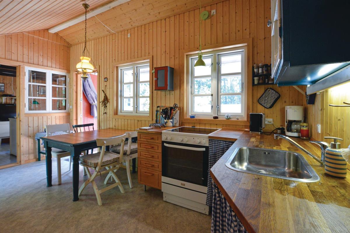 Dit klassieke vakantiehuis in Højby Lyng verwelkomt je met rustieke charme en een warme sfeer. De eenvoudige inrichting, houten lambrisering op de muren en plafonds, een rustieke kachel en eenvoudige details nodigen uit tot ontspannende uren. Vooral het overdekte en open terras zal snel een favoriete plek worden voor lange zomeravonden met barbecues en de frisse zeebries. Hier zul je je thuis voelen terwijl je het leven van alledag achter je laat.