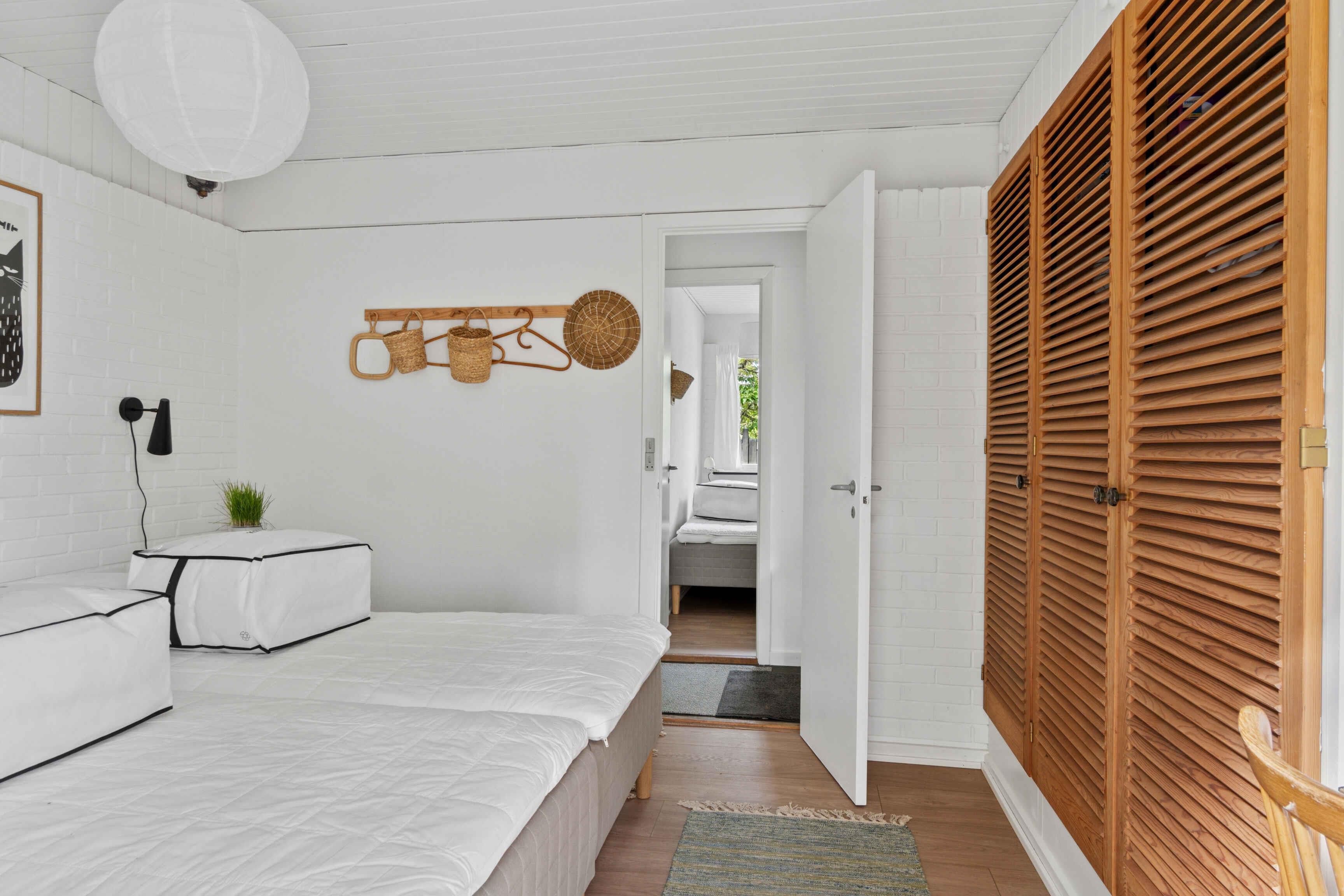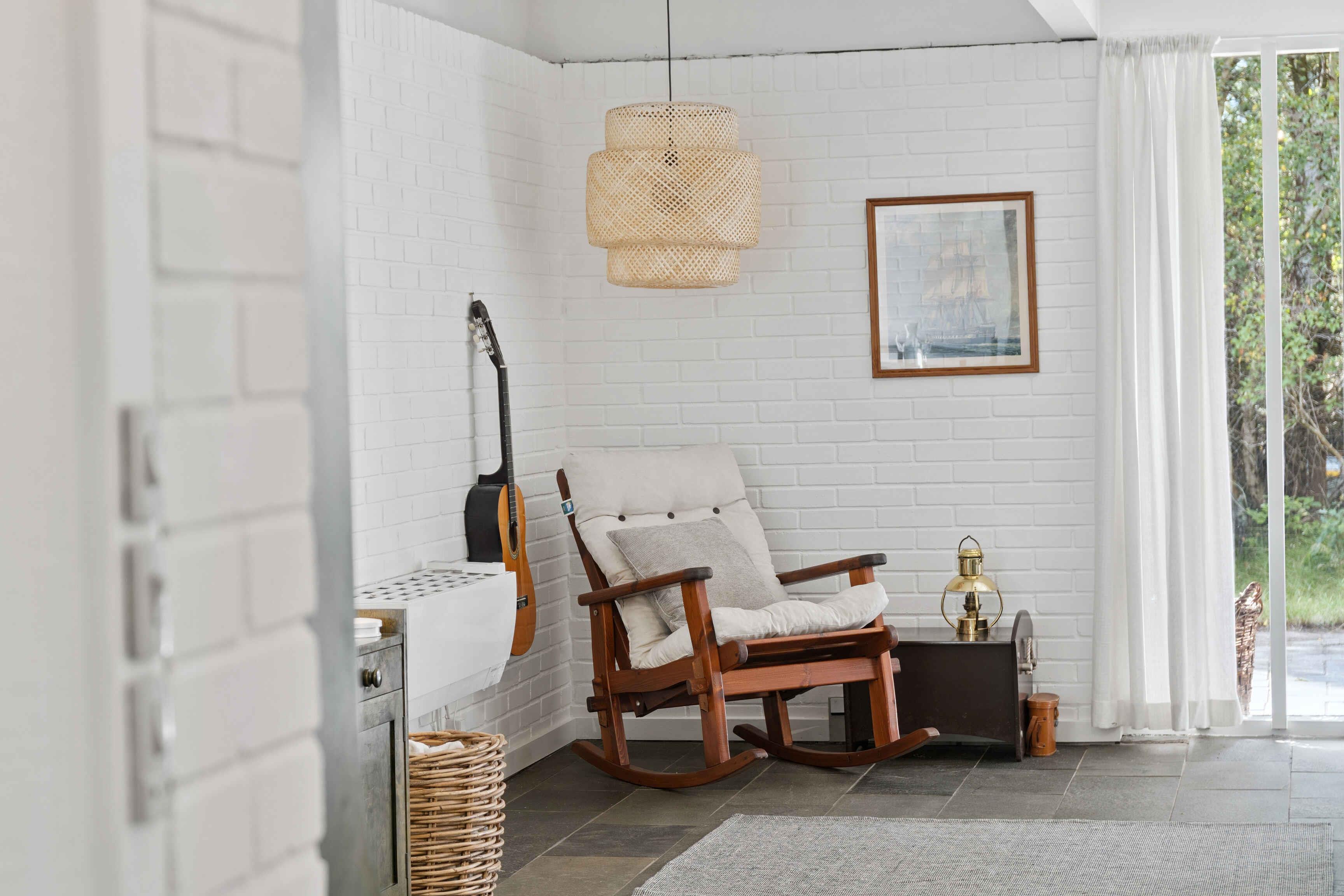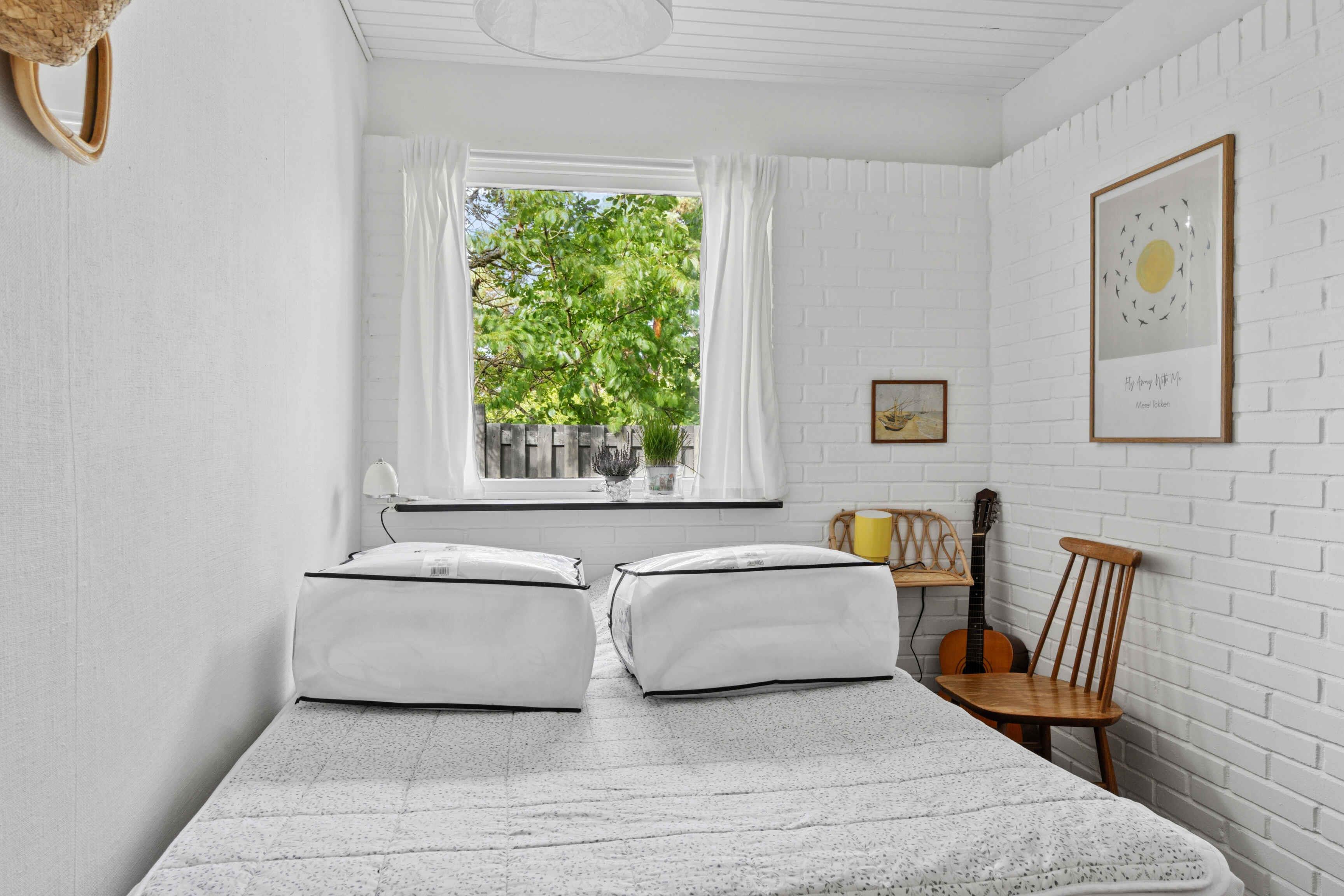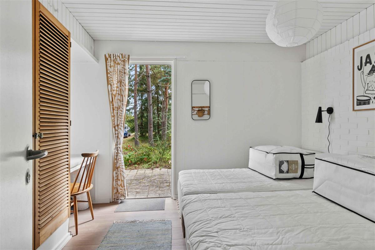 Dit vakantiehuis is geschikt voor gezellige vakanties het hele jaar door. Het huis is geïsoleerd en verwarmd met een warmtepomp, houtkachel en elektrische radiatoren. Buiten Het huis ligt op een prachtig natuurperceel met heide en bomen, waar de zon de hele dag schijnt (wanneer ze doorkomt). Dagelijks komen er reeën, eekhoorns, vogels en meer langs. Het huis heeft meerdere terrassen: 2 overdekte (één op het zuiden en één op het westen) en 2 kleine open terrassen (oost-/zuidgericht en zuid-/westgericht). Er zijn 2 grote tafels die los of samen kunnen worden gebruikt, met 8 stoelen met kussens. Het meubilair is lichtgewicht en gemakkelijk te verplaatsen. Daarnaast zijn er 3 ligstoelen, een hangstoel, een schommel en een Weber houtskoolbarbecue. Ook zijn er buitenspellen voor kinderen en volwassenen. Op slechts 400 m afstand ligt een brede zandstrand in de Sejerø-bugten. Het strand is beschut, ondiep en ideaal voor kinderen. Een stukje verderop aan het strand vind je het gezellige strandcafé “Haveje”, waar je een biertje, ijsje, burger of iets anders van de kaart kunt genieten. In de buurt liggen Sjællands Odde (met verse vis), Rørvig (met visrestaurants en minigolf), de marktstad Nykøbing Sjælland met winkels en restaurants, en vlakbij de plaatsen Vig en Højby met veel supermarkten. In herfst, lente en winter zijn er mooie wandelingen en uitstapjes te maken in het heuvelachtige landschap en de charmante dorpjes. Binnen Het huis is 90 m², recent gerenoveerd met witte houten plafonds en muren. Het biedt ruimte voor gezamenlijke activiteiten in de grote woonkamer, of gezelligheid rond een bordspel, een kop warme chocolademelk of een film bij de houtkachel. Slaapplaatsen: Een volledig vernieuwde slaapkamer met 2 bedden, nieuw meubilair en toegang tot het terras. Een tweede gerenoveerde kamer met een tweepersoonsbed (140 cm breed). Daarnaast een kleine annex met stapelbed (niet geïsoleerd) en een babybedje. De badkamer is vernieuwd met nieuwe vloer, toilet, wastafel met kast en een ruime douchecabine. Het huis heeft verder een grote leefruimte met keuken, eetgedeelte en woonkamer. De keuken is volledig uitgerust met koelkast/vriezer (2 vriesvakken), nieuw fornuis, magnetron, koffiemachine, broodrooster, keukenapparatuur en alles wat nodig is. Vanuit de keuken is er toegang tot de achtertuin en het annex via een staldeur. De eetruimte heeft een grote tafel, bank, 5 stoelen en een kinderstoel, met uitzicht op de tuin door een groot raam van vloer tot plafond. De woonkamer heeft grote ramen en schuifdeuren naar de westelijke tuin, met 2 comfortabele sofa’s, smart-tv, leeshoek met schommelstoel en gitaar. Binnen zijn er veel gezelschapsspellen, boeken, internet en een luidspreker voor smartphones.