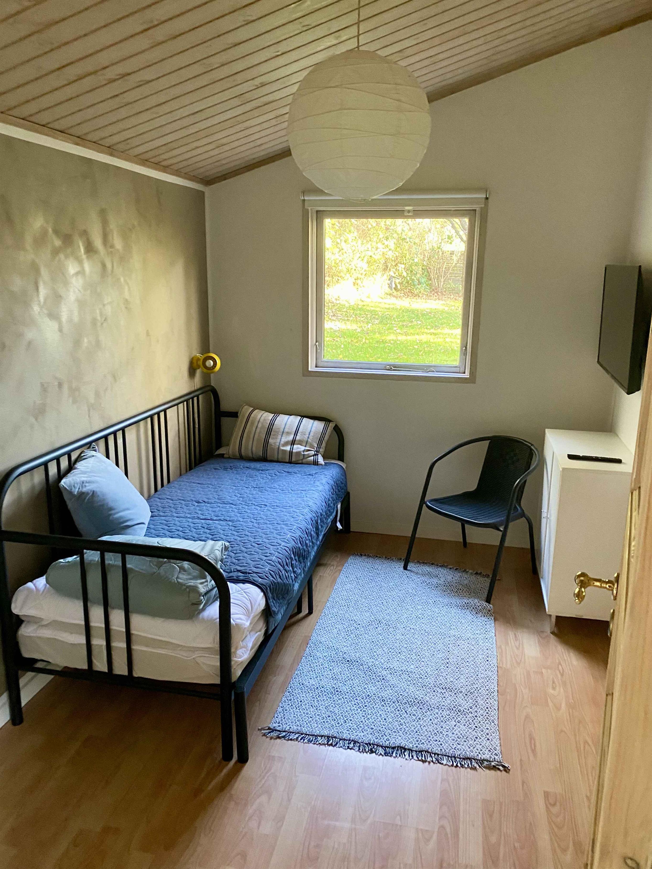 Breng een heerlijke en ontspannende vakantie door in een licht en vriendelijk zomerhuis. Gezelligheid staat hier centraal. Sejerø Bay met mooie zandstranden ligt op slechts een korte fietstocht afstand. Fietsen van verschillende maten zijn beschikbaar en kunnen vrij worden gebruikt. De tuin is 1200 vierkante meter, dus er is volop gelegenheid om te spelen en te ontspannen in een van de gezellige hoekjes. Let op dat het terrein licht glooiend is. Je moet een kleine drie treden stenen trap af om bij het huis te komen. Het zomerhuis heeft 3 Smart TV's, dus het is gemakkelijk om te streamen wat je maar wilt zien. Er zijn geen tv-kanalen. In het huis zijn ook wat kinderboeken en verschillende spellen te vinden. Je kunt er ook voor kiezen om te ontspannen in de hoekspa van de badkamer. Het huis ligt aan een kleine grindweg en het is gemakkelijk om naar Lumsås te komen, waar een grote Rema1000 is. Of maak een uitstapje naar het gezellige Nykøbing Sjælland, met een autovrije winkelstraat en diverse leuke cafés en restaurants. Probeer ook zeker Rørvig Streetfood in Rørvig. Als de kinderen vermaakt moeten worden, ligt Sommerland Sjælland slechts 8 km hier vandaan. Het zomerhuis bestaat uit een kleine entree, een badkamer met een douchecabine en een bubbelbad. Er is ook een wasmachine. Goed uitgeruste keuken met vaatwasser en een mooie woonkamer met een grote hoekbank, een houtkachel en een eettafel. In totaal zijn er 3 slaapkamers, waarvan één met toegang tot het houten terras met tafels, stoelen en een parasol. Er zijn ook ligstoelen en andere stoelen om te ontspannen. Een barbecue en een kleine buitenhaard zijn ook beschikbaar. Een deel van het terras is overdekt. De ene slaapkamer heeft een tweepersoonsbed (2 eenpersoonsbedden). De andere twee slaapkamers hebben slaapbanken met goede dikke matrassen. Alle kamers hebben kasten met hangers. De tuin biedt een schommelset, glijbaan en zandbak. In de tuin vind je ook een mooie bank en gezellige hoekjes met een hangmat en een vuurplaats. Er is ook een grote trampoline. Wij hebben ook gezorgd voor een haardroger, strijkijzer, strijkplank en een droogrek. Honden zijn welkom en er zijn water- en voerbakken voor je viervoetige vriend. Niet te huur voor jongerengroepen.