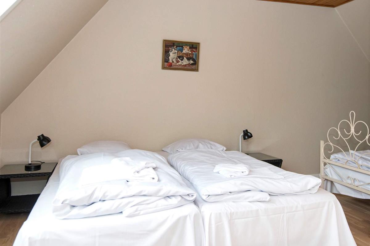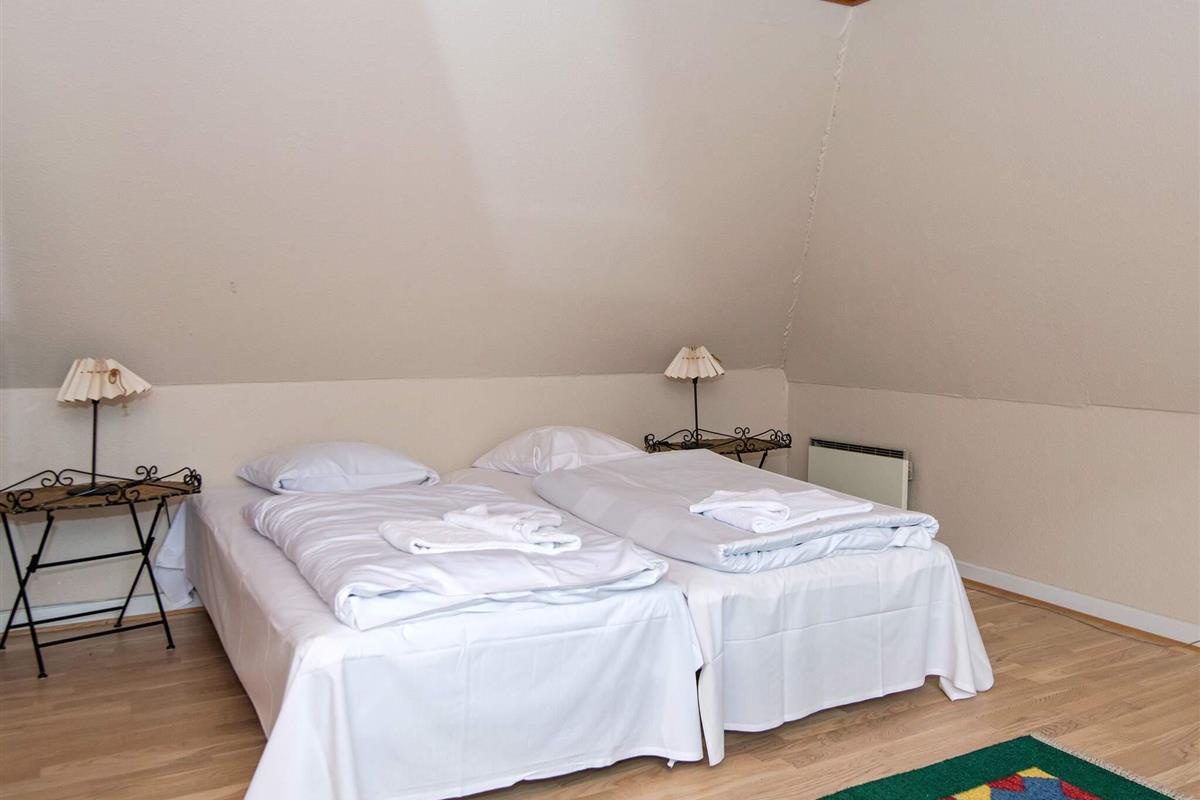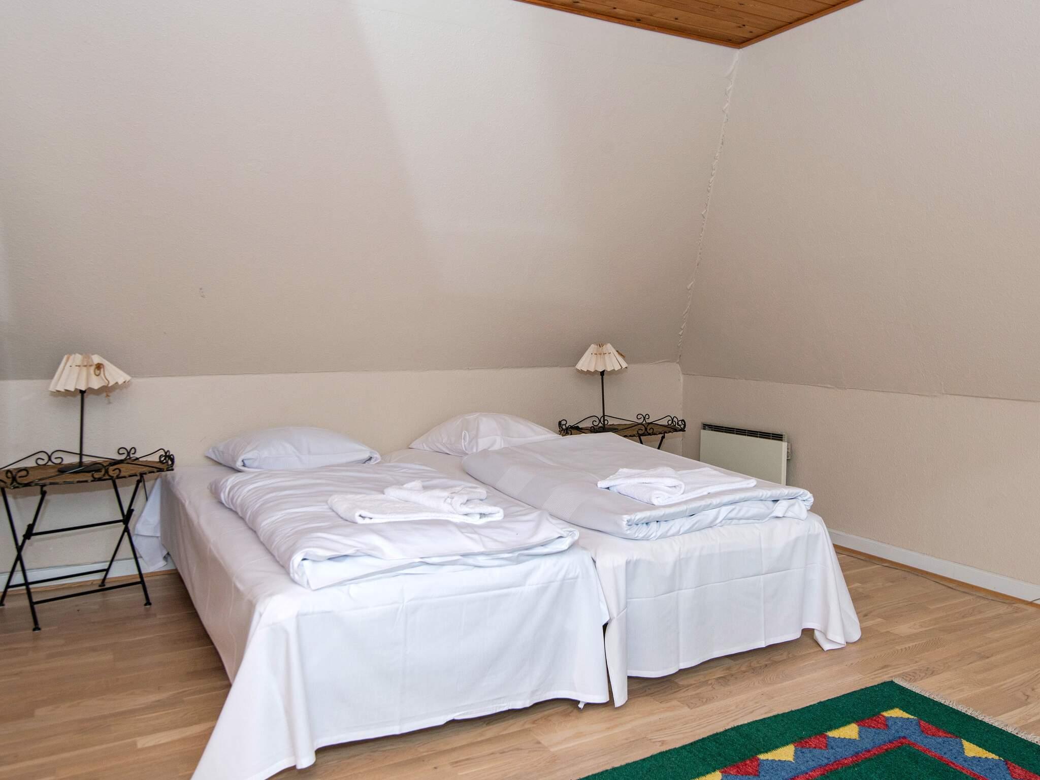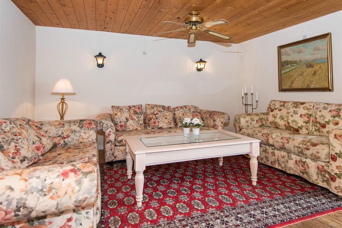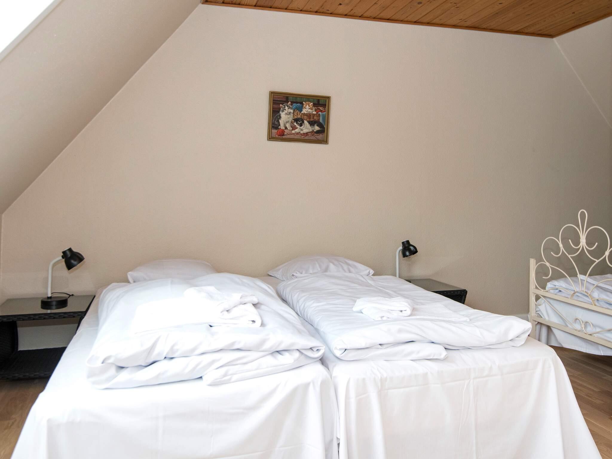 Das geräumige Haus ist mit sechs Schlafzimmern und einer größeren Küche mit Essbereich ausgestattet. Das gemütliche und persönlich eingerichtete Wohnzimmer liegt zur Straßenseite und bietet Ausblick zum nahen See. Küche mit Wasserkessel, Geschirrspüler und Kaffemaschine.