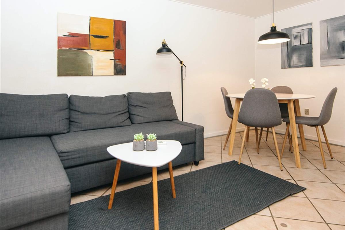 Im Inneren verbindet die Wohnung Charme und Funktionalität mit einer hellen Küche/Wohnzimmer, einem gemütlichen Schlafzimmer mit Doppelbett und einem Badezimmer mit Dusche und Badewanne. Die kleine Terrasse mit Gartenmöbeln und Grill ist ideal für Mahlzeiten im Freien, während die geräumigen Gemeinschaftsbereiche eine einladende Umgebung zum Entspannen oder für geselliges Beisammensein bieten.