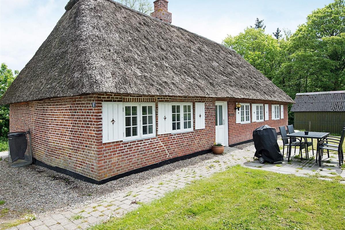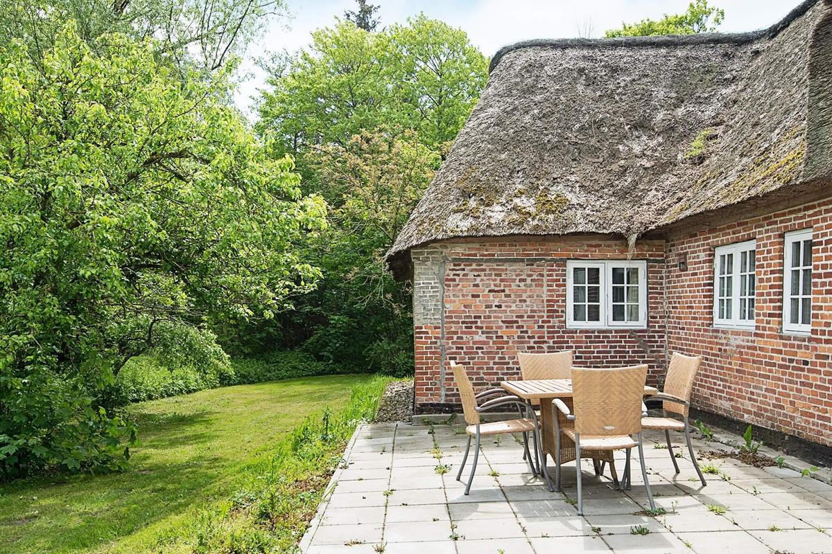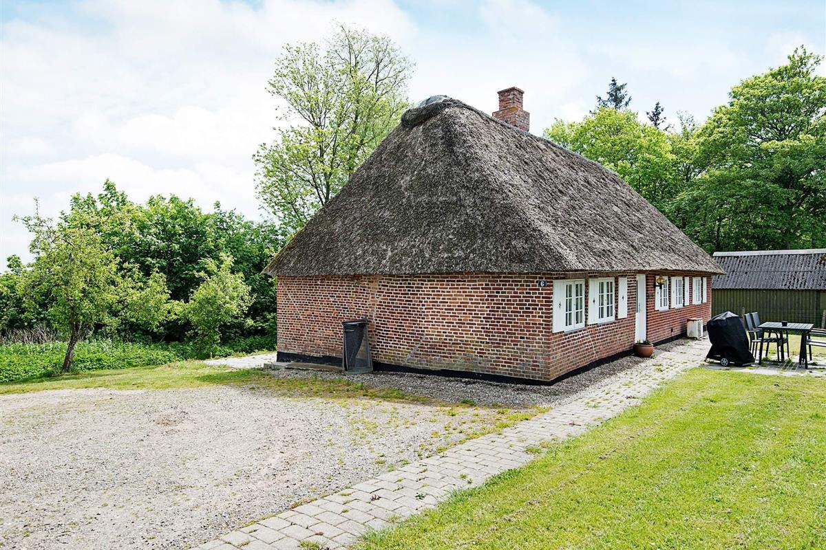Reetgedecktes Ferienhaus mit besonderem Charme und ruhiger Lage am Ende einer Sackgasse, die an eine Naturfläche in der Nähe von Rudbøl grenzt.