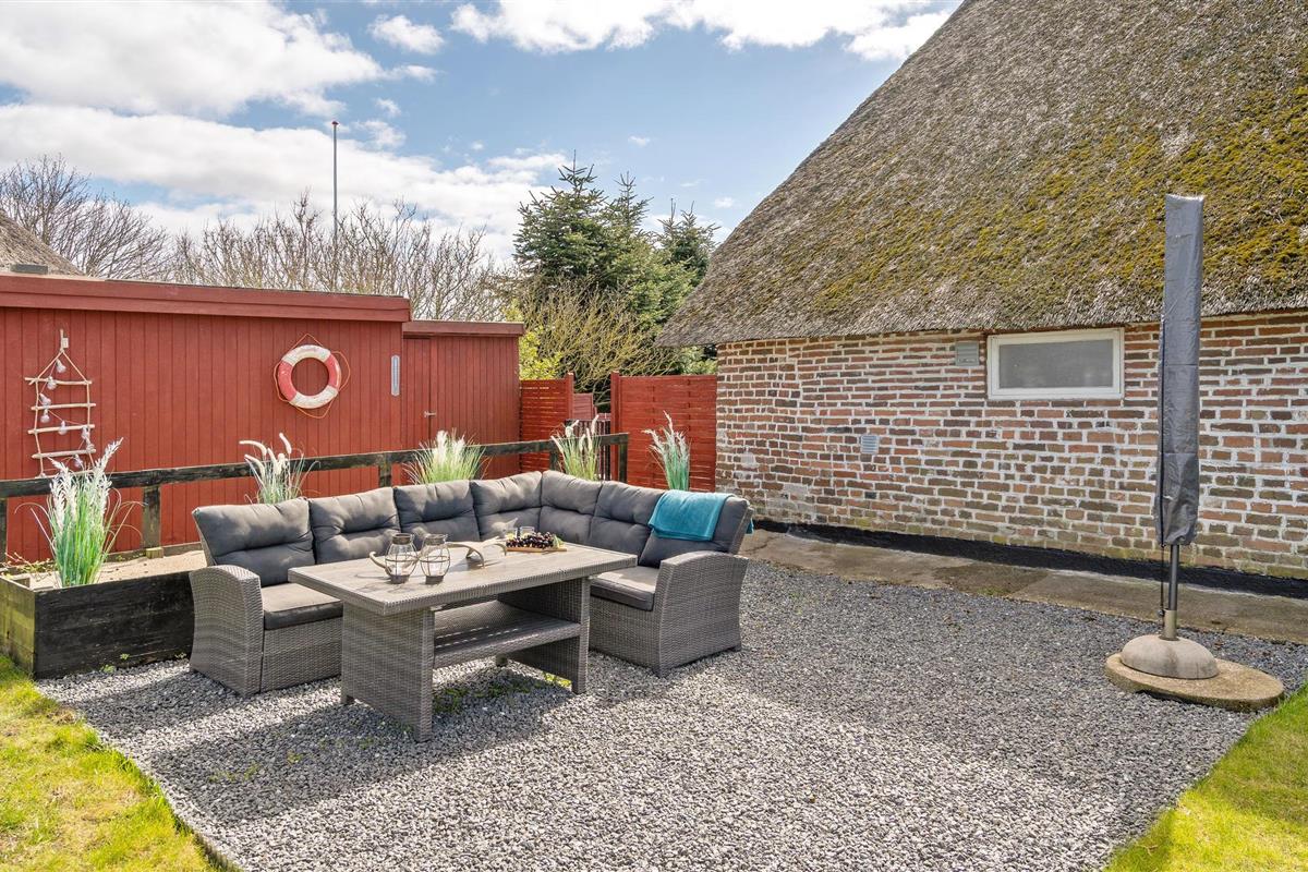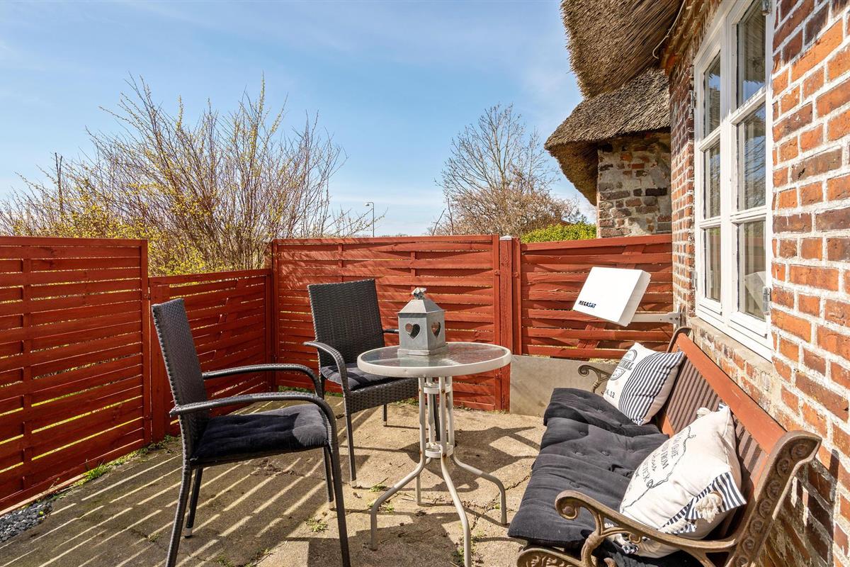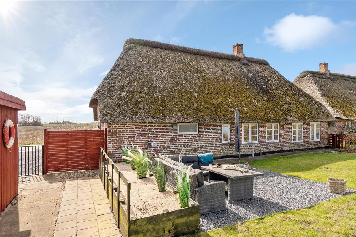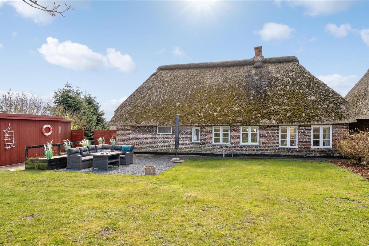 Authentiek vakantiehuis met rieten dak, gezellige inrichting en tuin met barbecue in Højer, Denemarken.