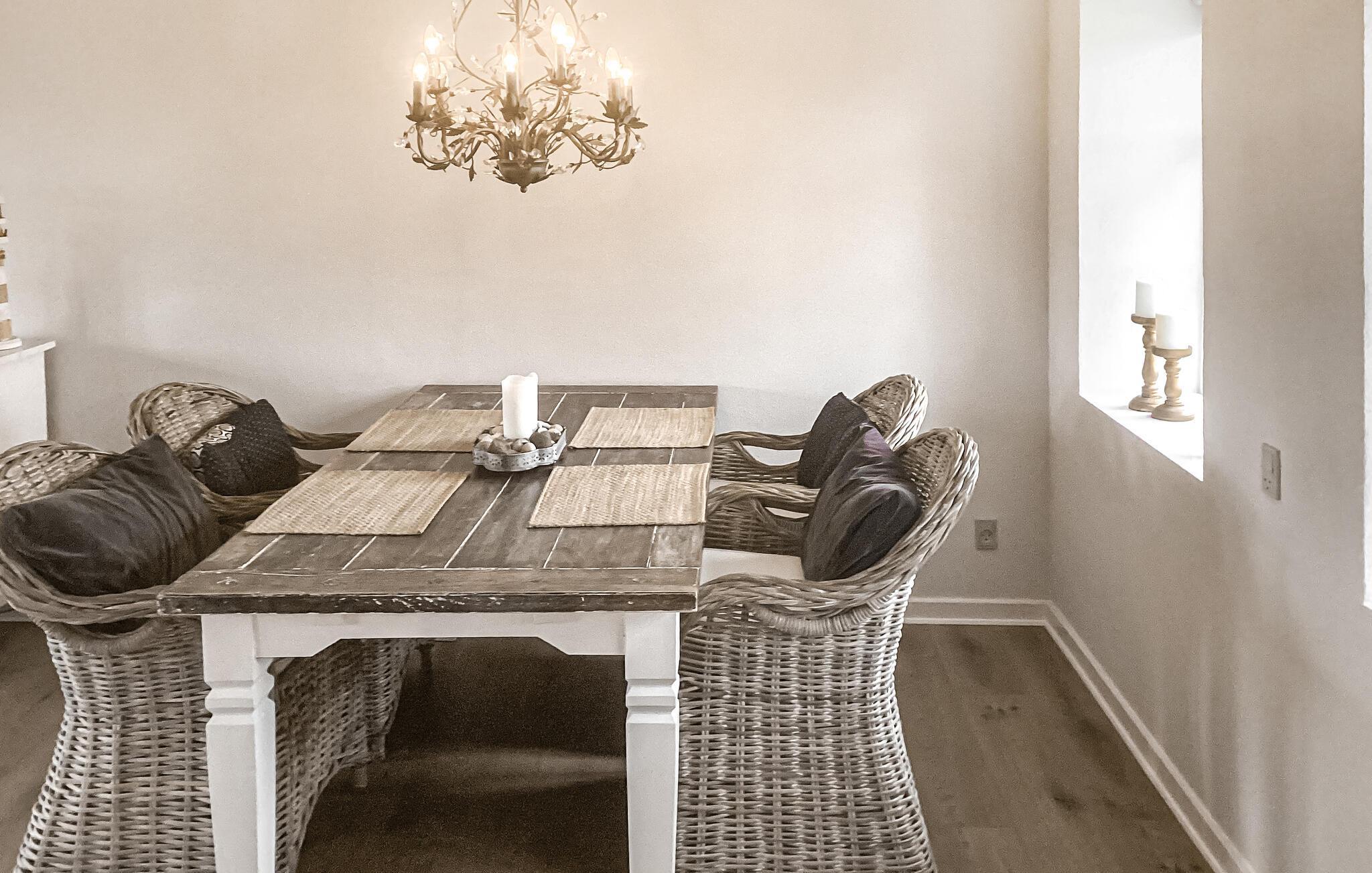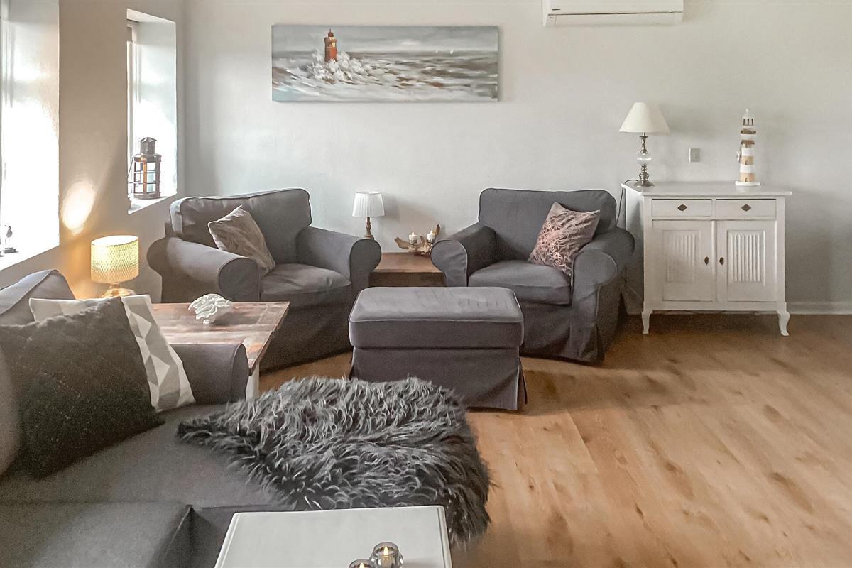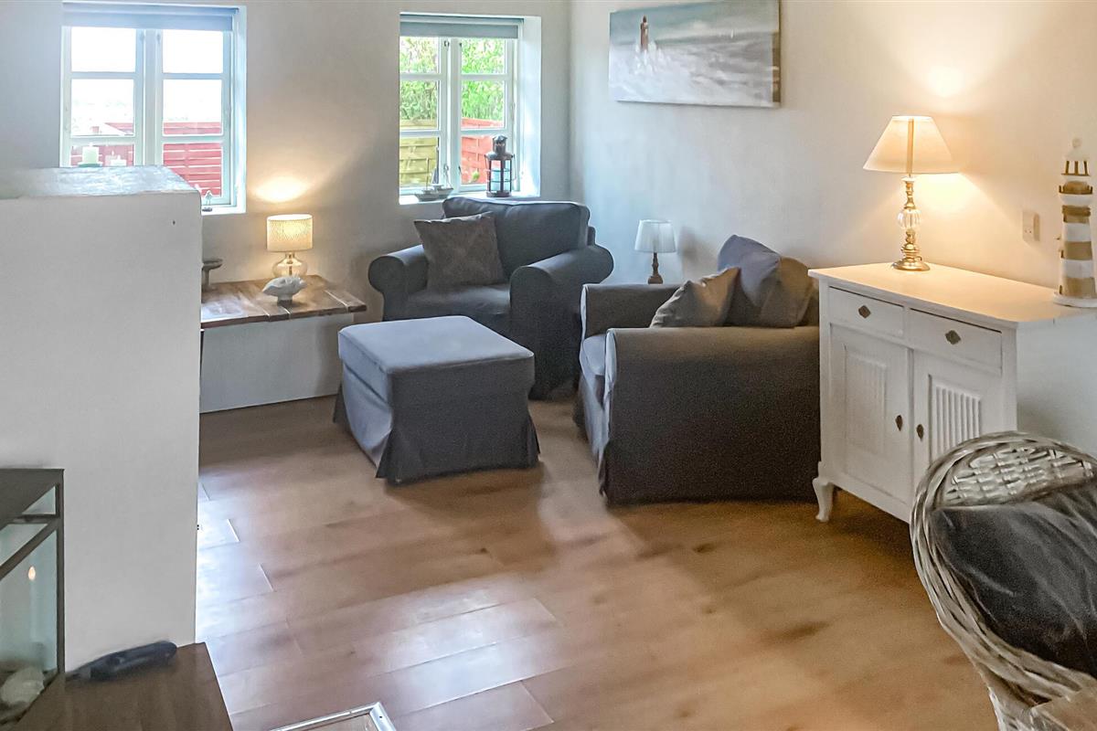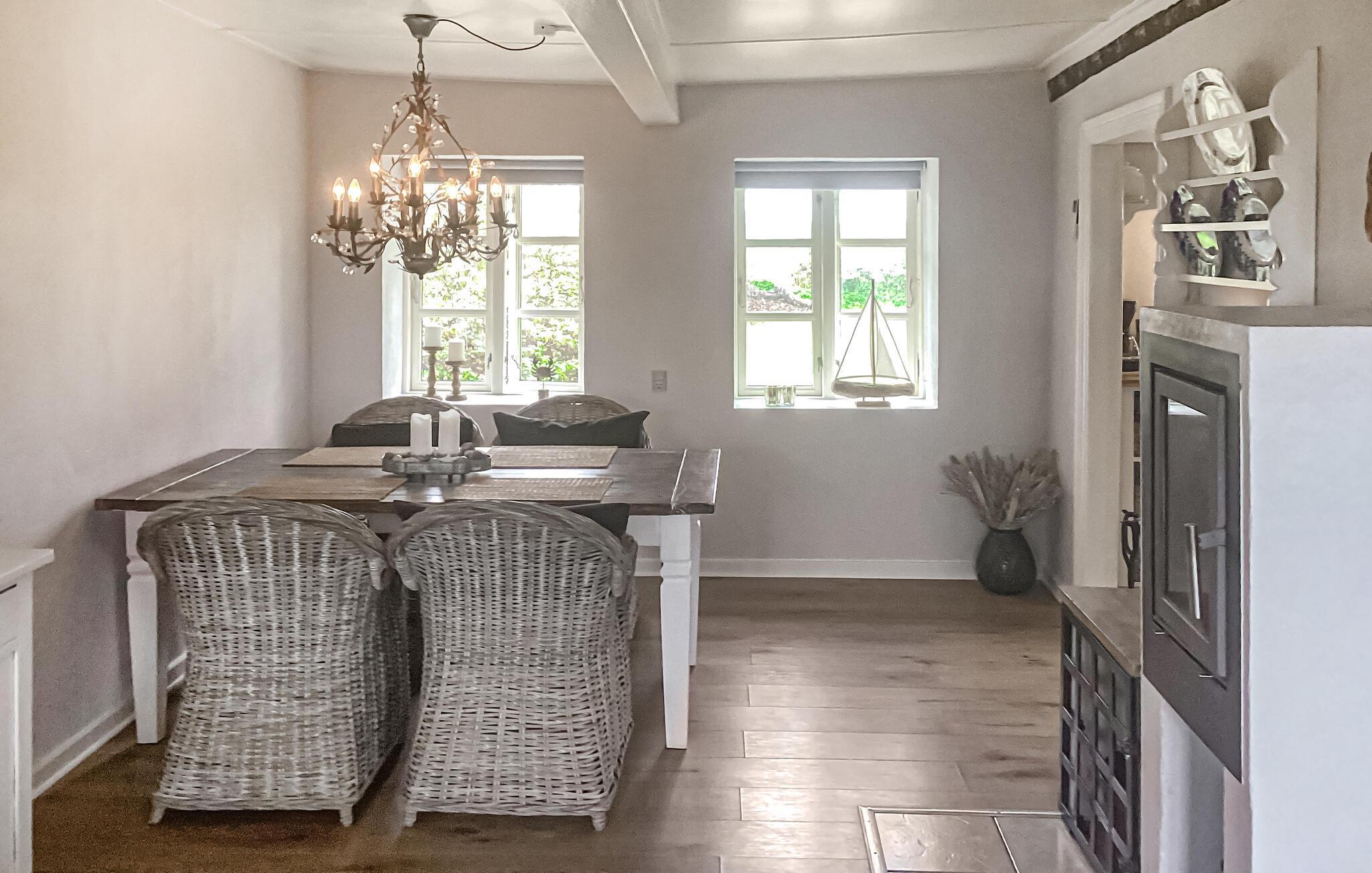 Authentiek vakantiehuis met rieten dak, gezellige inrichting en tuin met barbecue in Højer, Denemarken.