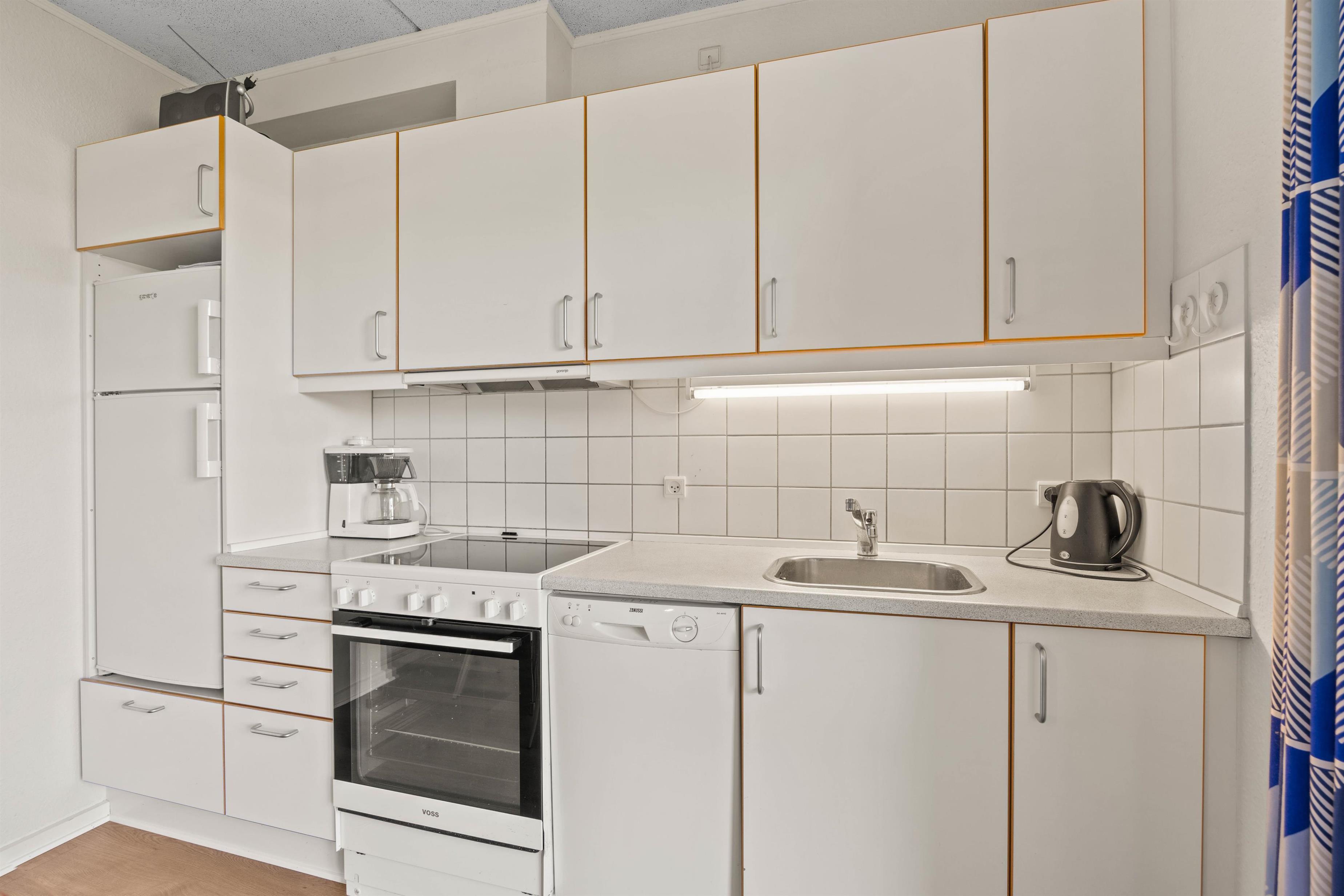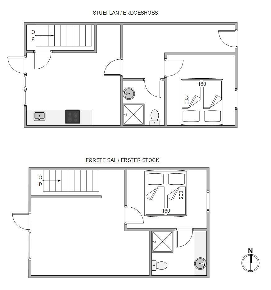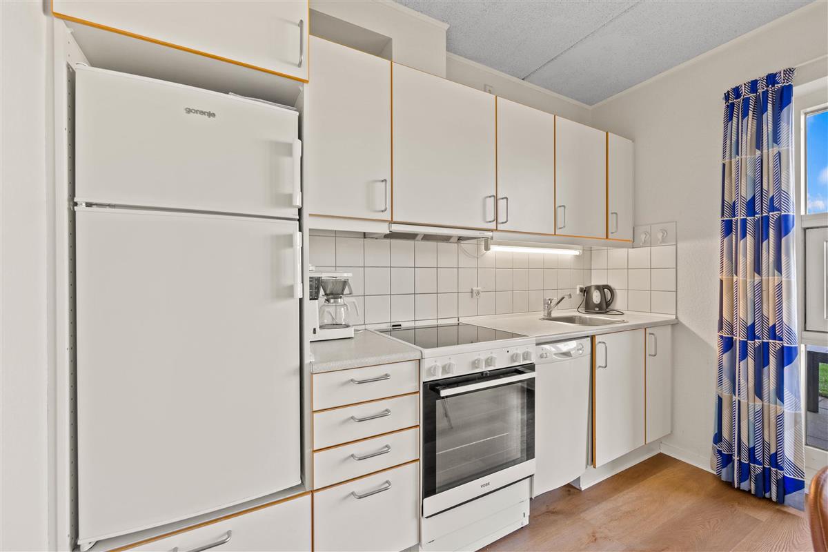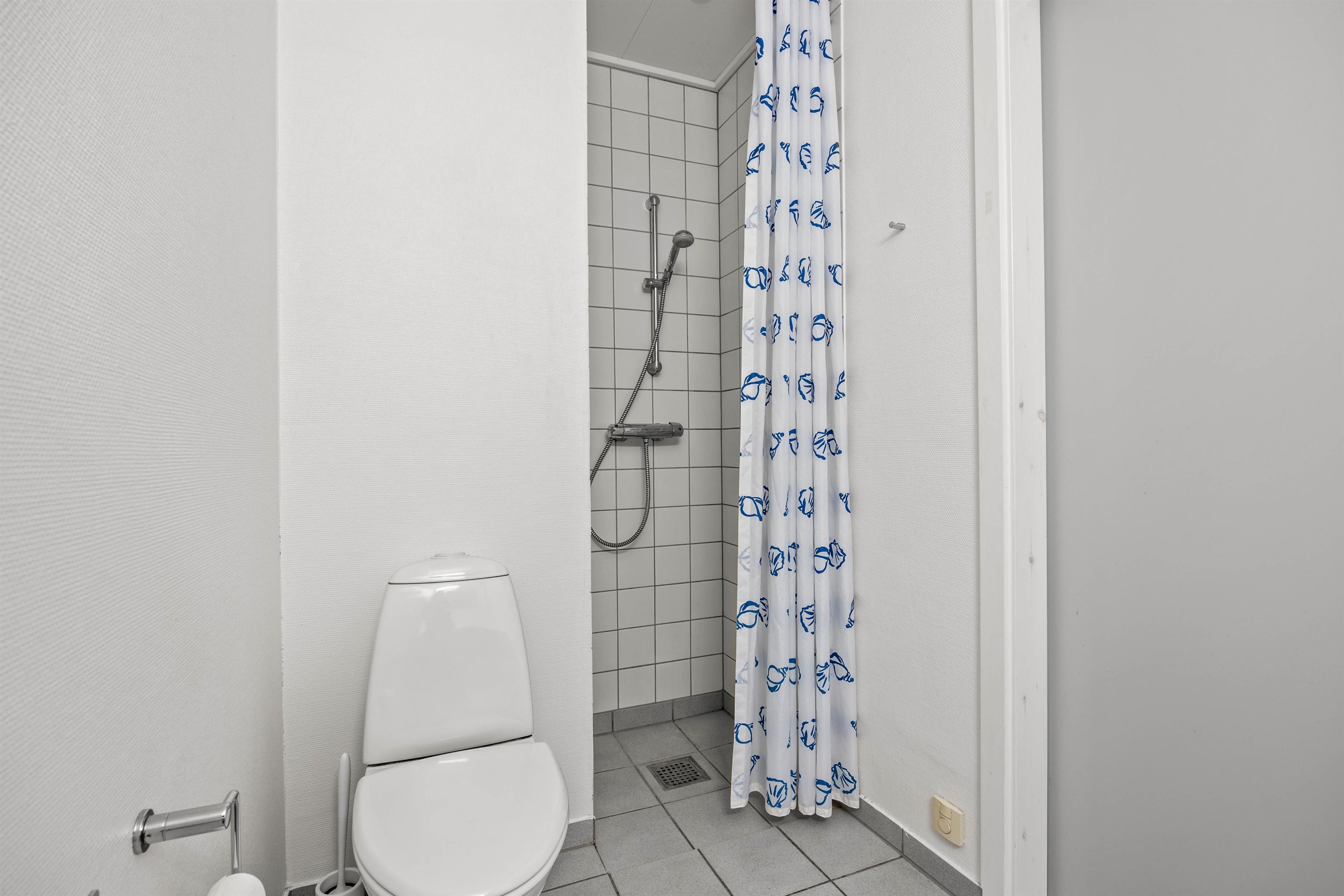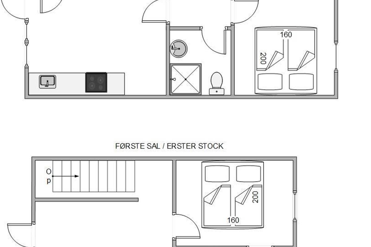 This holiday apartment, perfectly situated on the Danish West Coast, offers a practical layout. On the ground floor, you'll find the kitchen and dining area. Thanks to the dishwasher, you won't need to worry about washing up. There's also a comfortable double bedroom and one of the two shower rooms with underfloor heating. The second double bedroom and bathroom are located on the upper floor.