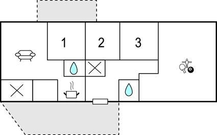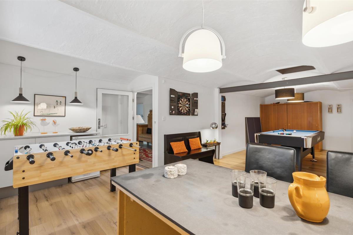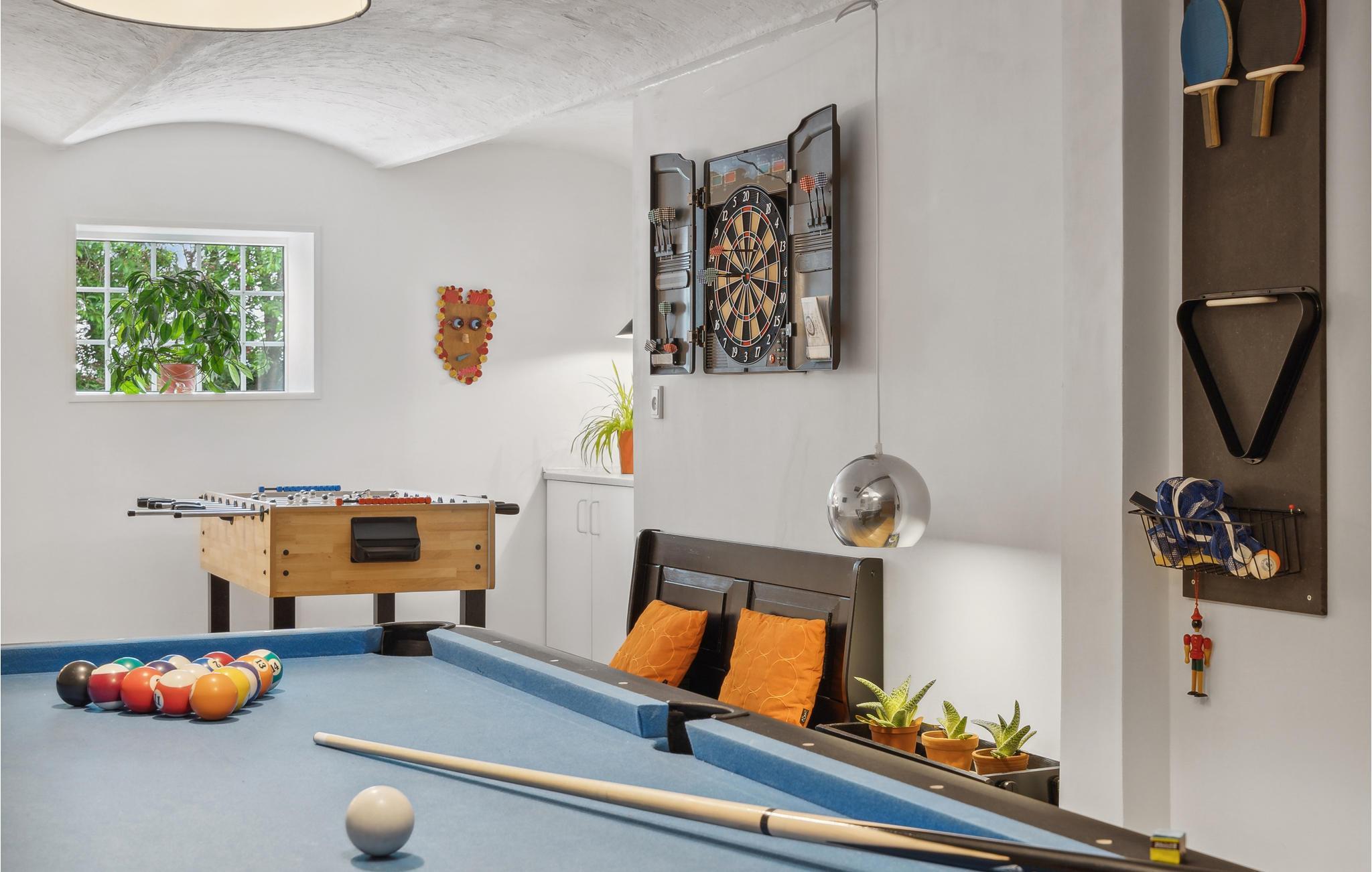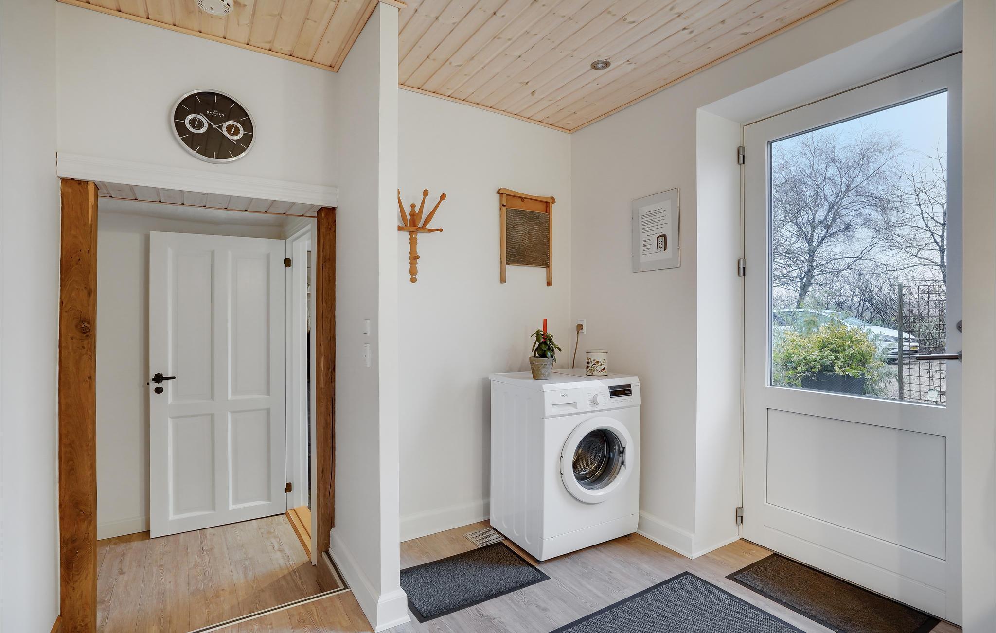 De keuken is goed uitgerust, compleet met bijkeuken met ruimte voor alle drankjes en etenswaren die u op vakantie heeft meegenomen. Vanuit de keuken heeft u toegang tot het eetgedeelte en de woonkamer, waar een warmtepomp staat als extra en energiebesparende warmtebron. In de gang naast de 2 slaapkamers staat nog een warmtepomp, die zorgt voor een aangenaam binnenklimaat in het huis. In de hobbyruimte van 40 m² kunt u biljarten of tafeltennissen en drankjes mixen aan de bar. Er zijn 2 mooie terrassen bij het huis en de tuin is omringd door bomen en het kleurenspel weerspiegelt het verstrijken van de seizoenen. Als u vroeg in het jaar aankomt vindt u prachtige witte sneeuwklokjes in de tuin, daarna verandert het in gele narcissen en later in het jaar is er een zee van paarse bloemen.