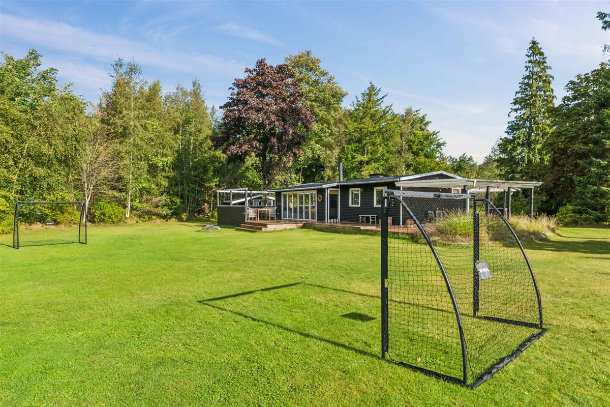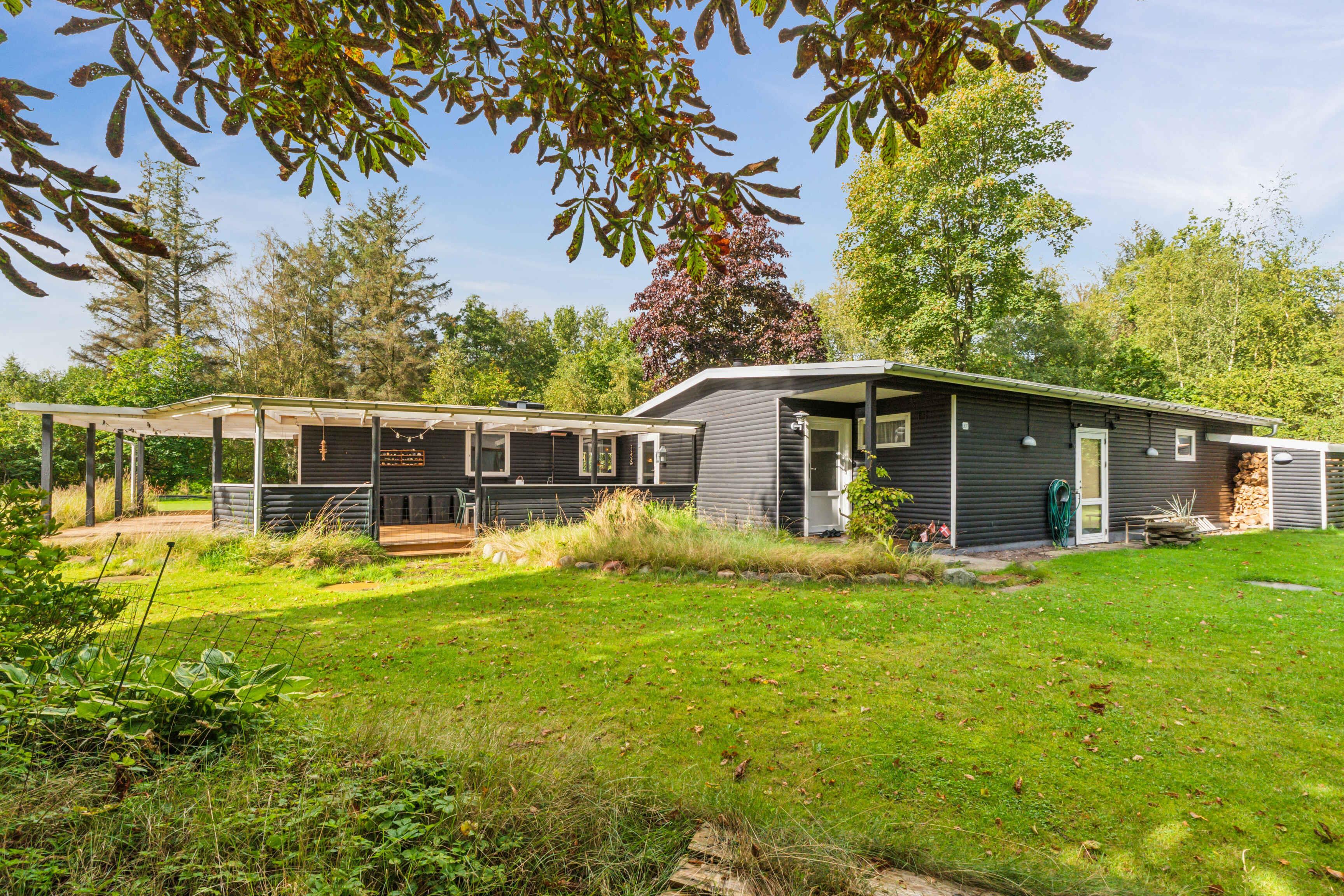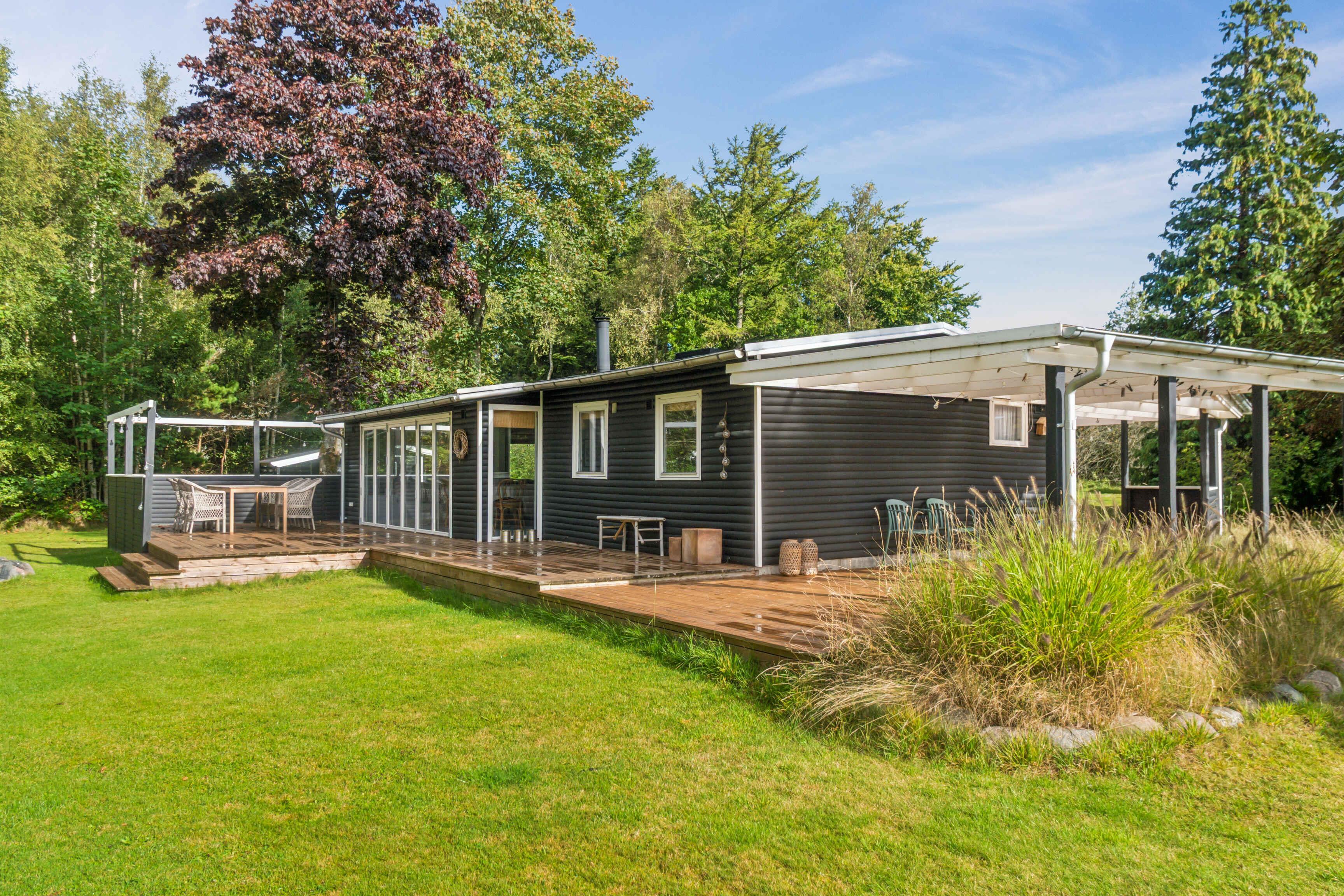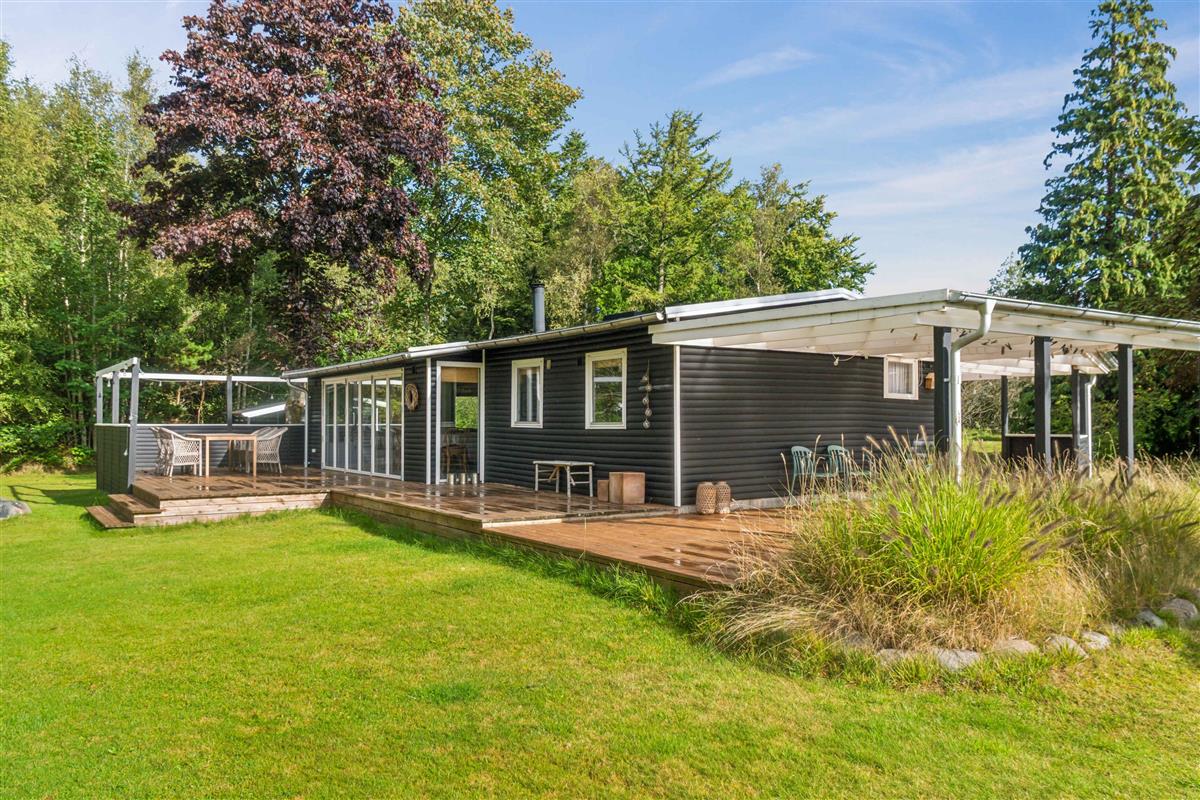 Modern vakantiehuis in Højslev, Denemarken, dicht bij water en natuur, met grote tuin en houten terras voor een ontspannen vakantie.