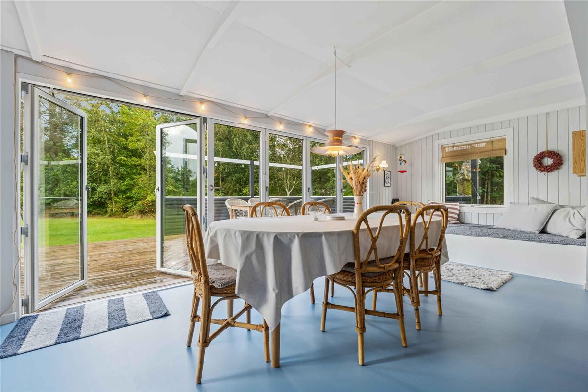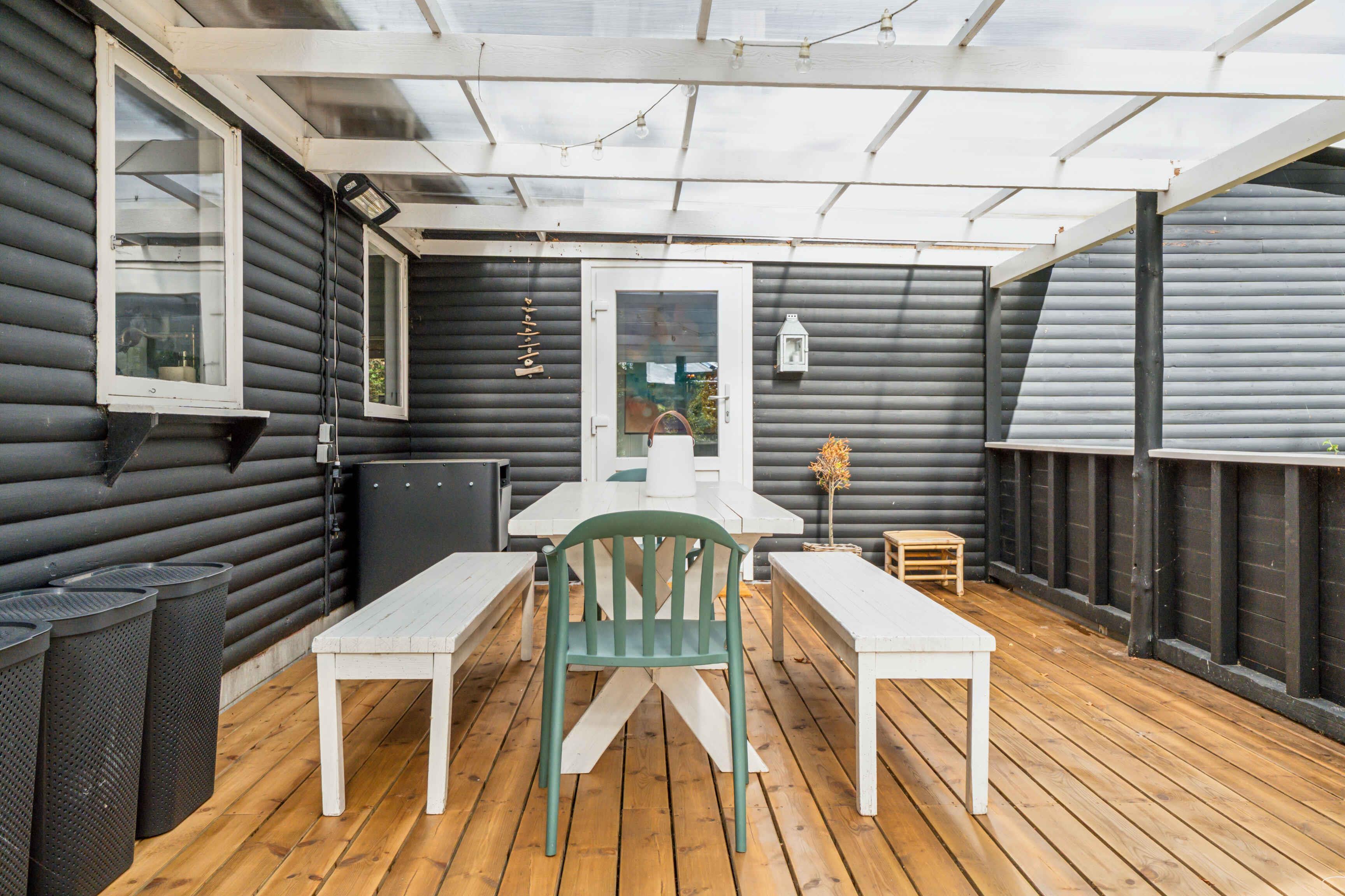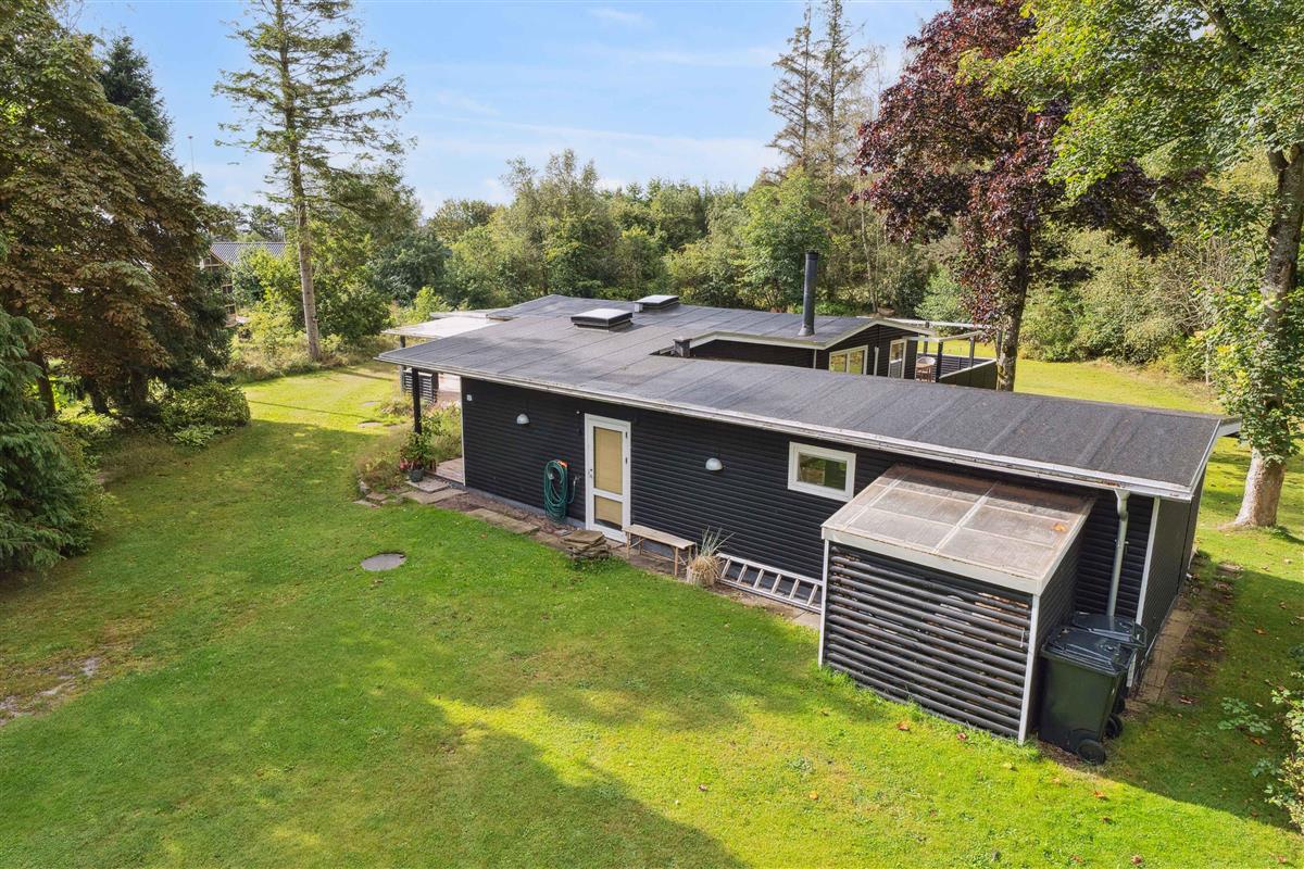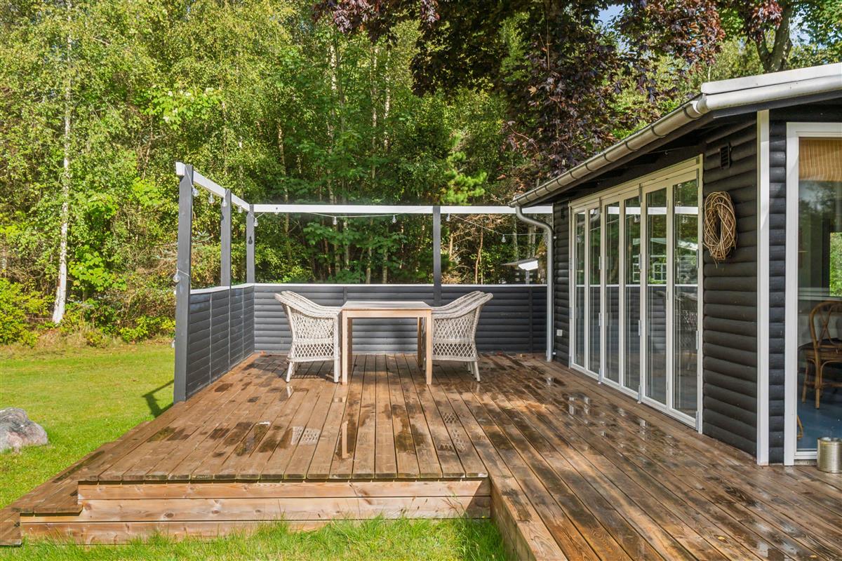 Modern vakantiehuis in Højslev, Denemarken, dicht bij water en natuur, met grote tuin en houten terras voor een ontspannen vakantie.