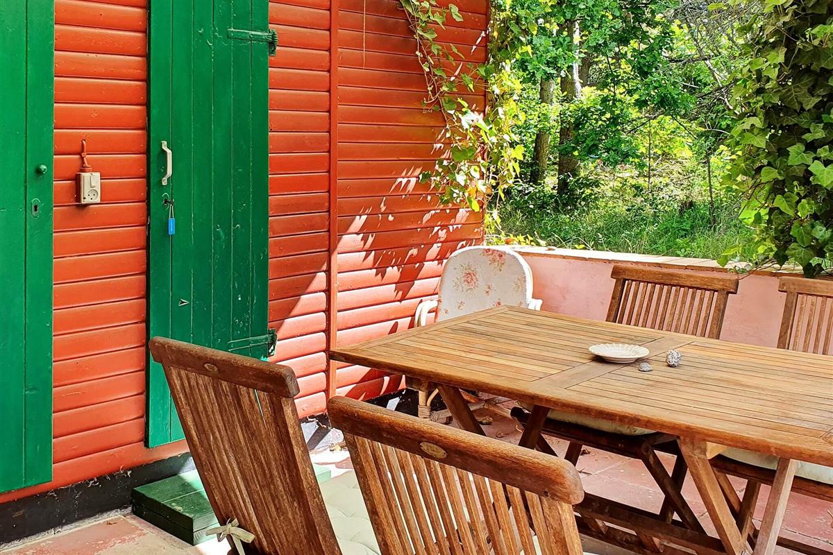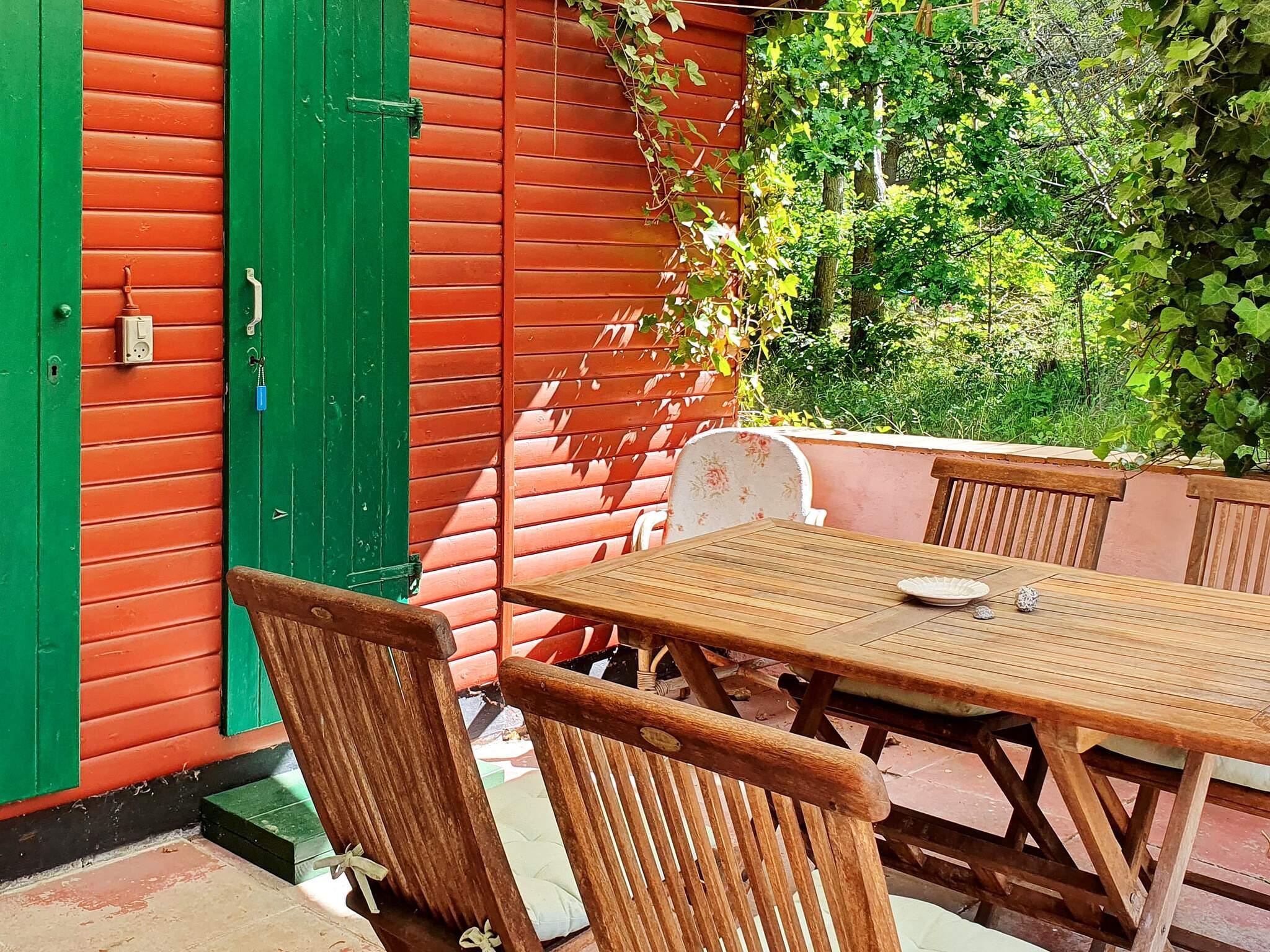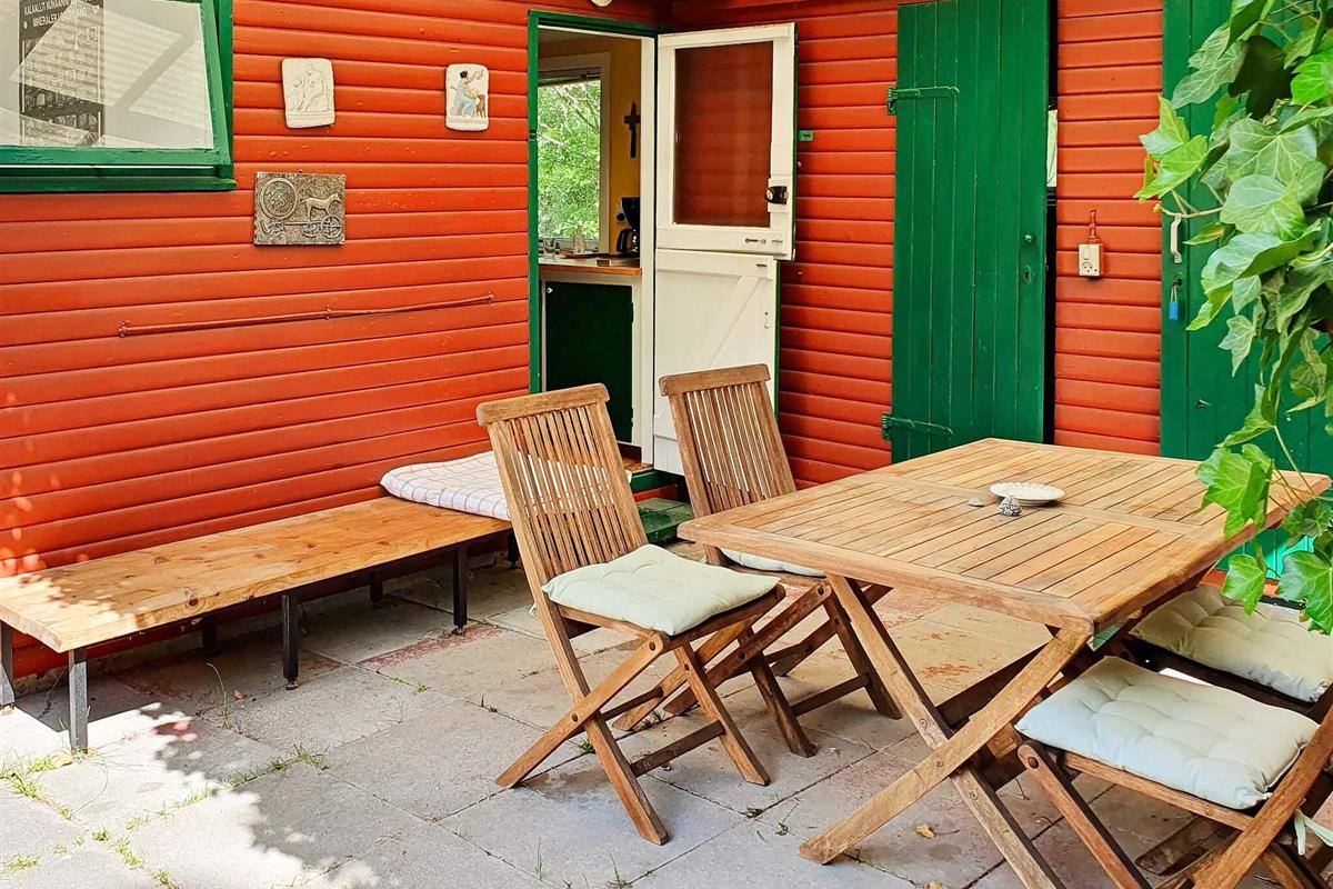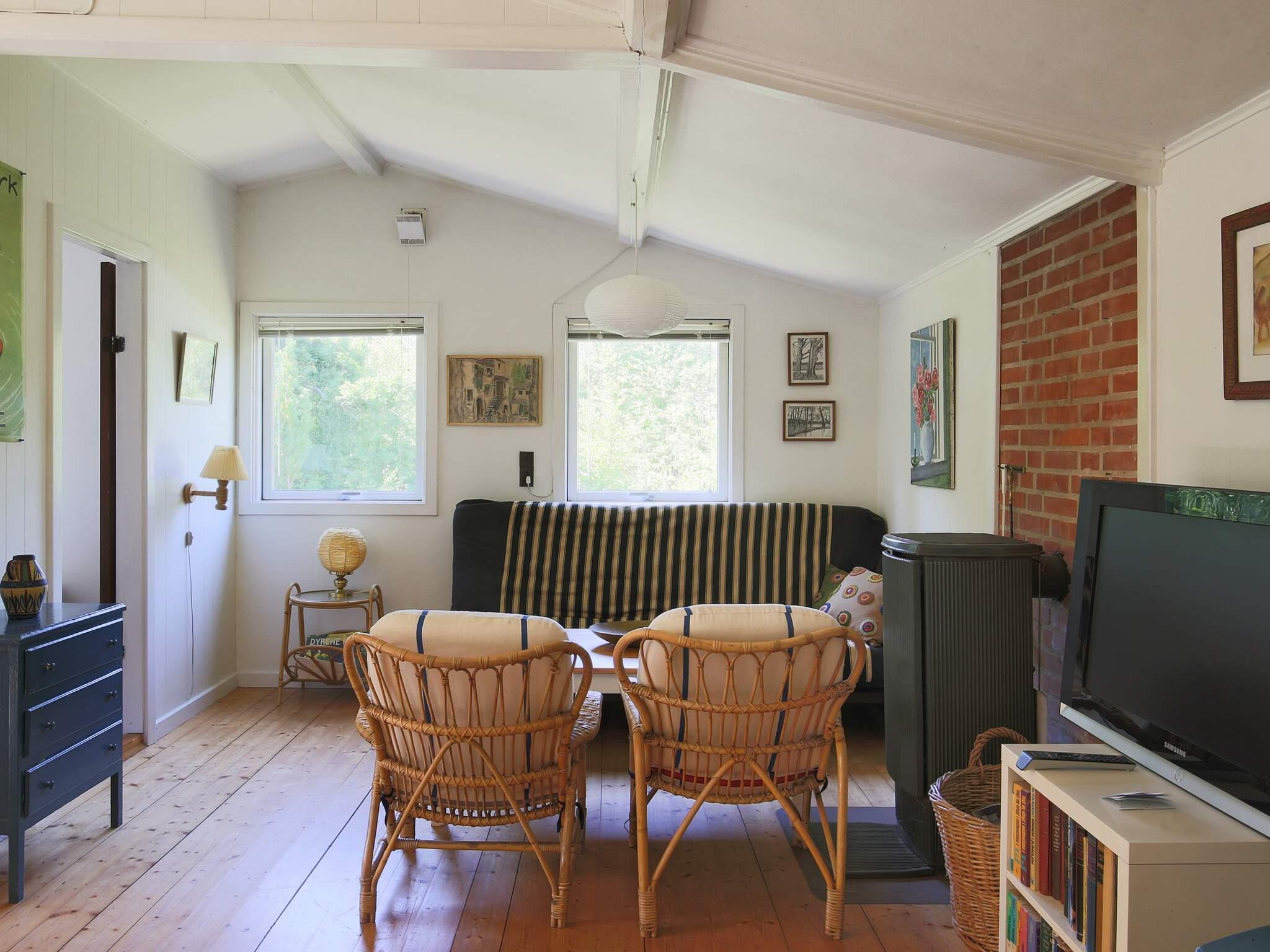 Im Haus gibt es einen Wohn-/Essbereich mit doppelter Schlafcouch, eine separate Küche sowie zwei Schlafzimmer mit insgesamt drei Schlafplätzen. Älteres Badezimmer nebenan in einem separaten Gebäude.