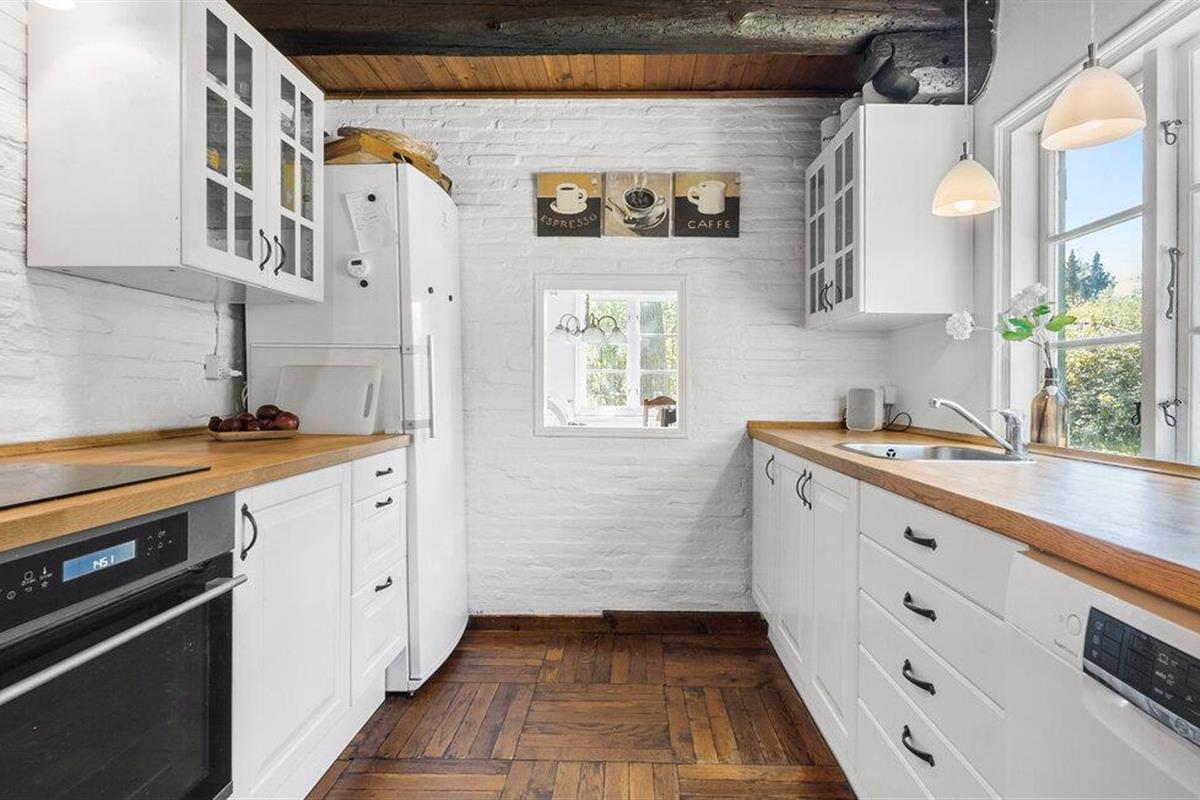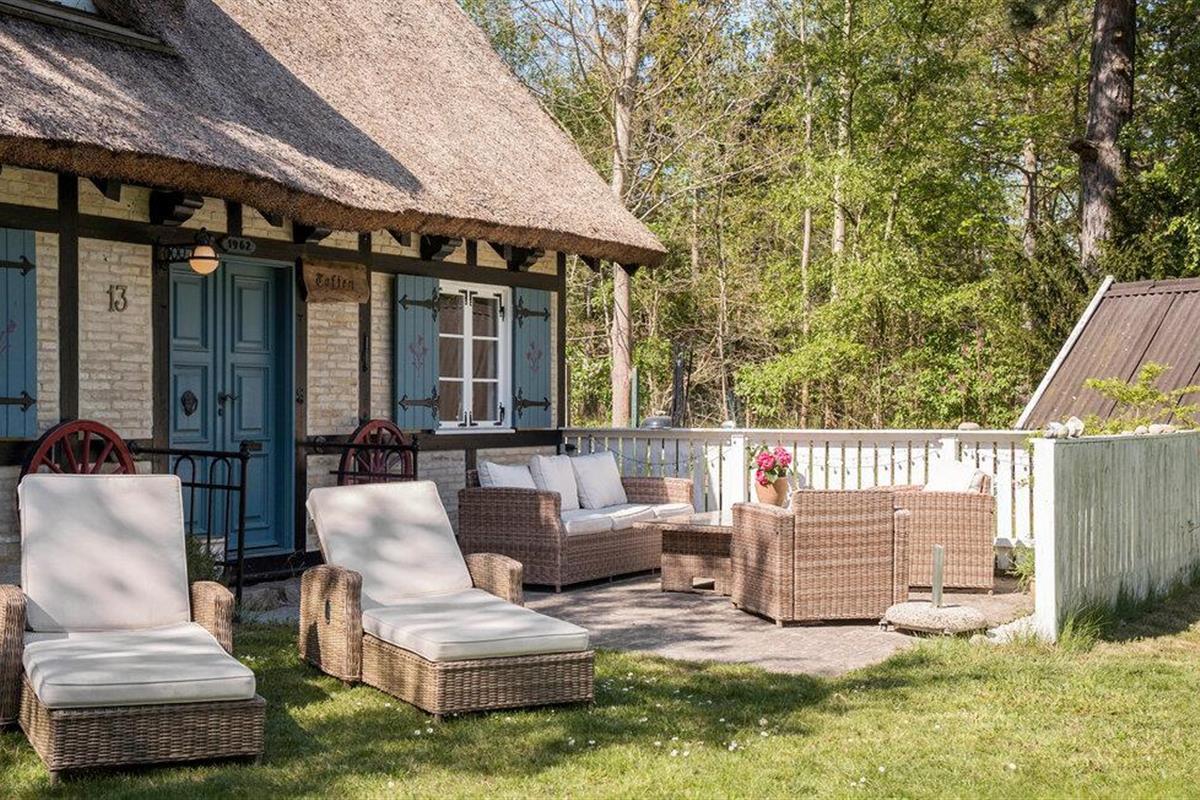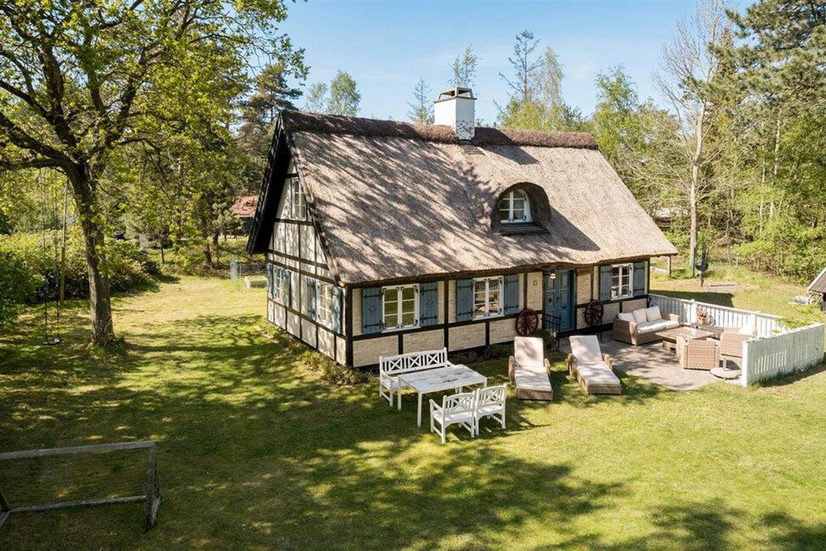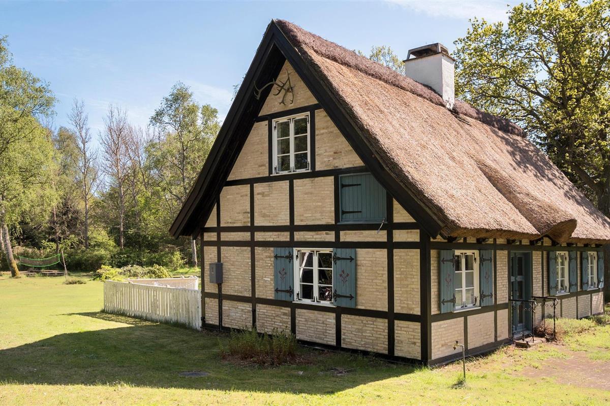 Kom aan en stap binnen in dit gezellige vakwerkhuis. De magie en charme van het huis worden niet alleen gekenmerkt door de constructie, inrichting en decoratie, maar ook door de geschiedenis. Het huis werd oorspronkelijk gebouwd in de jaren 1800, maar werd in 1966 verplaatst naar deze nieuwe locatie in Ellinge Lyng. Het huis werd steen voor steen herbouwd, wat te zien was in een Deens televisieprogramma over het rietgedekte huis. Geniet van de twee verdiepingen met gezellige slaapkamers en een open haard en houtkachel om het hele huis warm te houden op koelere dagen. Ontspan op de bank, kook in de keuken en dineer aan de eettafel met uitzicht op de tuin.