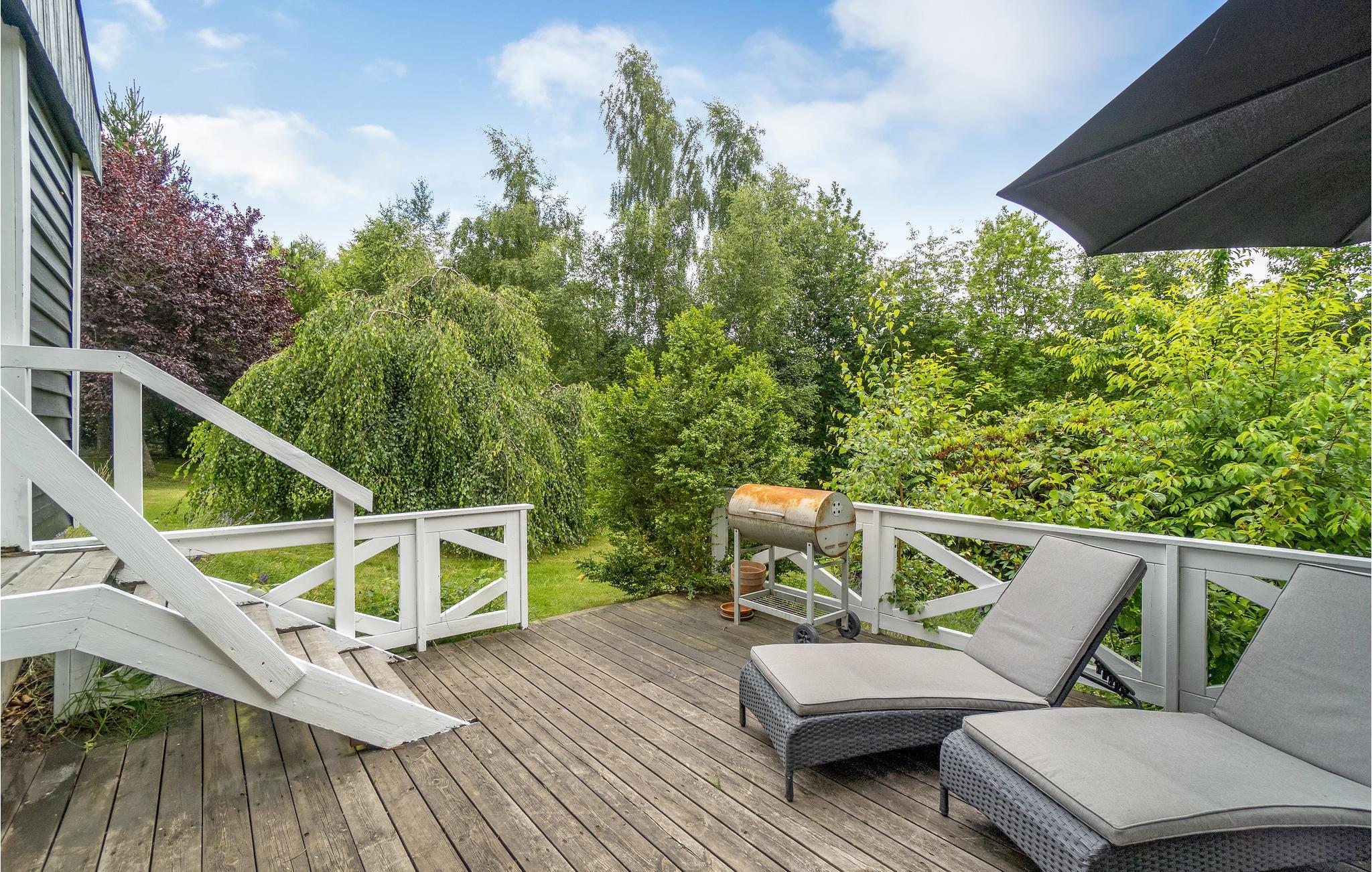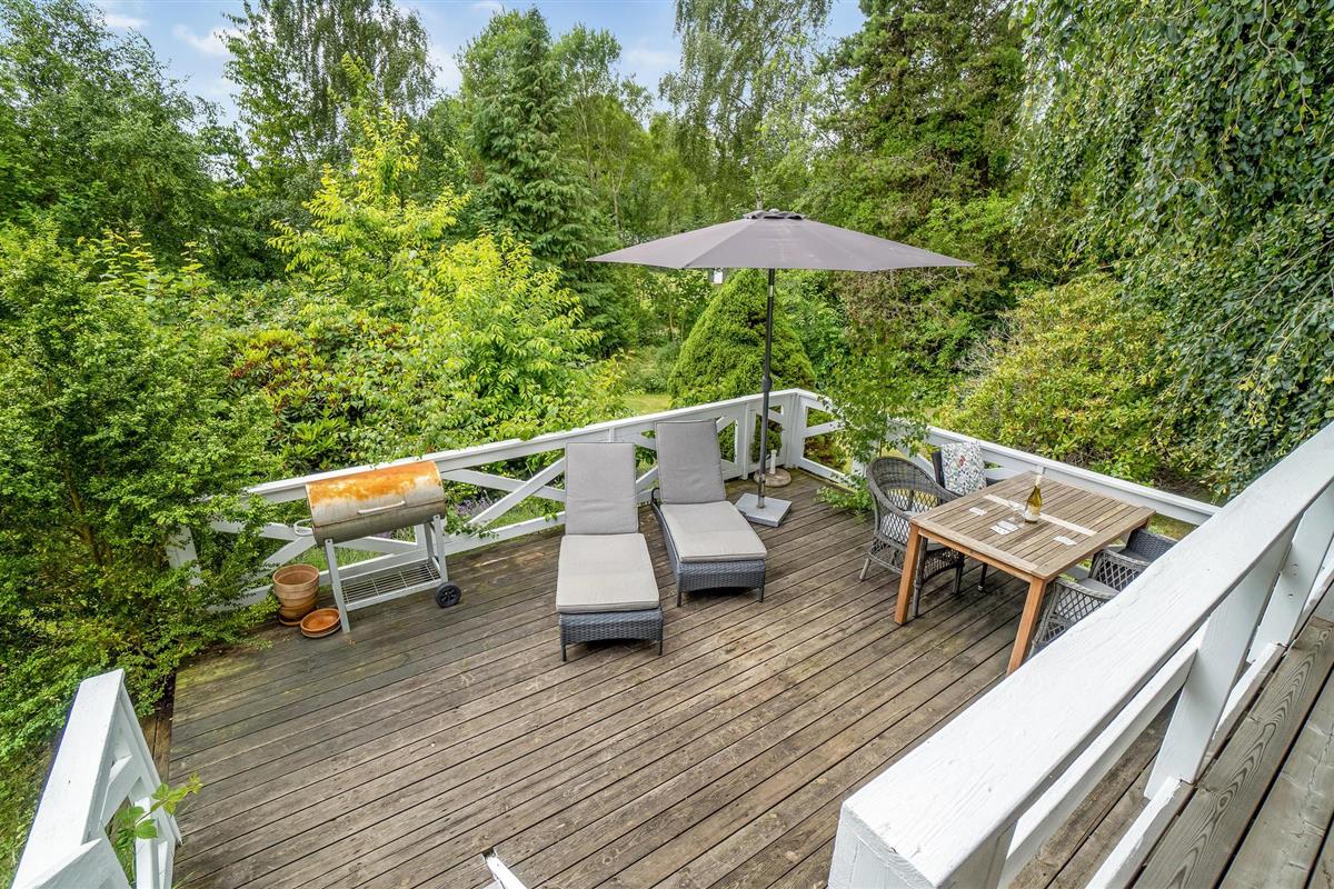 Stap uit op het split-level terras, dat zowel zonnige als schaduwrijke hoekjes biedt. Vermaak jezelf met een spelletje backgammon en geniet van de groene omgeving terwijl de kinderen zich vermaken op het grote natuurlijke perceel. De vele hoekjes op het terrein en de verschillende speelmogelijkheden garanderen dat je je niet hoeft te vervelen.