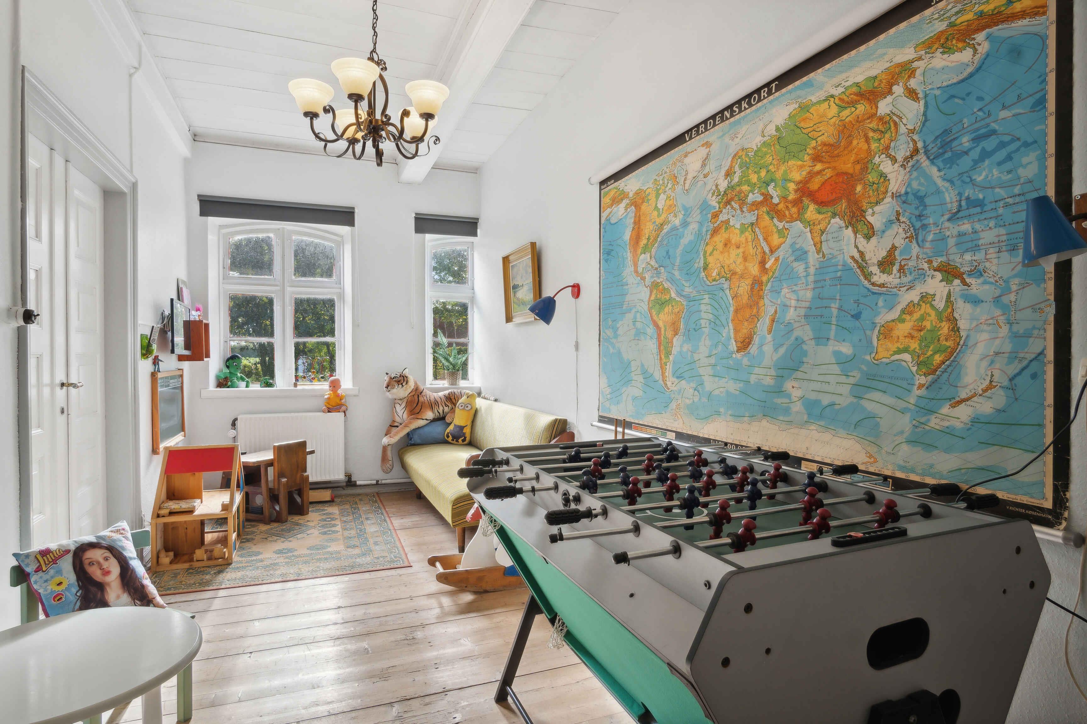 230 m2 boerderij voor boerderij in de eerste verdieping uit 1850 met grote binnenplaats en tuin. De boerderij biedt veel ruimte met in totaal 16 kamers. Je krijgt 3 grote authentiek ingerichte woonkamers (o.a. tv met Chromecast), 4 slaapkamers, 1 speelkamer (met mogelijkheid tot opmaken van slaapbank), zeer goed uitgeruste keuken met o.a. Sage Barista Pro-espressomachine, Kenwood-mixer, blender, fondue en nog veel meer, evenals 2 grote nieuwe badkamers met vloerverwarming (opgericht in 2020 en 2022) en toilet. De boerderij is ingericht in originele charmante stijl met eigentijds meubilair en oude schilderijen voornamelijk uit de lokale omgeving. De boerderij wordt verwarmd door een nieuwe lucht-water warmtepomp (opgericht in 2021). Het grote 26 kWp zonnestroomsysteem van de boerderij, geplaatst op het dak van een van de bedrijfsgebouwen, draagt aanzienlijk bij aan de stroomproductie op een duurzame manier. Er zijn in totaal 2 laadstations voor hybride auto's / elektrische auto's beschikbaar, respectievelijk een privé 11 kW AC-laadstation (gelegen op de binnenplaats) en een openbare 30 kW DC-snellader (gelegen aan de westkant van het bedrijfsgebouw naar de openbare weg) - gebruik via Monta app. Buiten is er volop ruimte. Er is een ongeveer 2.000 m2 grote grindplaats, een overdekt terras met 10-12 zitplaatsen en terrasverwarming en gas- en houtskoolgrill, een afgelegen terras (niet overdekt) met 10-12 zitplaatsen en omheind vuurplaats en vijver en een ongeveer 4.000 m2 grote tuin verdeeld in meerdere kamers. De tuinkamers bevatten onder andere fruitbomen, bessenstruiken en een kas met seizoensgroenten. Voor de kinderen is er een grote trampoline met veiligheidsnet (4,30 meter), 2 voetbaldoelen, 2 wipdieren en een groot klimrek met vijf verschillende schommels, klimtouw en glijbaan. Bovendien zijn er verschillende kinder- en volwassenenfietsen en mooncars, traptractoren enz. beschikbaar. In de tuin is er ook een afgebakend gebied met een nieuw 2,25 meter groot elektrisch verwarmd wildernisbad met thermodeksel (opgericht in 2023), een 3,5 meter grote houtgestookte sauna-ton (anno 2021), een buitendouche met warmwaterketel en een grote 12-persoons houtgestookte grillhut (anno 2022). Een aanzienlijke hoeveelheid brandhout is gratis beschikbaar tijdens het verblijf. In de oude hooizolder van de boerderij op de eerste verdieping is in de herfst van 2023 een 100 m2 grote geïsoleerde en verwarmde (2 x lucht-lucht warmtepompen) speelkamer opgericht. Hier vindt u een pooltafel, tafelvoetbal, airhockey, 2 x darts (normaal / elektrisch), shuffleboard, pokertafel (6 zitplaatsen), knutseltafel (4 zitplaatsen en 1 Trip Trap junior stoel), LEGO, speelgoed, bord- en kaartspellen, tv en projector met Chromecast, Xbox 360 en Xbox One met veel spellen en zitplaatsen en een grote bar in het midden van de kamer met 7 barkrukken. Vanaf het terrein kunt u genieten van uitzicht op zee over de Kleine Belt bij de monding van Haderslev Fjord. De boerderij is gelegen aan de route "Camino Haderslev Næs" en slechts 1 km van het zeer kindvriendelijke strand via een onverharde weg door het bos naar een gezellige kleine zomerhuisgebied bij Tamdrup Strand. Ook is het 1 km naar de boerderijwinkel en wijnwinkel in Hajstrup, waar lokaal geproduceerd fruit en groenten in het seizoen kunnen worden gekocht, onder andere van het land van deze boerderij. Er is razendsnel WIFI van 360 Mbps in de woonruimte en speelkamer. Er is ook buiten WIFI aan de westgevel van het woonhuis in het gebied rond de vijver, wildernisbad, sauna en grillhut.