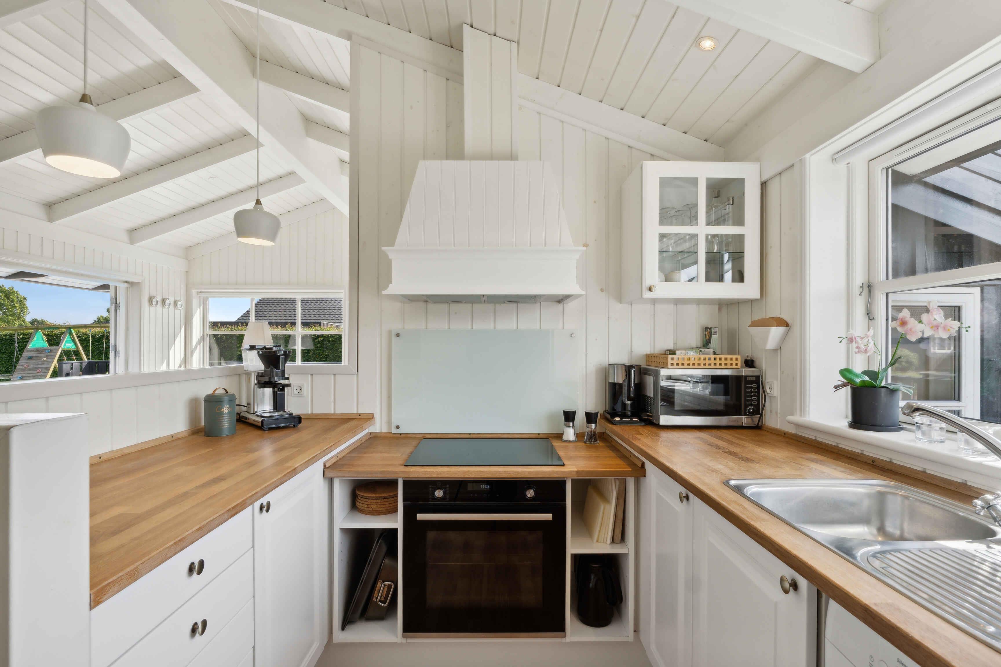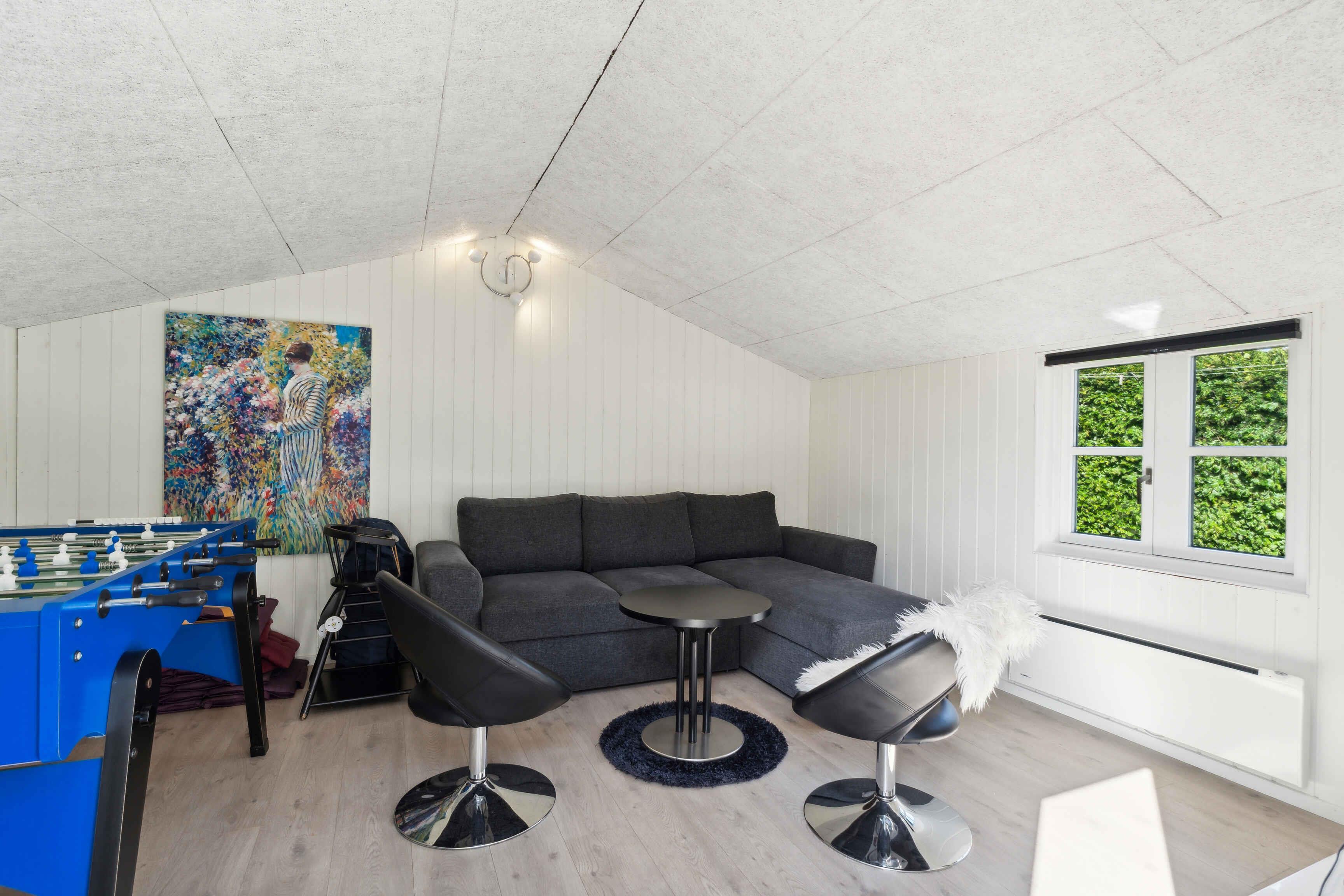 Dit prachtige vakantiehuis is modern en smaakvol ingericht, met veel lichtinval door de grote ramen. De vier slaapkamers zijn verdeeld in twee aan elke kant van de grote keuken/eetkamer. Het bijbehorende bijgebouw is jeugdig ingericht met een slaapbank, tafelvoetbal, tv en spelconsole. Het gebied is rustig en ligt bij een van de beste stranden van de regio. Het strand is zeer kindvriendelijk met ondiep water en een zandbodem. Enkele kilometers van het gebied ligt het gezellige vissersdorp Årøsund, vanwaar je naar het kleine eiland Årø kunt varen. Dichtbijgelegen grotere steden zijn onder andere Haderslev, een charmante oude stad die wordt gedomineerd door de indrukwekkende kathedraal. Maak bijvoorbeeld een wandeling door het Haderslev Dampark bij het stadscentrum. Jonge en actieve volwassenen kunnen de Streetdome Haderslev (de grootste skatepark van Denemarken) bezoeken. Er zijn ook tal van culturele aanbiedingen, of je nu van films, muziek of kunst houdt. Let op: Niet te huur voor commercieel gebruik.