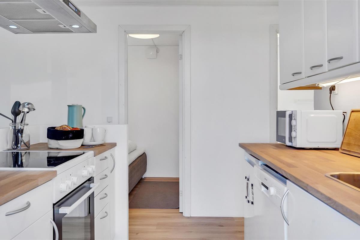 Vanuit de woonkamer heb je toegang tot een open, goed uitgerust terras. Eet samen aan de eettafel op zomeravonden, ontspan op de ligstoelen bij zonnig weer of luister 's avonds naar het knisperende vuur bij het kampvuur. Of probeer het hoogtepunt van dit huis, een Fins houten bad, van waaruit je volop kunt genieten van het fjordzicht. Er is ook een kitchenette in het bijgebouw.
