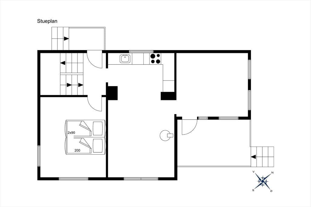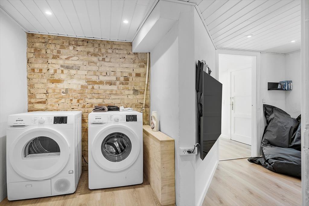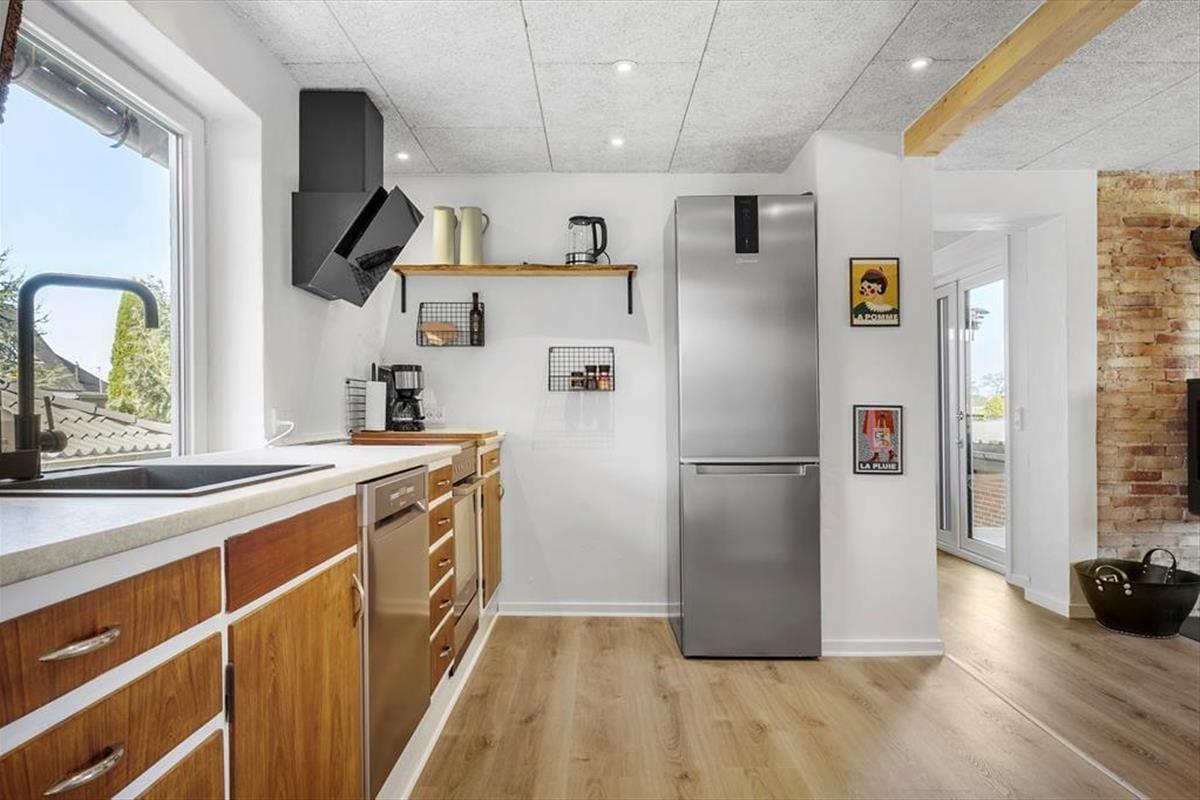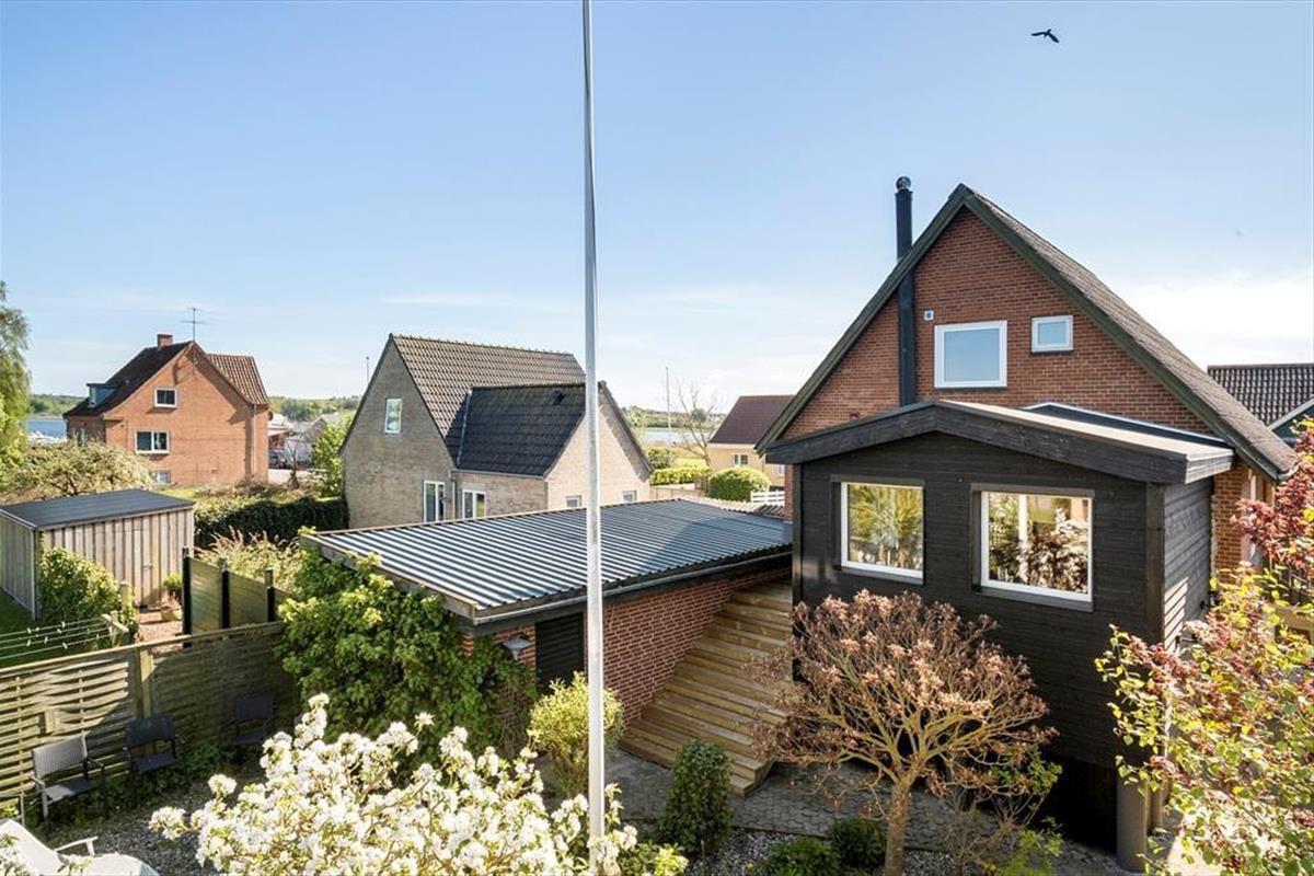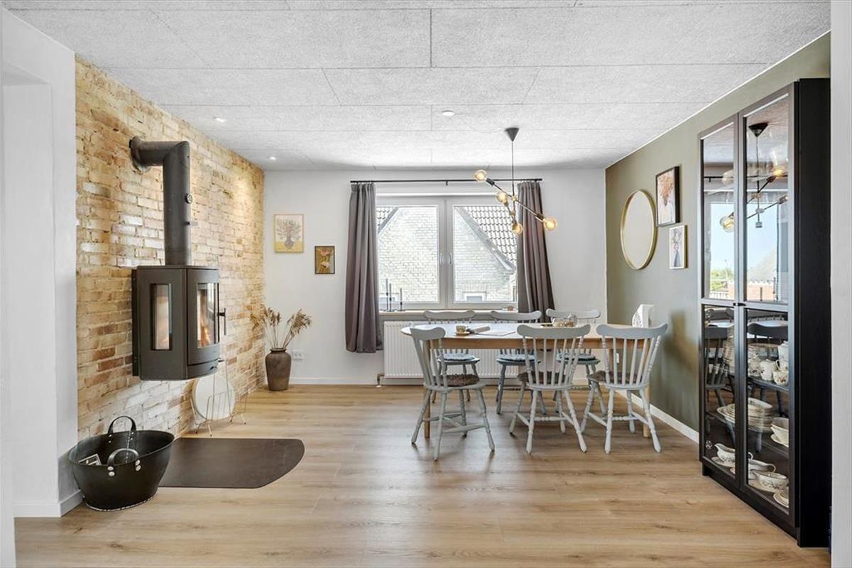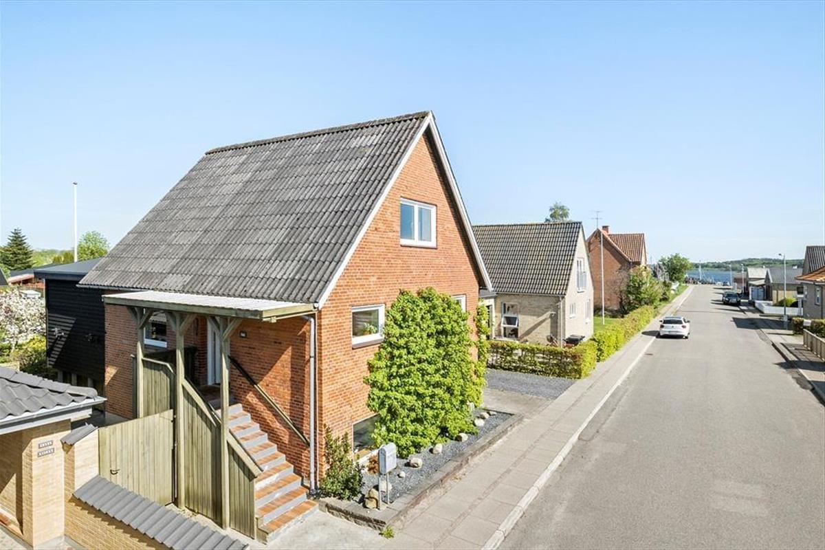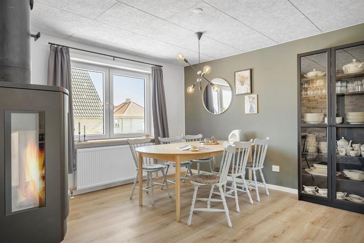Das Haus liegt gut platziert in einer ruhigen Straße, die direkt zum Hafen von Hadsund führt. Das Baujahr des Hauses ist 1945, und der klassische Baustil fügt dem Ferienerlebnis extra Seele und Charme hinzu. Der natürliche Mittelpunkt des Zusammenlebens ist die gemütliche Wohnküche mit Kaminofen, die sich im Erdgeschoss zusammen mit dem angrenzenden Wohnzimmer befindet – ein heller und schöner Raum, der beste Bedingungen für Feriengemütlichkeit bietet. Die rohe Ziegelwand im Wohnbereich trägt zur besonderen Atmosphäre des Hauses bei, und auch der Fjordblick ist als große Qualität hervorzuheben. Die drei Schlafzimmer sind auf jeder Etage verteilt, während sich das Badezimmer im ersten Stock und eine zusätzliche Toilette im Untergeschoss befinden.