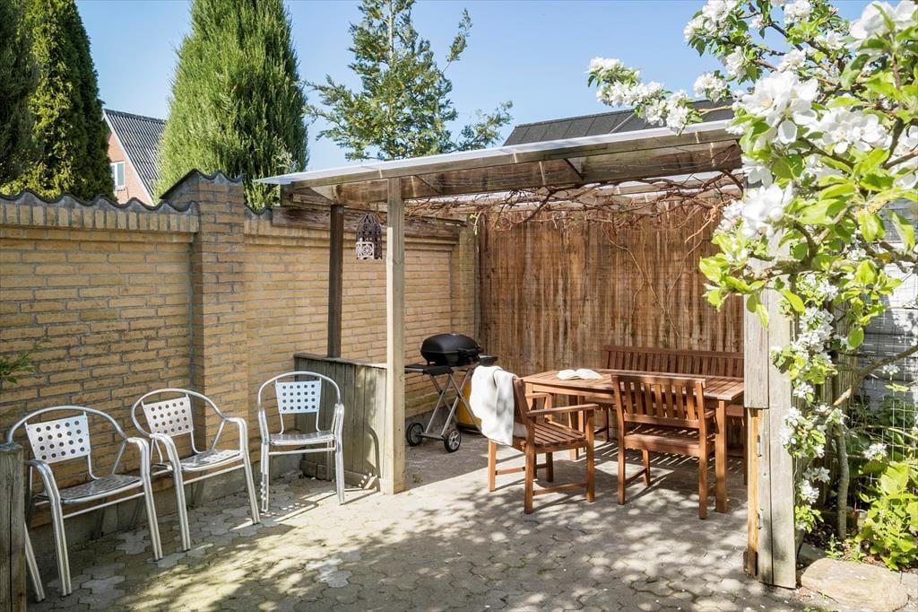 Wenn die Sommersonne scheint, ist es naheliegend, das Zusammensein auf die gemütlichen Terrassen des Hauses zu verlagern. Vom Wohnzimmer gibt es einen direkten Ausgang zu einer erhöhten Terrasse, und von hier gelangt man über eine Treppe zu den Terrassen hinter dem Haus. Hier herrscht eine fast südländische Stimmung, wo blühende Büsche und Bäume die Außenbereiche schön in Szene setzen. Es gibt gemütliche Ecken, in denen Sie sich mit einer Tasse Kaffee und einem guten Roman niederlassen und einfach die Sonne und die friedliche Umgebung genießen können. Auf dem überdachten Teil der Terrasse können Sie gemütliche Abendessen vorbereiten, wenn der Abend hereinbricht – und es gibt auch einen Grill, falls Sie gerne über offenem Feuer kochen.