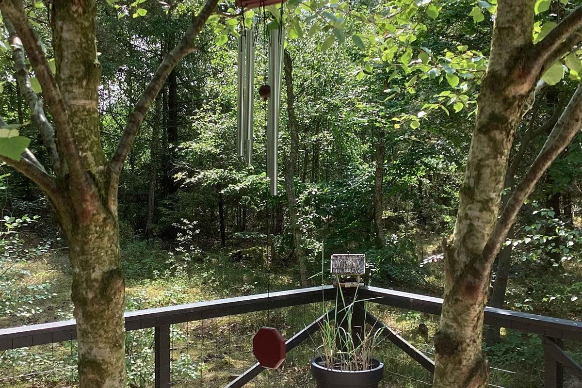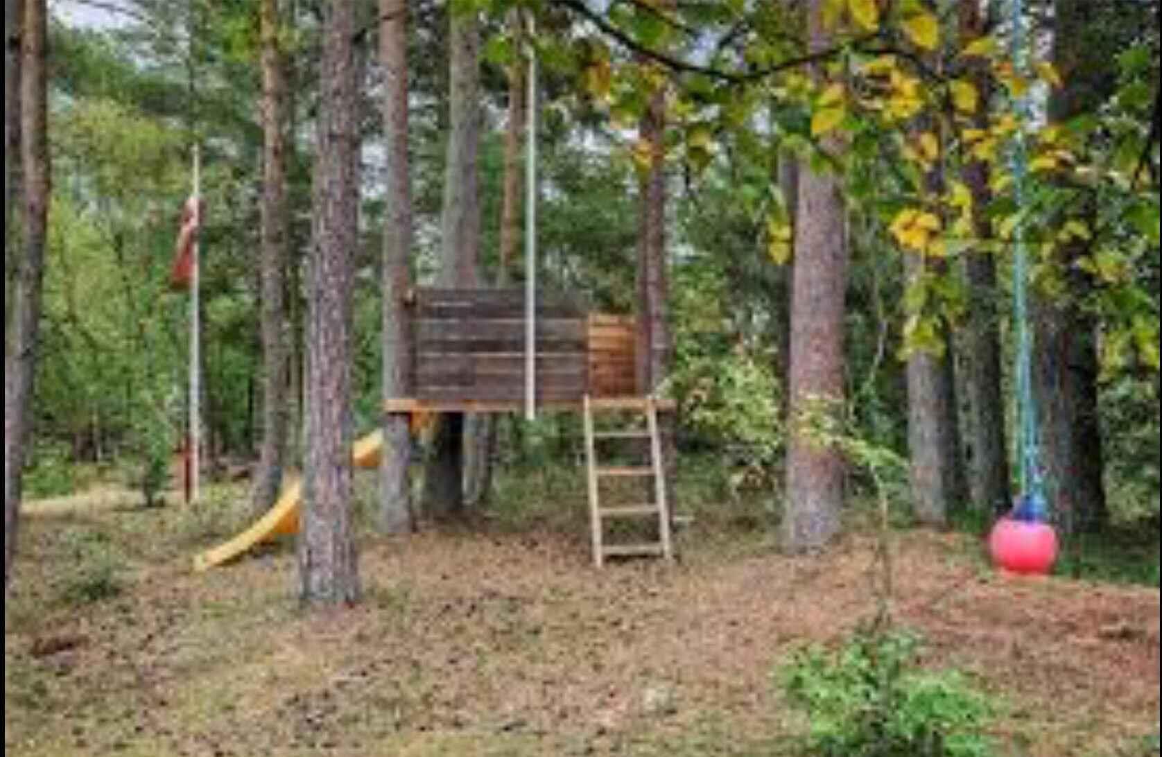 Vakantiehuis midden in het bos, dicht bij water.