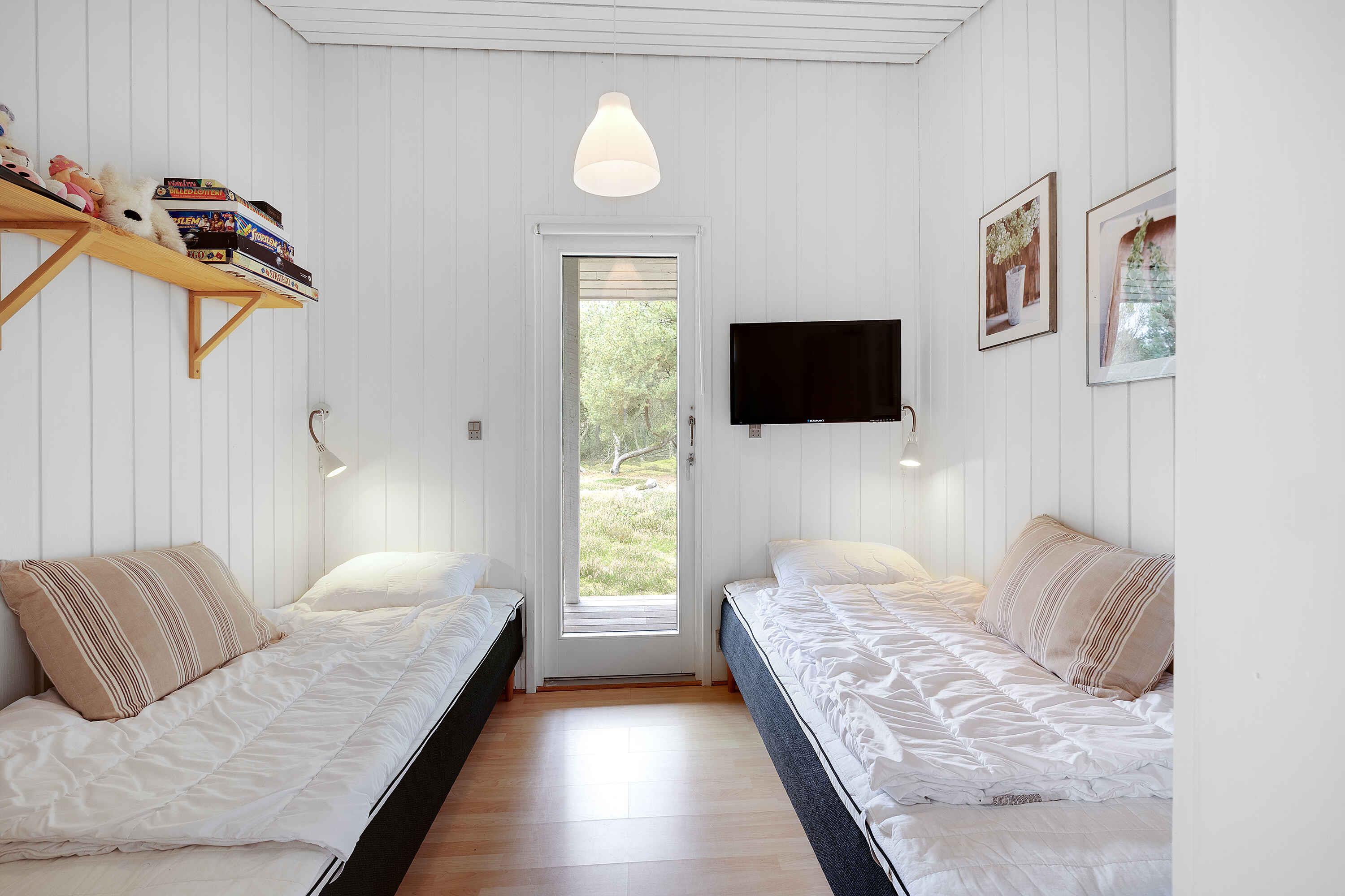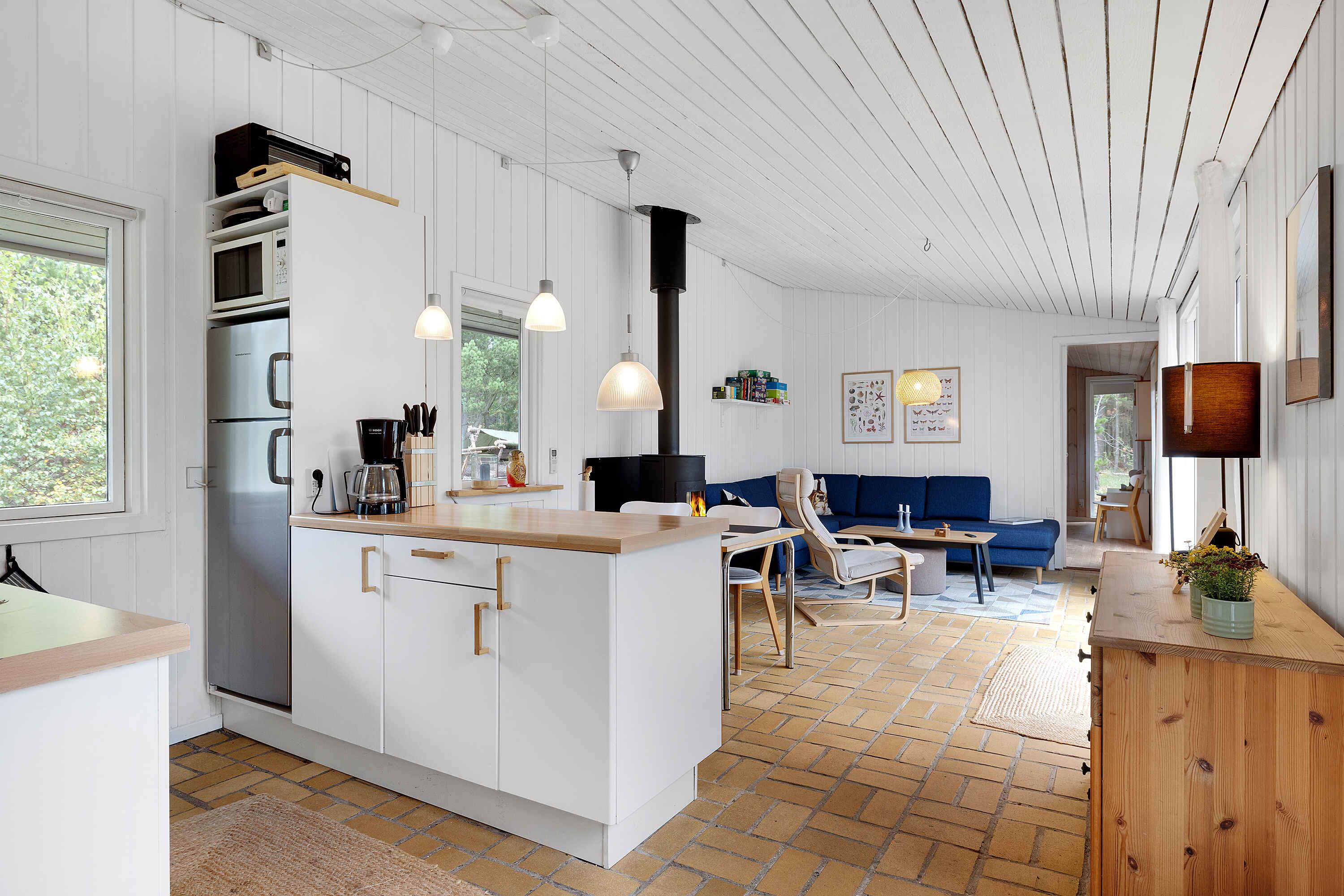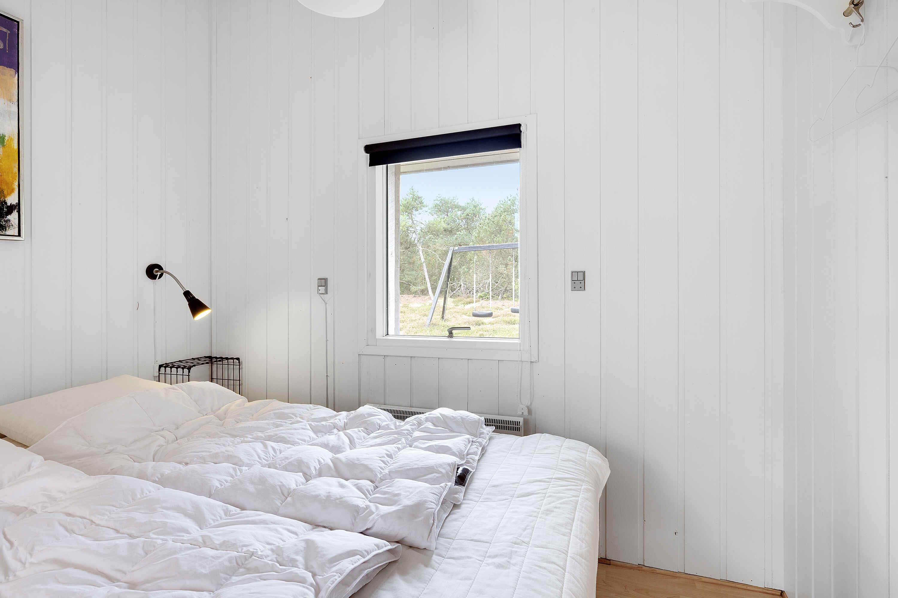 Dit prachtige zomerhuis ligt midden in het bos, waar echt tijd en ruimte is voor bezinning. Het dierenleven direct buiten de deur bestaat uit fazanten, hazen, reeën, eekhoorns en af en toe komt de vos langs. Het huis biedt plaats aan 6 personen en heeft 3 slaapkamers, dus er is ruimte voor gezelligheid met het hele gezin. Het zomerhuis beschikt over een volledig uitgeruste keuken en een nieuwere badkamer met wasmachine. Er is draadloos internet en toegang tot verschillende streamingdiensten, als je je kunt losmaken van het uitzicht vanaf het ruime, deels overdekte terras. Er zijn tuinmeubelen en ligstoelen, evenals een grote gasbarbecue. Als je verkoeling nodig hebt op de warme zomerdagen, is er ook een buitendouche. Voor de kleinere kinderen zijn er schommels, een trampoline en een zandbak bij het huis, evenals verschillende buitenspelen (petanque, darts, ringwerpen, etc.). Ongeveer 200 m van het huis is er ook een speeltuin. Het is 700 m naar de Kattegat, die je gemakkelijk kunt bereiken via paden vanaf het huis. Het heeft een mooie zandbodem, maar het is niet een optimale zwemplaats, eerder een kwelder. Een tochtje met bijvoorbeeld een paddleboard is goed te doen. Als je een mooi zwemstrand wilt, bezoek dan het gezellige Øster Hurup, dat ongeveer 15 min. rijden naar het noorden van het huis ligt. Hier vind je ook winkels, cafés, een viswinkel en een jachthaven. Als je ongeveer 2,3 km naar het zuiden gaat, kom je bij Als Odde. Het ligt aan de monding van de Mariager Fjord en biedt ook enkele zwemmogelijkheden. Er is een groot terrein met een grillbar en de mogelijkheid om in het hoogseizoen een kano te huren en waterskiën. Op weg naar Als Odde kom je langs het gezellige kleine restaurant Jægerhuset. Het ligt ongeveer 1,5 km van het huis. Let op: Niet te huur voor commercieel gebruik.