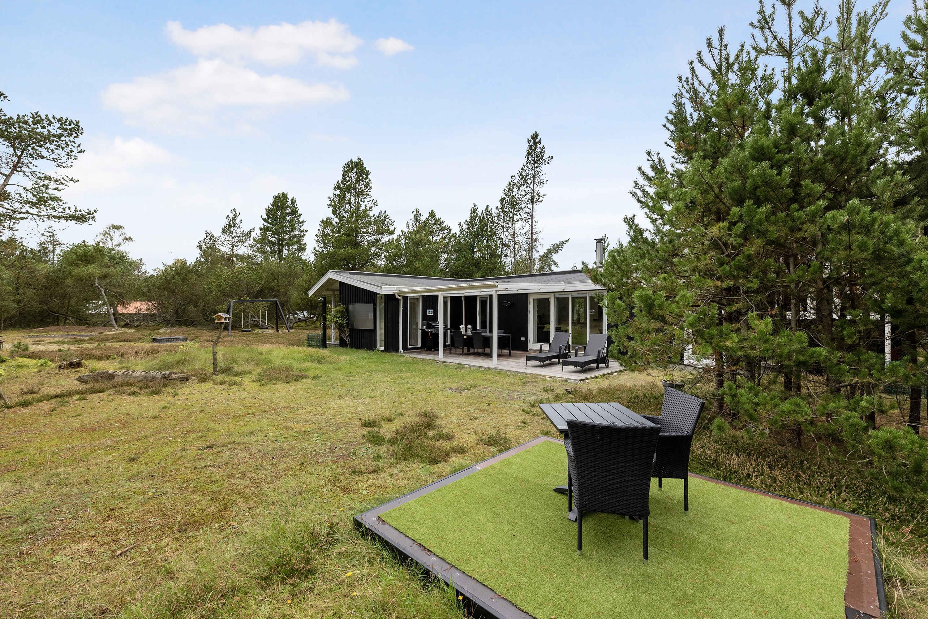 Rustig gelegen zomerhuis in het bos nabij Kattegat met moderne voorzieningen en speelplezier voor kinderen.