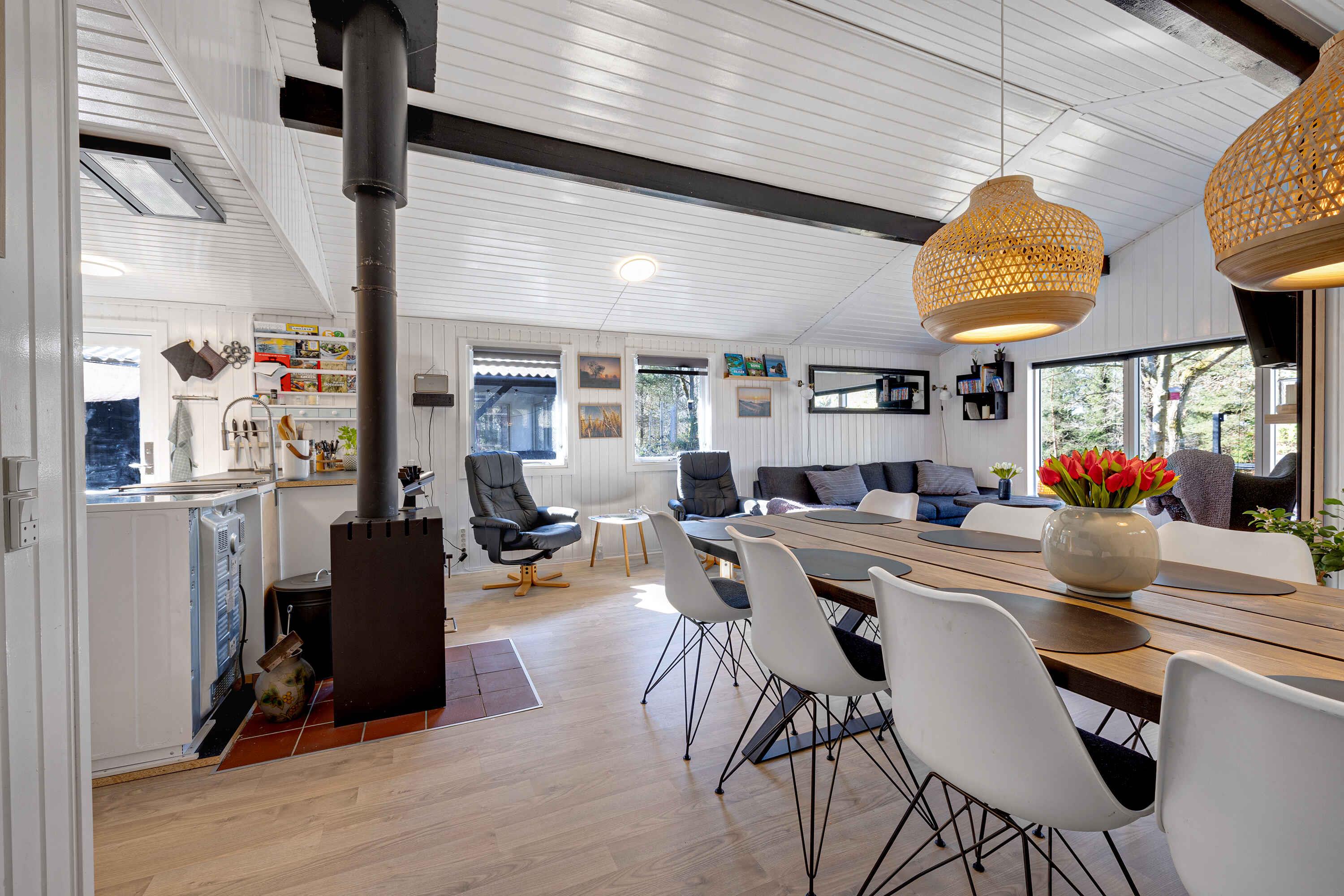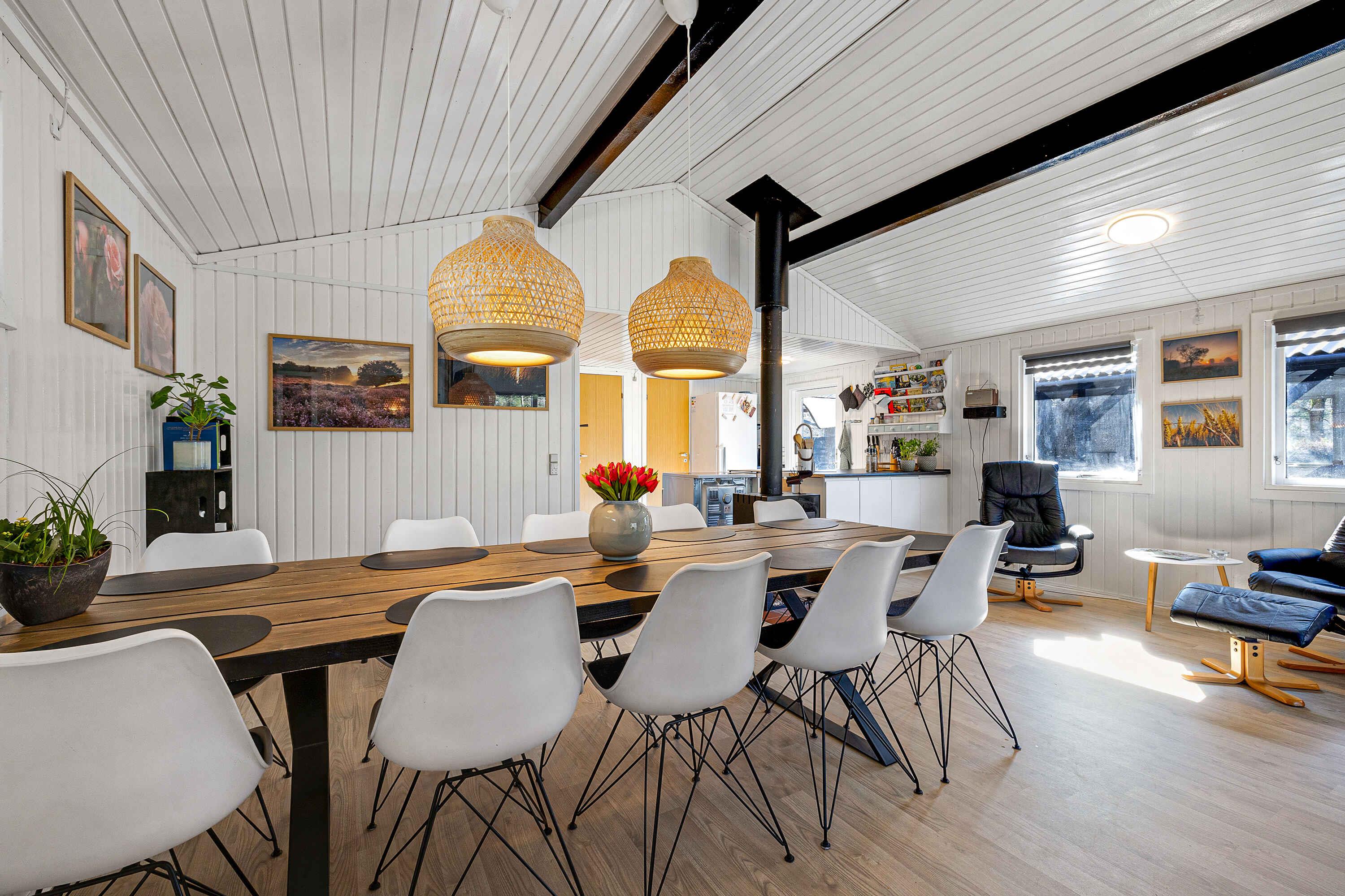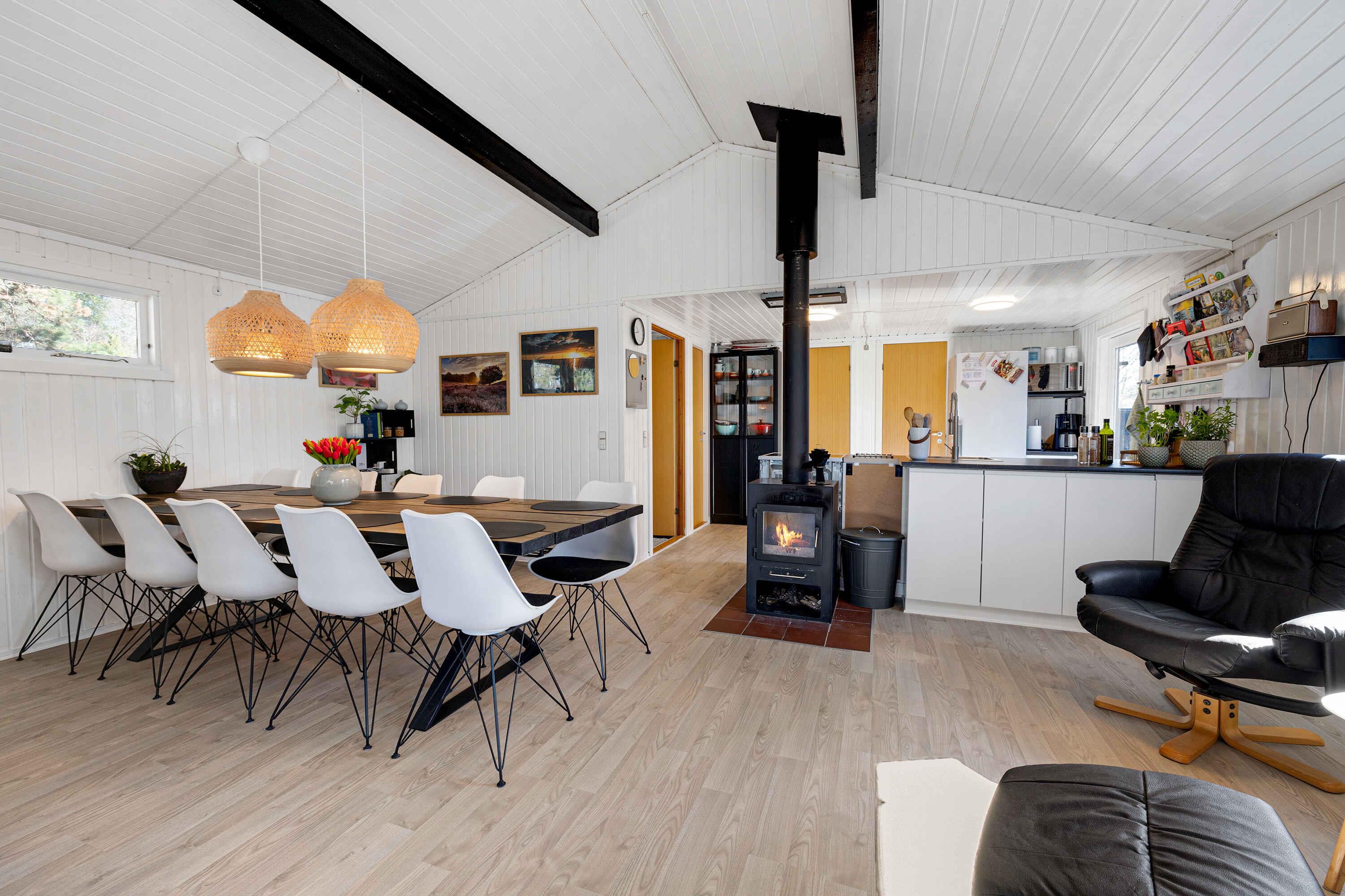 Gelegen aan een rustige doodlopende weg vind je dit uitnodigende vakantiehuis omringd door een privé natuurgebied. Hier is rust, vrede en een rijke dierenwereld. Het huis presenteert zich licht met wit geschilderde houten wanden. Grote raampartijen in de woonkamer nodigen de natuur uit. Een volledig uitgeruste keuken opent naar een terras en een overdekt terras, beide met eetgelegenheden. Barbecueavonden? Geen probleem, een grote grill staat klaar. Binnen garanderen 3 slaapkamers met 8 kwaliteitsbedden een comfortabele rust. De slaapkamers, het bijgebouw en de woonkamer zijn voorzien van een flatscreen-tv, allemaal met Chromecast. De tuin biedt activiteiten voor iedereen. Van trampoline tot corn-hole spel. Als je van eten boven een vuur houdt, dan is de vuurplaats klaar! Korte afstand van de zandbank van Kattegat "Hawaii" met heerlijk zwemwater. Øster Hurup, slechts 6 km verderop, biedt een kindvriendelijk strand en een overdekt zwembad. Ervaar herten, fazanten en eekhoorns vroeg in de ochtend. Visliefhebbers hebben ook meerdere opties in de buurt. Winkels, charmante stadsomgevingen, zomermuziek en een selectie van restaurants wachten in het nabijgelegen Øster Hurup. Een idyllische locatie, perfect voor een ontspannen vakantie.