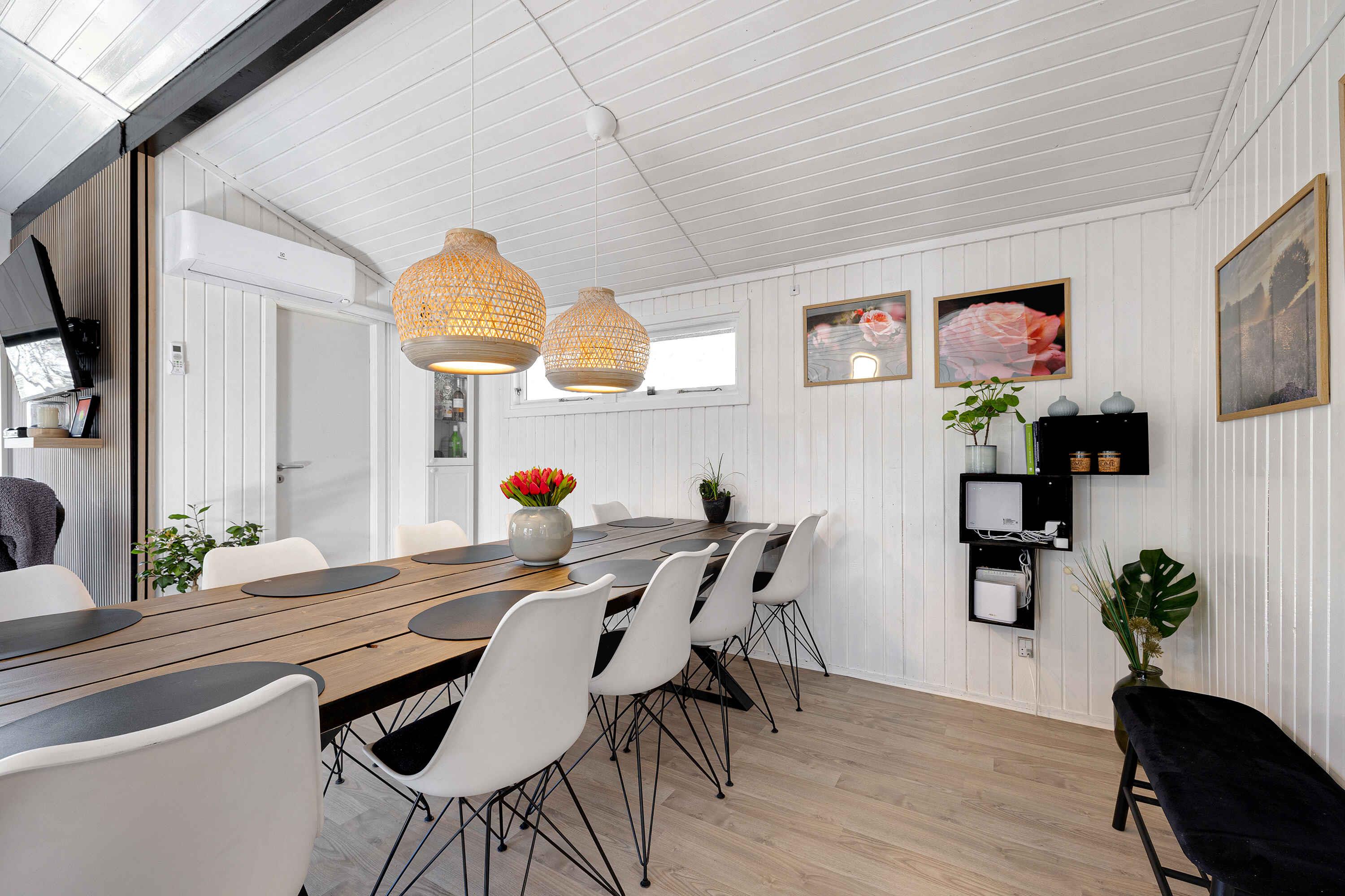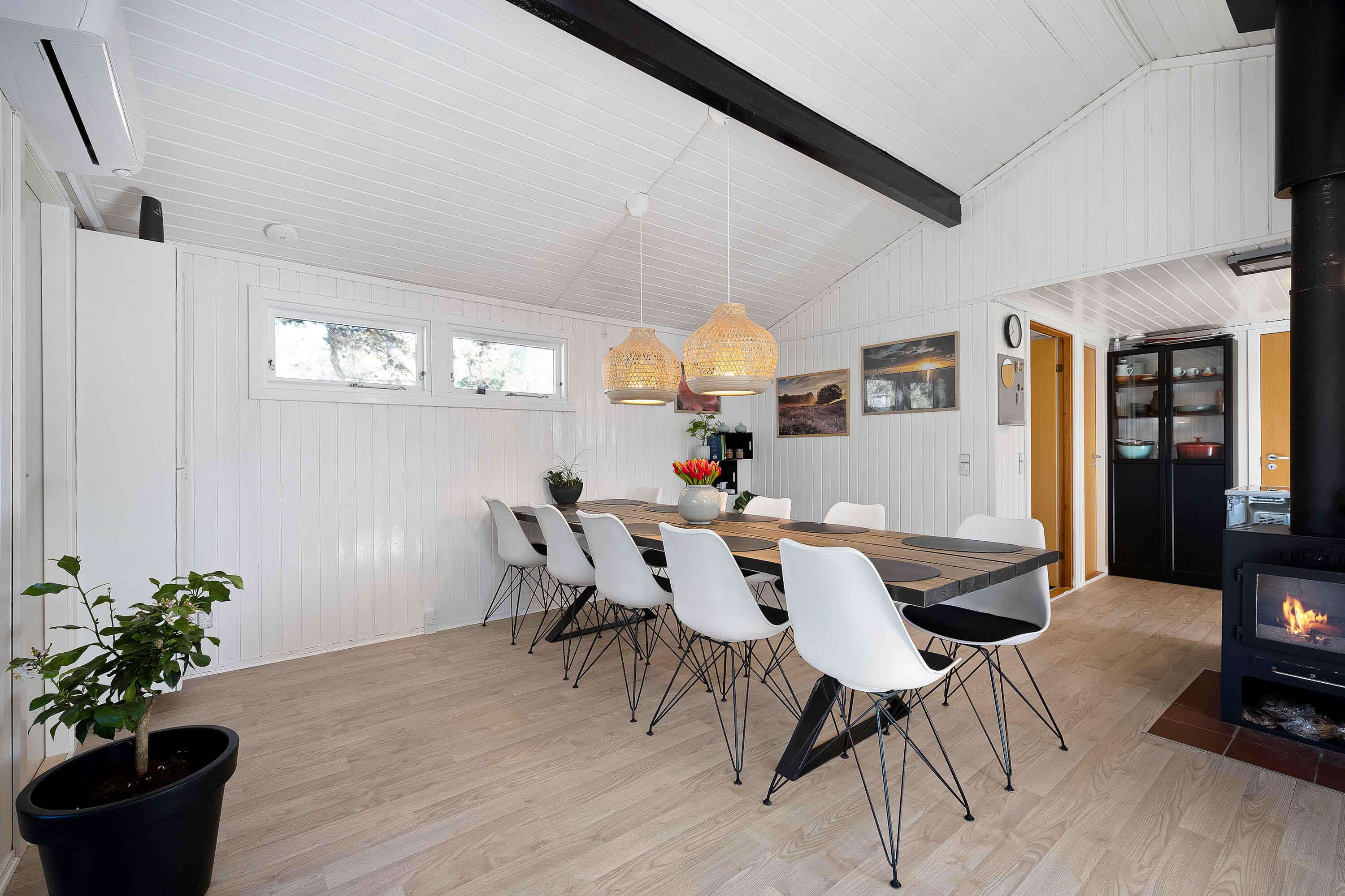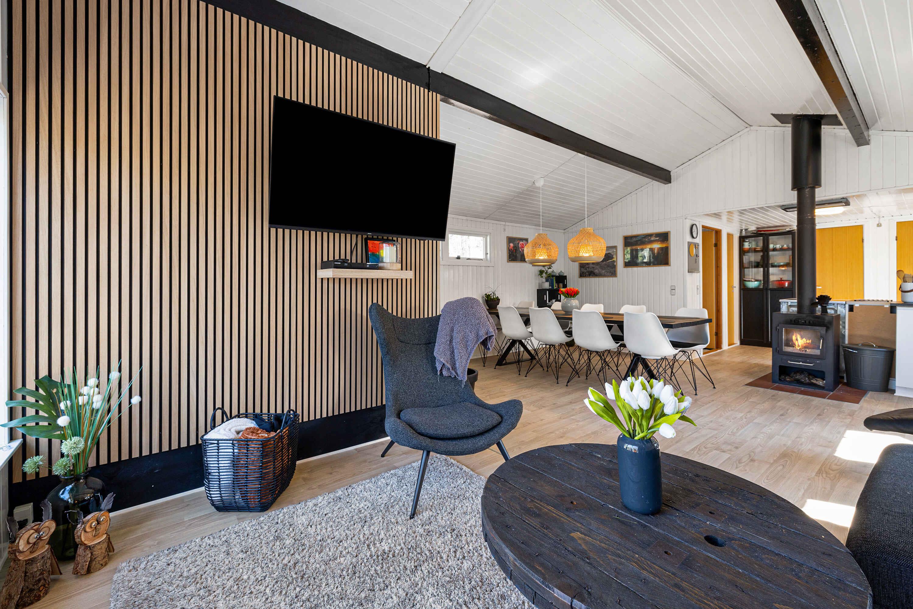 Gelegen aan een rustige doodlopende weg vind je dit uitnodigende vakantiehuis omringd door een privé natuurgebied. Hier is rust, vrede en een rijke dierenwereld. Het huis presenteert zich licht met wit geschilderde houten wanden. Grote raampartijen in de woonkamer nodigen de natuur uit. Een volledig uitgeruste keuken opent naar een terras en een overdekt terras, beide met eetgelegenheden. Barbecueavonden? Geen probleem, een grote grill staat klaar. Binnen garanderen 3 slaapkamers met 8 kwaliteitsbedden een comfortabele rust. De slaapkamers, het bijgebouw en de woonkamer zijn voorzien van een flatscreen-tv, allemaal met Chromecast. De tuin biedt activiteiten voor iedereen. Van trampoline tot corn-hole spel. Als je van eten boven een vuur houdt, dan is de vuurplaats klaar! Korte afstand van de zandbank van Kattegat "Hawaii" met heerlijk zwemwater. Øster Hurup, slechts 6 km verderop, biedt een kindvriendelijk strand en een overdekt zwembad. Ervaar herten, fazanten en eekhoorns vroeg in de ochtend. Visliefhebbers hebben ook meerdere opties in de buurt. Winkels, charmante stadsomgevingen, zomermuziek en een selectie van restaurants wachten in het nabijgelegen Øster Hurup. Een idyllische locatie, perfect voor een ontspannen vakantie.