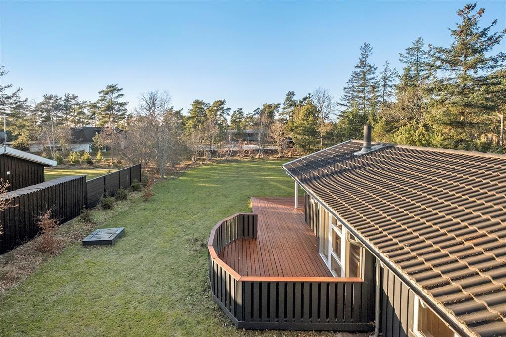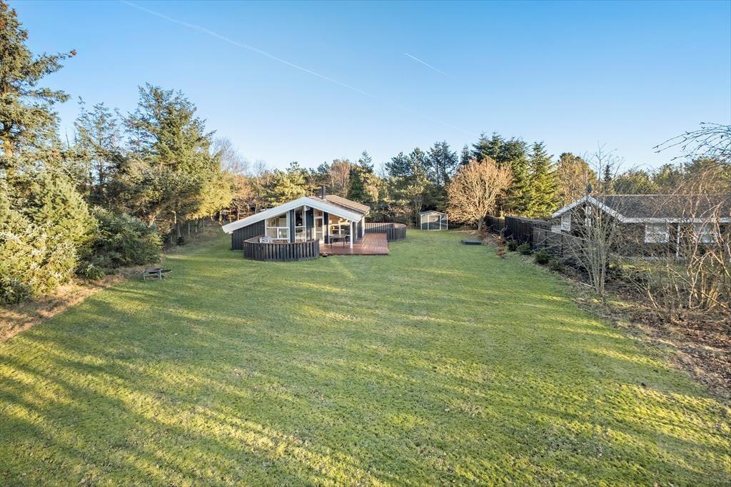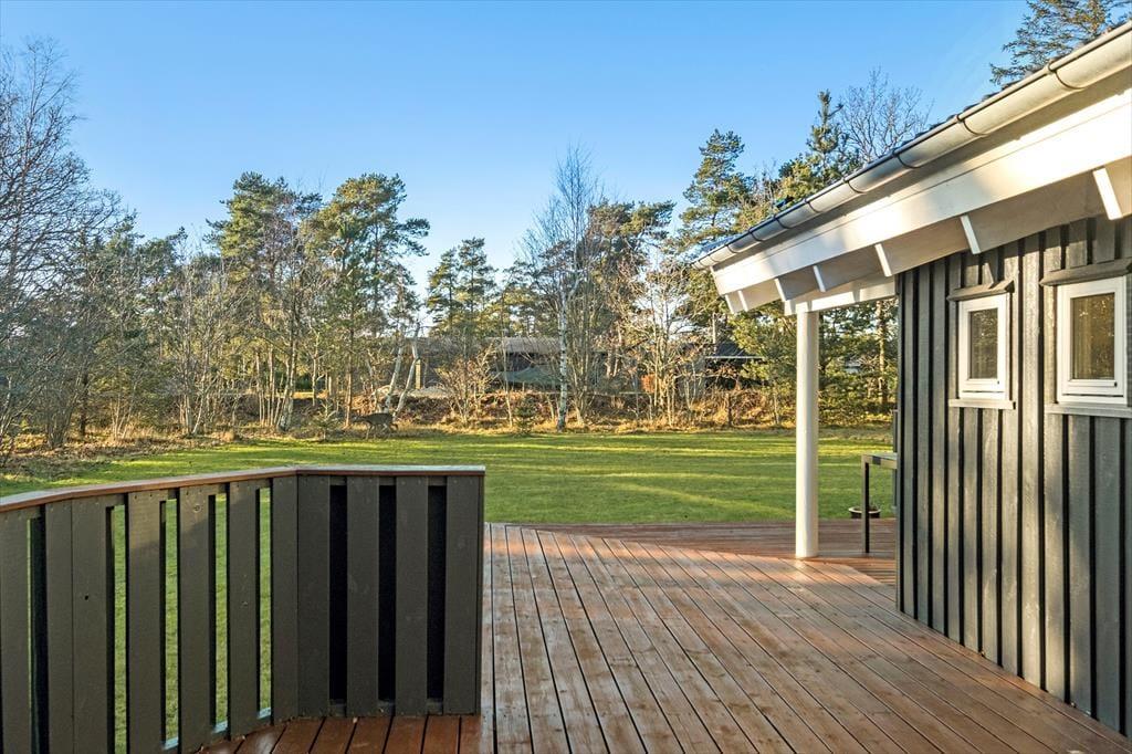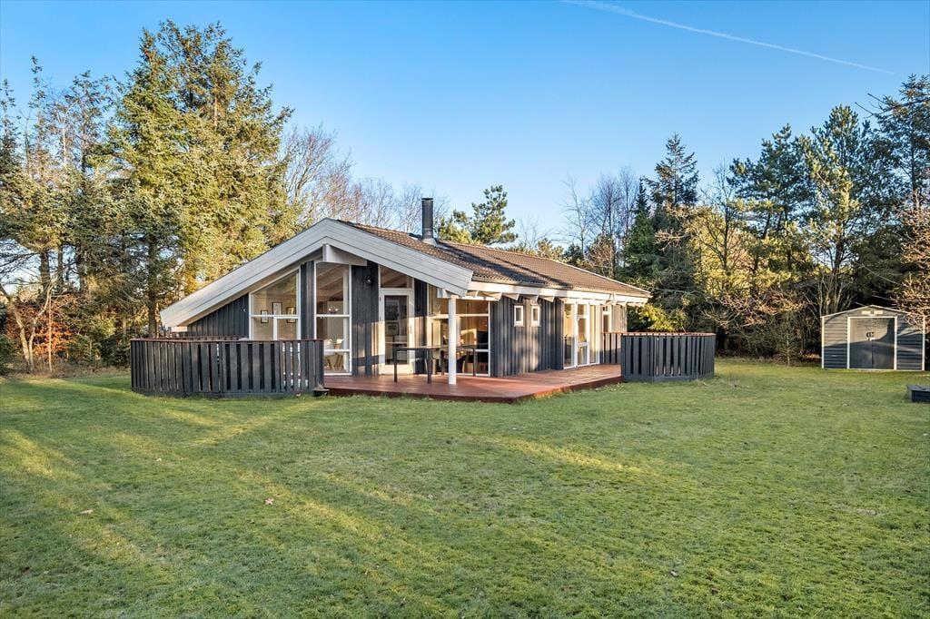 Es gibt eine große Terrasse mit Möglichkeiten für Sonne von morgens bis abends. Ein Teil der Terrasse ist überdacht, unter den Sie sich bei Regen und Nebel zurückziehen können. Von hier blicken Sie auf das wundervollste Grundstück, das von hohen Bäumen umgeben ist, und den gepflegten Rasen, der zum Spielen mit oder ohne Ball und zu gemütlichen Stunden am Lagerfeuer einlädt. Hier können Sie sich ganz ungestört aufhalten und Ihren Urlaub in vollen Zügen genießen.
