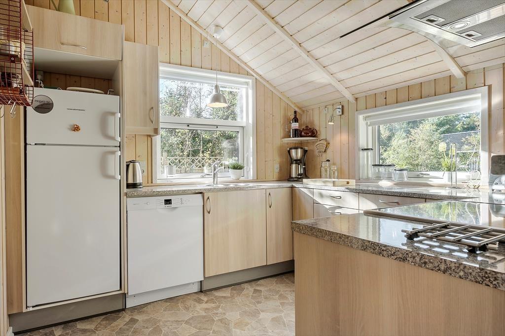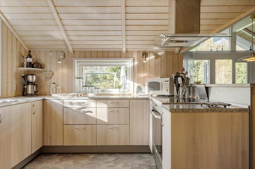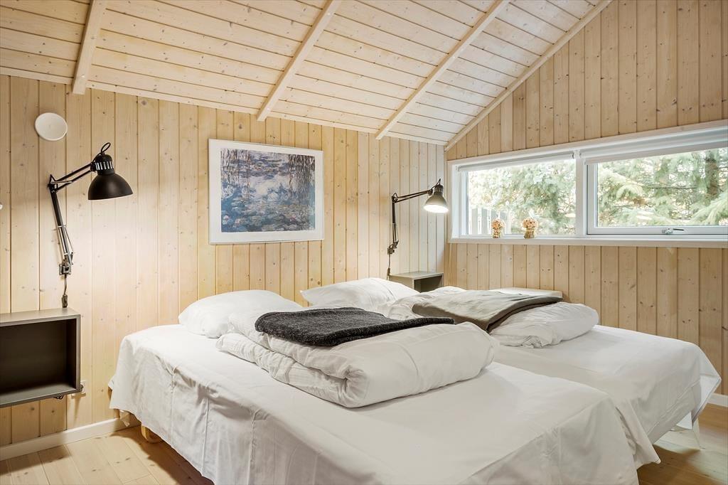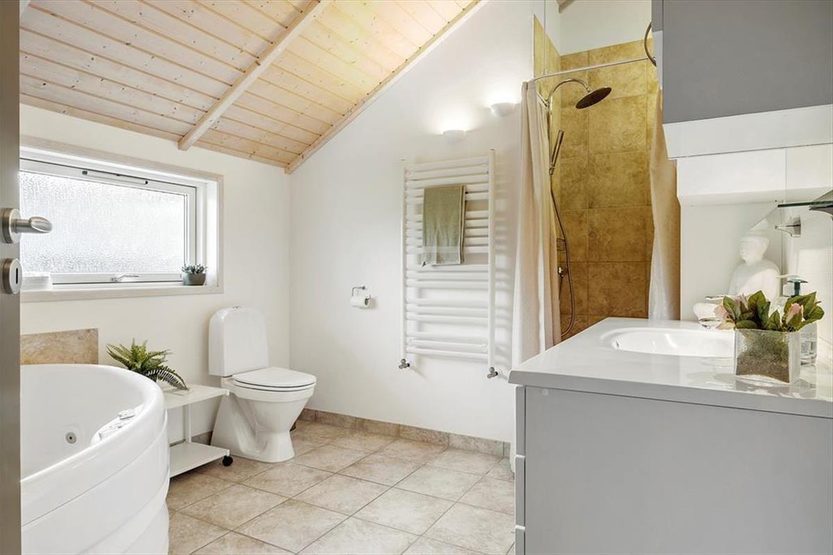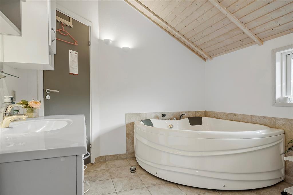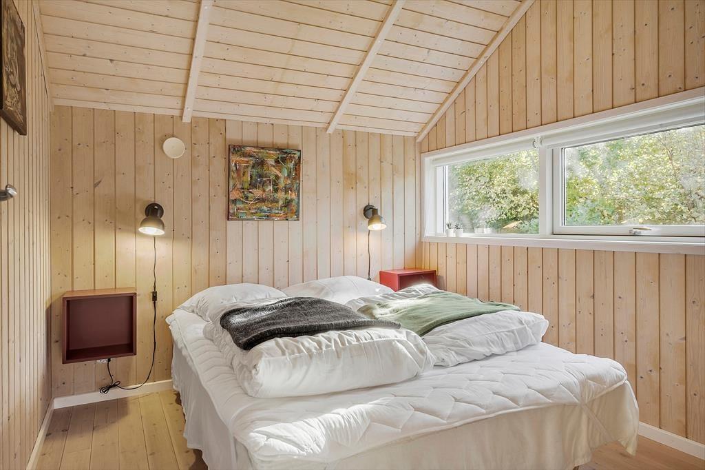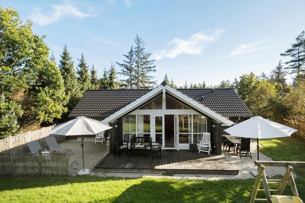 Das Ferienhaus liegt angenehm zurückgezogen am Bisnapvej, dem Weg, der Sie direkt hinunter an den schönen Sandstrand und die sanft wogenden Wellen des Kattegat führt. Dank der Entfernung von lediglich 530 Metern, erreichen Sie den Strand auch mit den jüngsten Familienmitgliedern problemlos zu Fuß. Aufgrund der geringen Wassertiefe gilt dieser Strand als kinderfreundlich. Angler dürfen sich in der näheren Umgebung, sowohl an der Kattegatküste als auch am Limfjord, auf gute Angelbedingungen und Fangmöglichkeiten freuen. Golfspielende Gäste sind auf dem nur wenige Kilometer entfernt gelegenen Platz des Hals Golf Klub herzlich willkommen. Im schnell erreichbaren Ort Hals treffen Sie auf gute Einkaufsmöglichkeiten und einen gemütlichen Sportboothafen, der zum Bummeln und Verweilen einlädt. Urlauber, die gerne ein wenig Großstadtluft schnuppern möchten und ausgedehnte Shoppingtouren bevorzugen, empfehlen wir einen Abstecher in die nur 30 Minuten entfernt gelegene Stadt Aalborg.