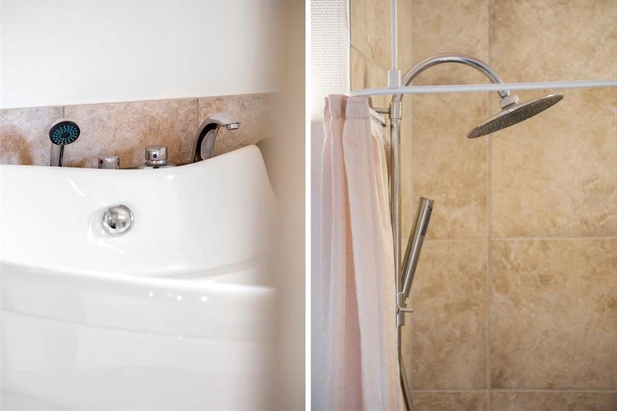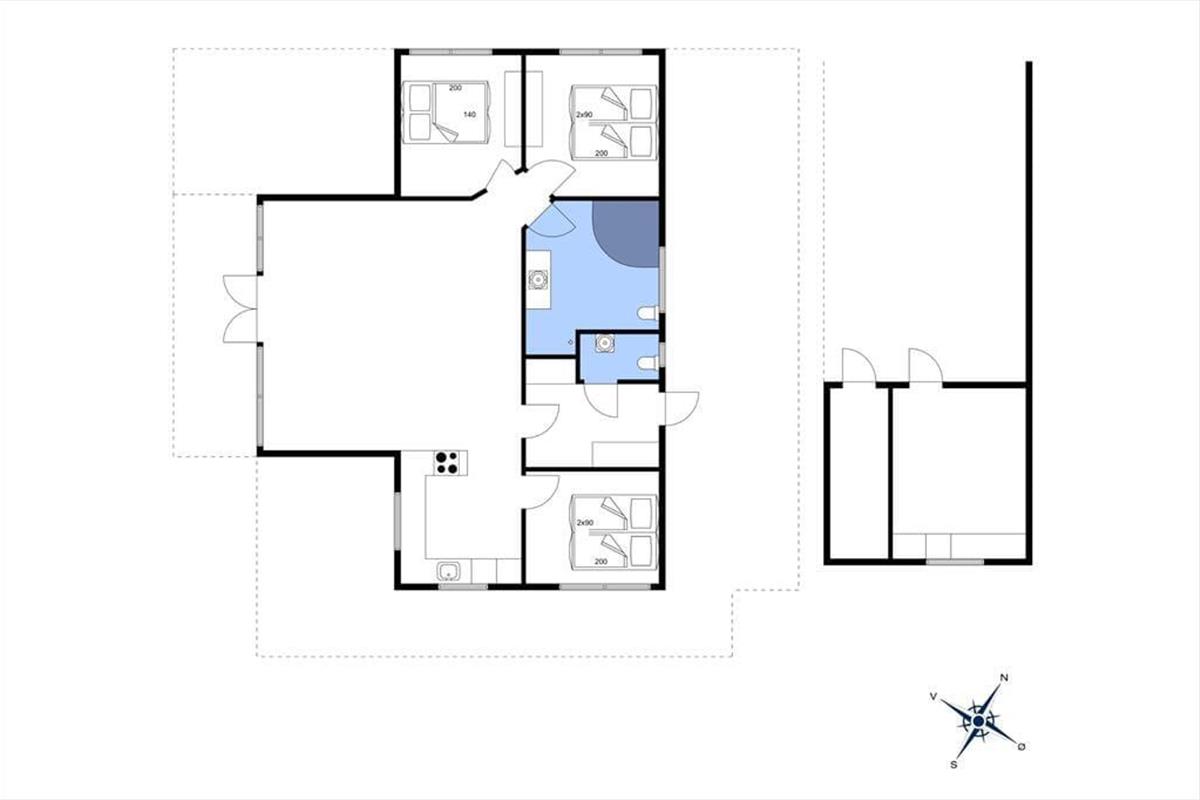 Im Innenbereich erwartet Sie ein ganz besonders schönes Ferienhausambiente. Die Wohnfäche von 97 gut eingerichteten Quadratmetern bietet Ihnen angenehm viel Bewegungsfreiheit. Zum zentralen Sammelpunkt wird im Nu der Aufenthaltsbereich avancieren, der sich aus dem Wohnraum und der offen angeschlossenen Küche zusammensetzt. Dieser Bereich besticht mit hohen Decken und großen Fensterpartien, die zusammen maßgeblich zur hellen und luftigen Wohnatmosphäre beitragen. Die komfortablen Polstermöbel, der schöne Esstisch und der große Flachbild-Fernseher laden zu gemütlichen Stunden im Kreise Ihrer Lieben ein. In der Küche erleichtern Ihnen moderne Annehmlichkeiten die Zubereitung Ihrer Mahlzeiten. Ganz besonders intensive Momente der Erholung und Entspannung verspricht Ihnen der im Badezimmer platzierte Whirlpool. Dank des im Eingangsbereich vorhandenen Gäste-WCs genießen Sie diese wahrhaftigen Wellnessmomente völlig ungestört. Die Wohnfläche beinhaltet darüber hinaus drei gute Schlafzimmer, die allesamt mit weichen Doppelbetten ausgestattet sind. Falls Sie sich unnötig viel Reisegepäck ersparen oder Ihre Urlaubsgarderobe ein wenig auffrischen möchten, benutzen Sie gerne die im Nebengebäude platzierte Waschmaschine.