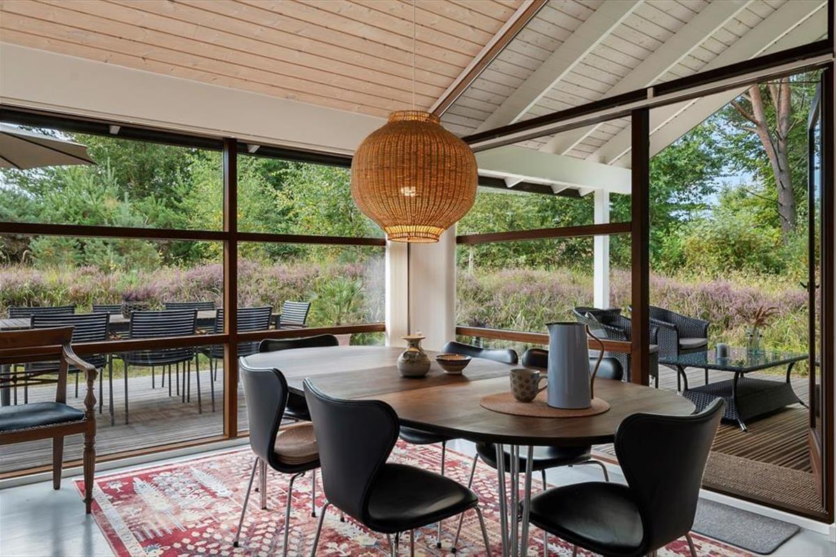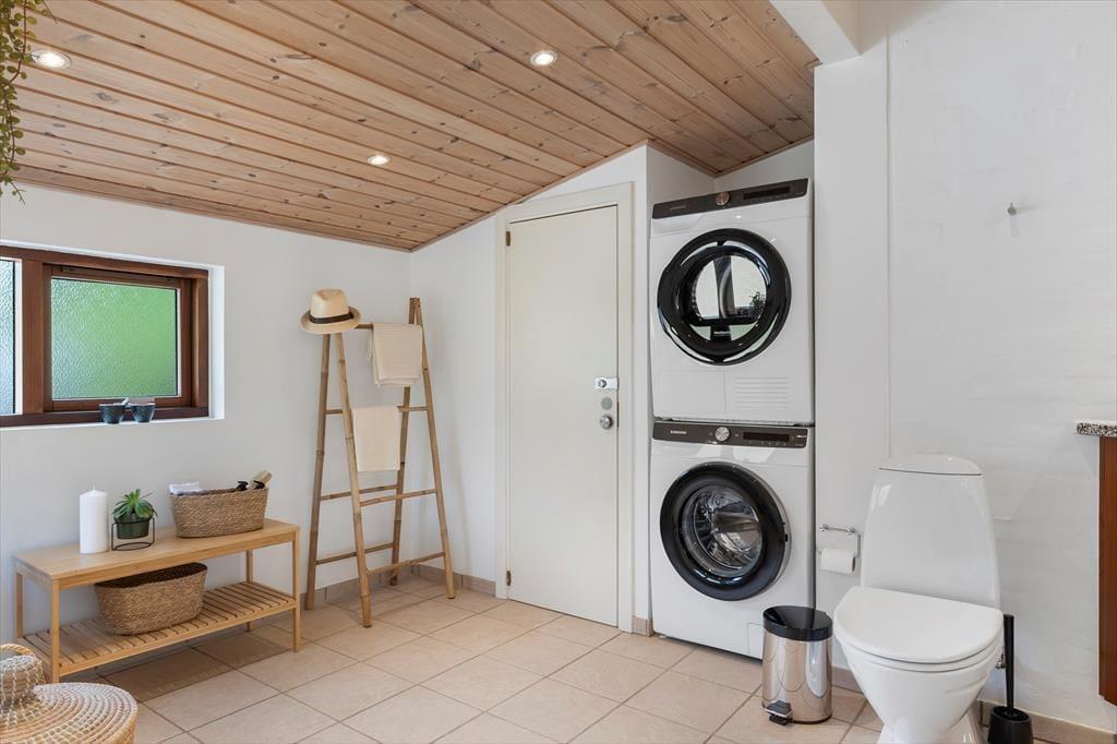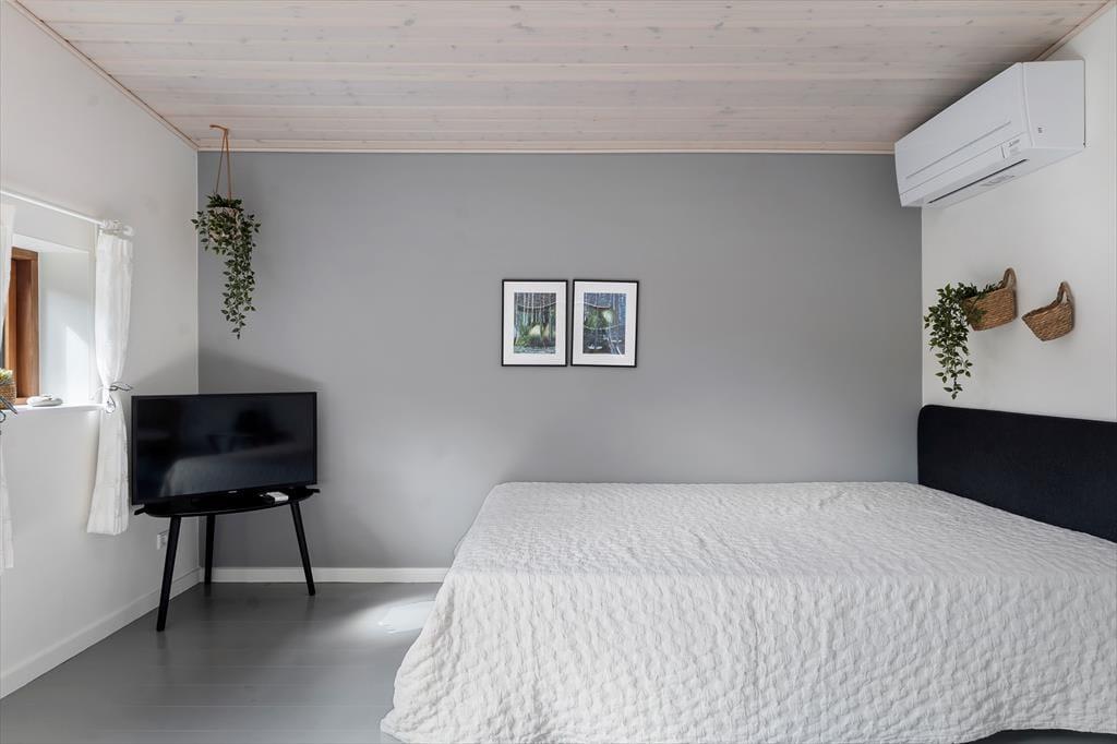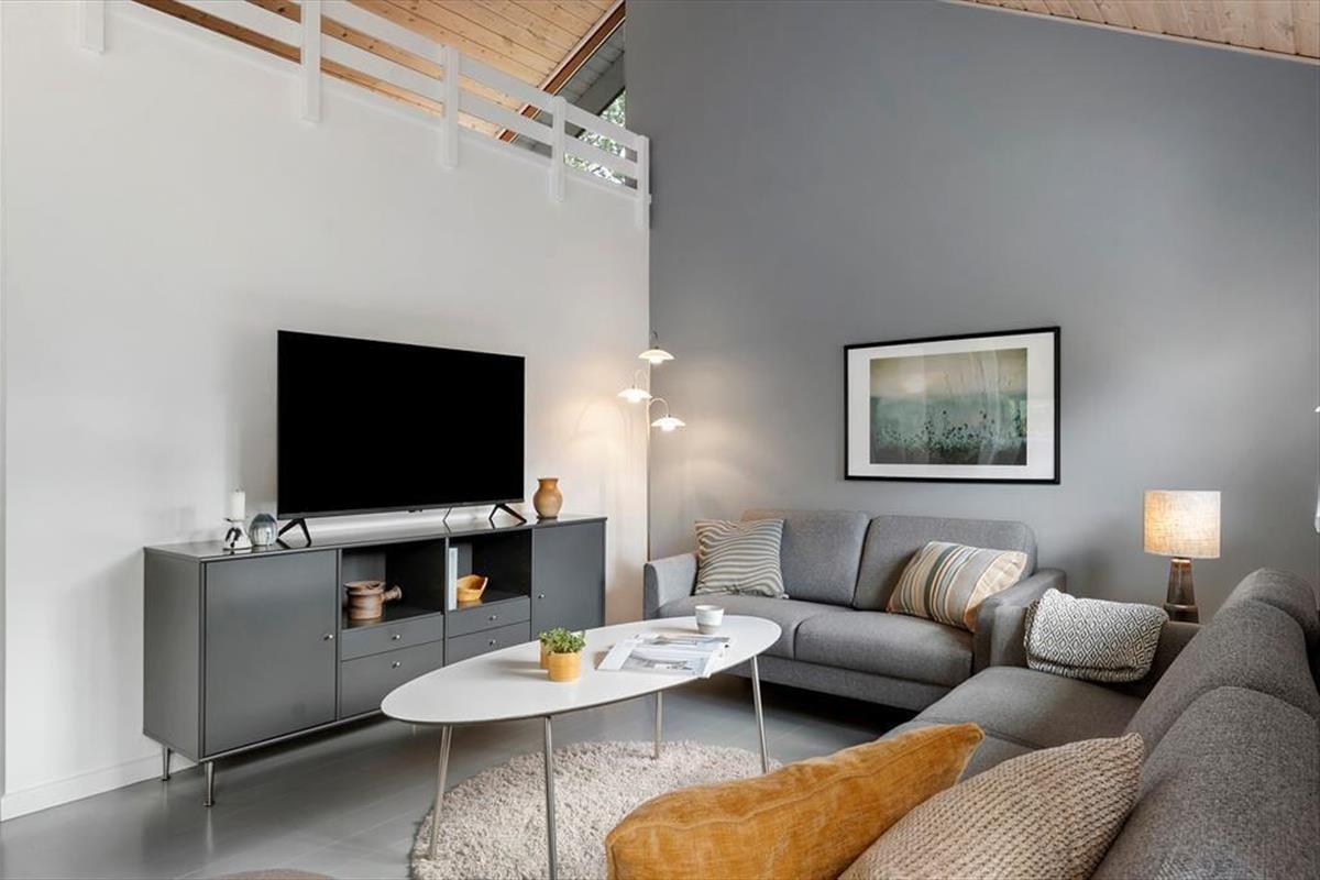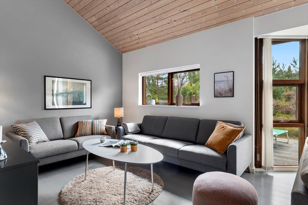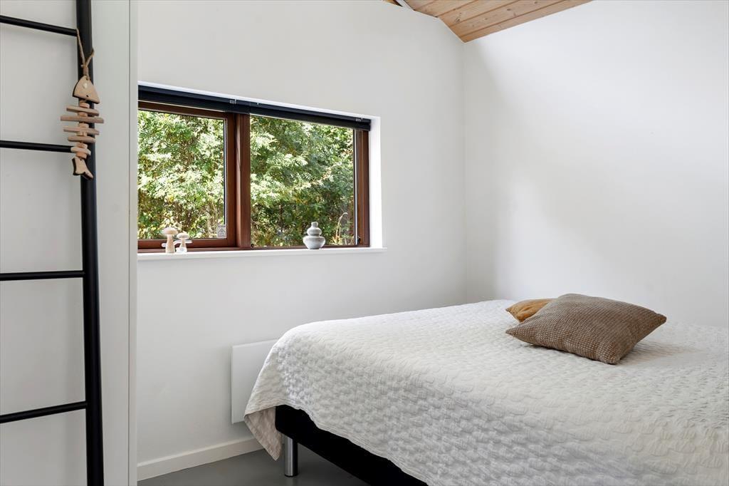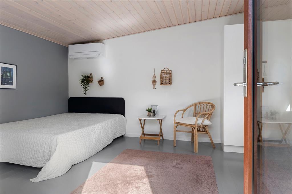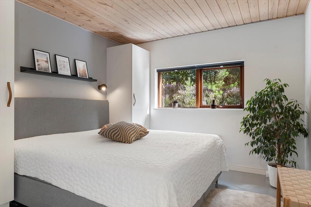 Når du træder ind i sommerhuset, mærker du straks den lyse og charmerende atmosfære, som indretningen emmer af. Rummene er skabt til hygge, samvær og feriestemning – uanset om I samles om en brætspilsaften, laver mad sammen i køkkenet eller bare synker ned i sofaen med en kop kaffe og en god bog. De store vinduespartier sørger for et smukt lysindfald og skaber en naturlig forbindelse til de grønne omgivelser udenfor, så du næsten føler, at naturen bliver en del af opholdsrummet. Som en ekstra detalje får du glæde af et hyggeligt anneks, hvor der både er indrettet med tv og en rar stemning – perfekt til teenagernes filmhygge eller som et fredeligt fristed for dig, der gerne vil nyde en stille stund.