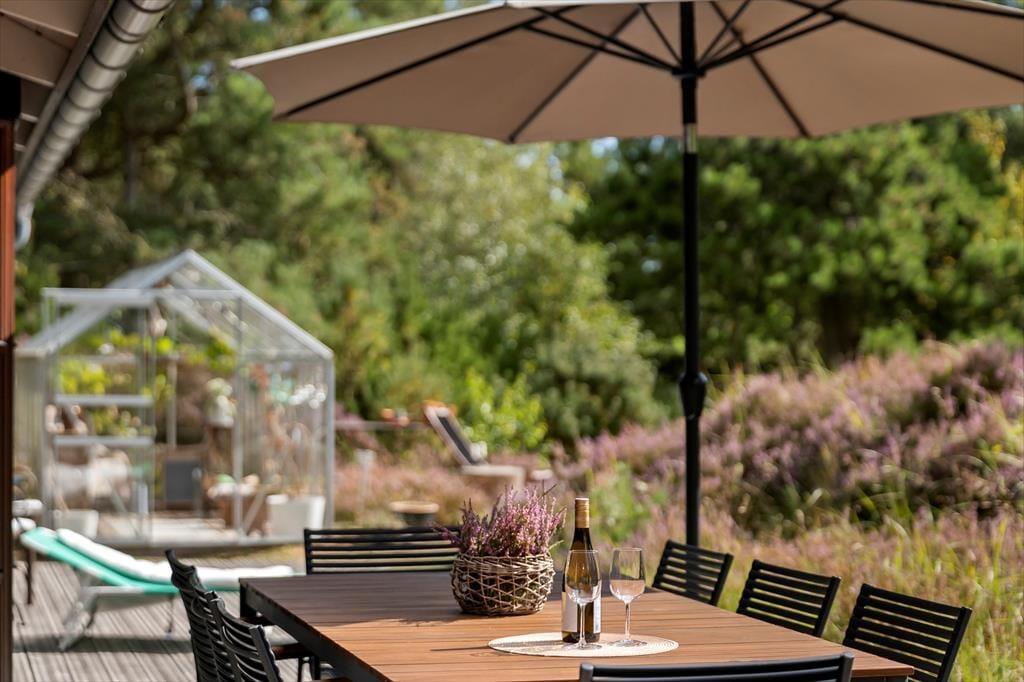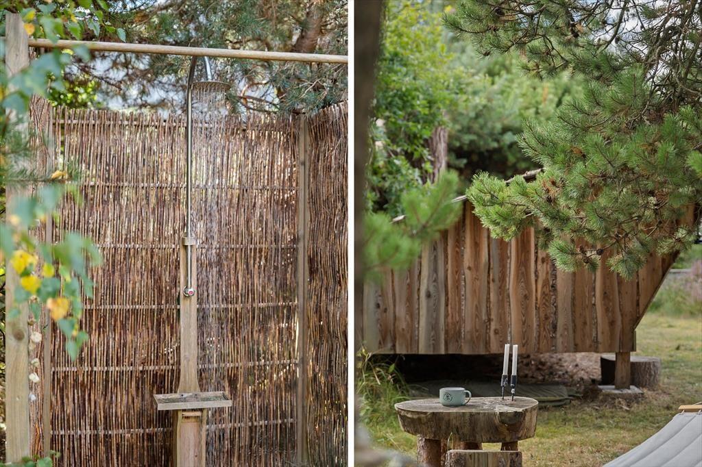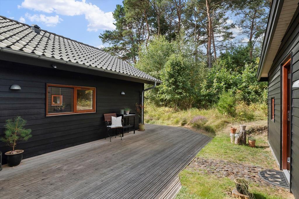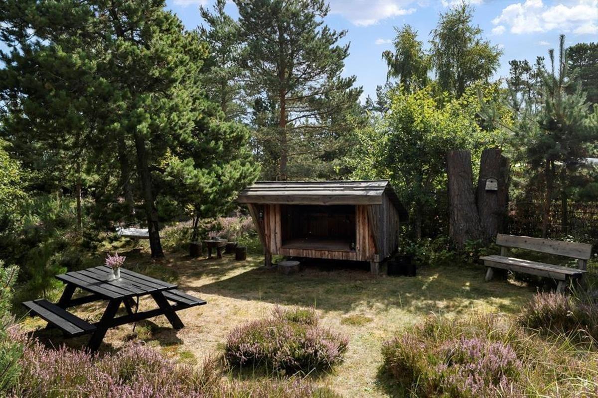 Sommerhusets terrasse slynger sig hele vejen rundt om huset, og det betyder, at du altid kan finde en plads i solen eller læ til en stille stund. Her er det oplagt at nyde dagens måltider i det fri, mens du lytter til fuglekvidder og mærker den friske havluft. Den store naturgrund byder på masser af små hyggelige kroge, hvor du kan slå dig ned med en kop te eller gemme dig lidt væk med en god bog. På grunden finder du også både shelter og udebruser, der tilsammen gør udelivet endnu mere autentisk og afslappende – hvad enten du har lyst til at sove under stjernerne eller skylle dig i det fri efter en tur på stranden. Børnene har samtidig masser af plads at boltre sig på, og når aftenen falder på, kan du tænde op i grillen og samle familien til en afslappet feriemiddag under åben himmel.