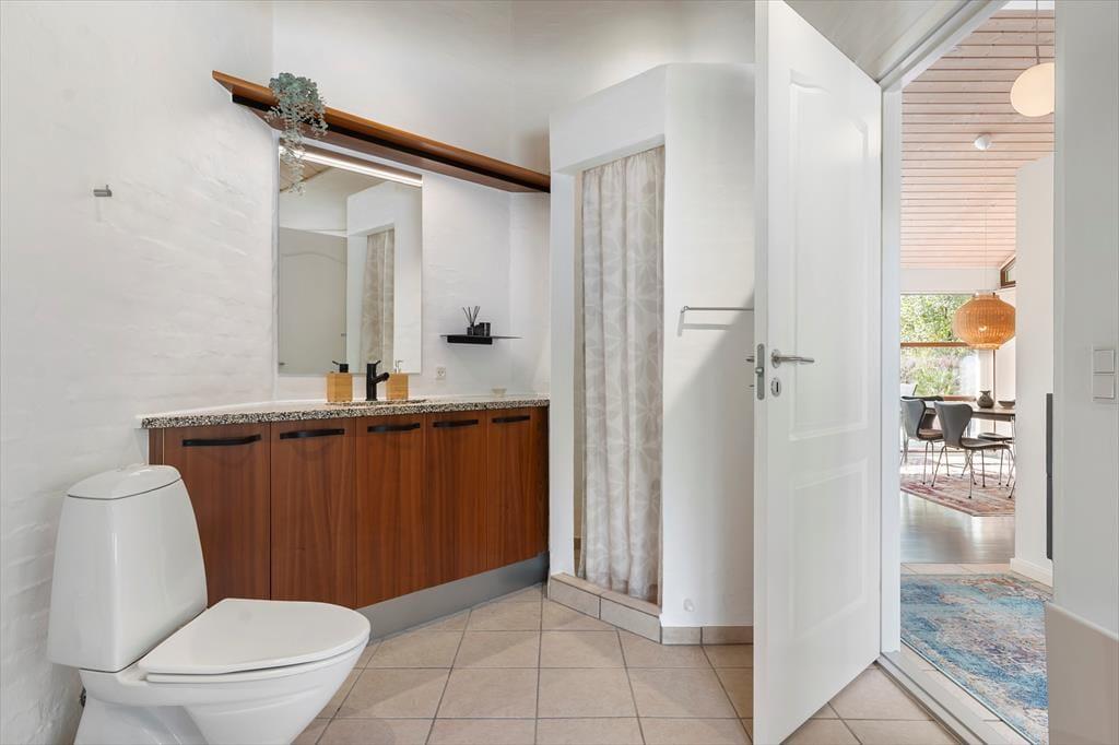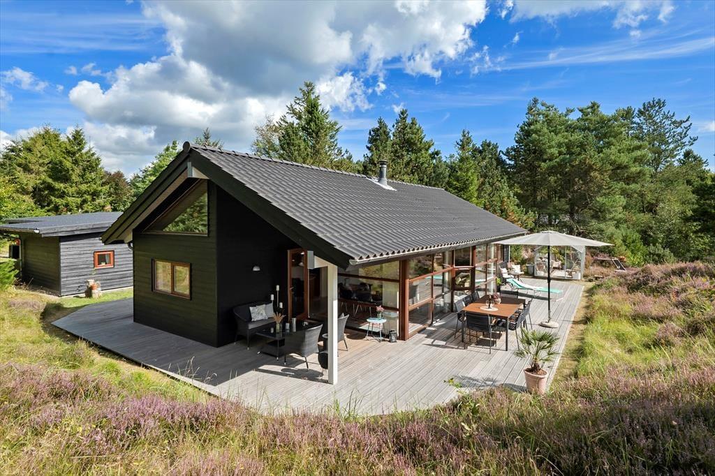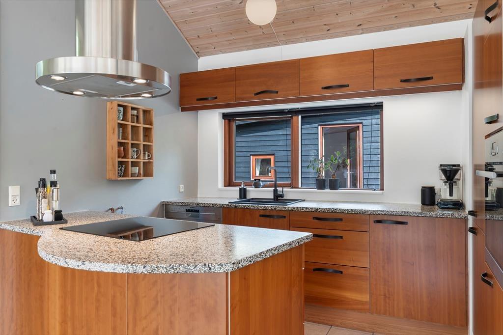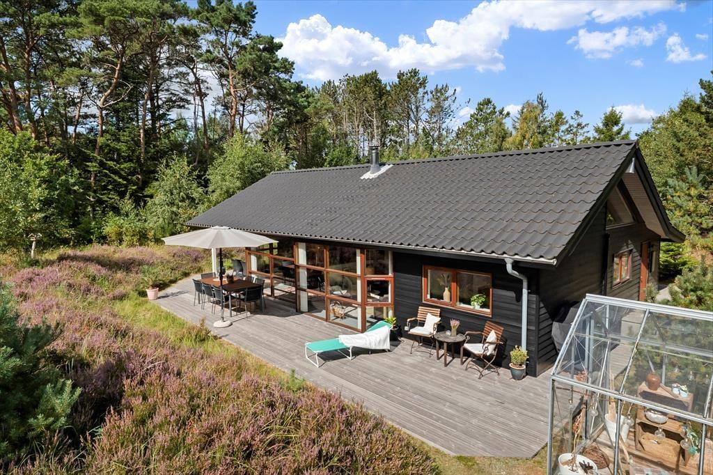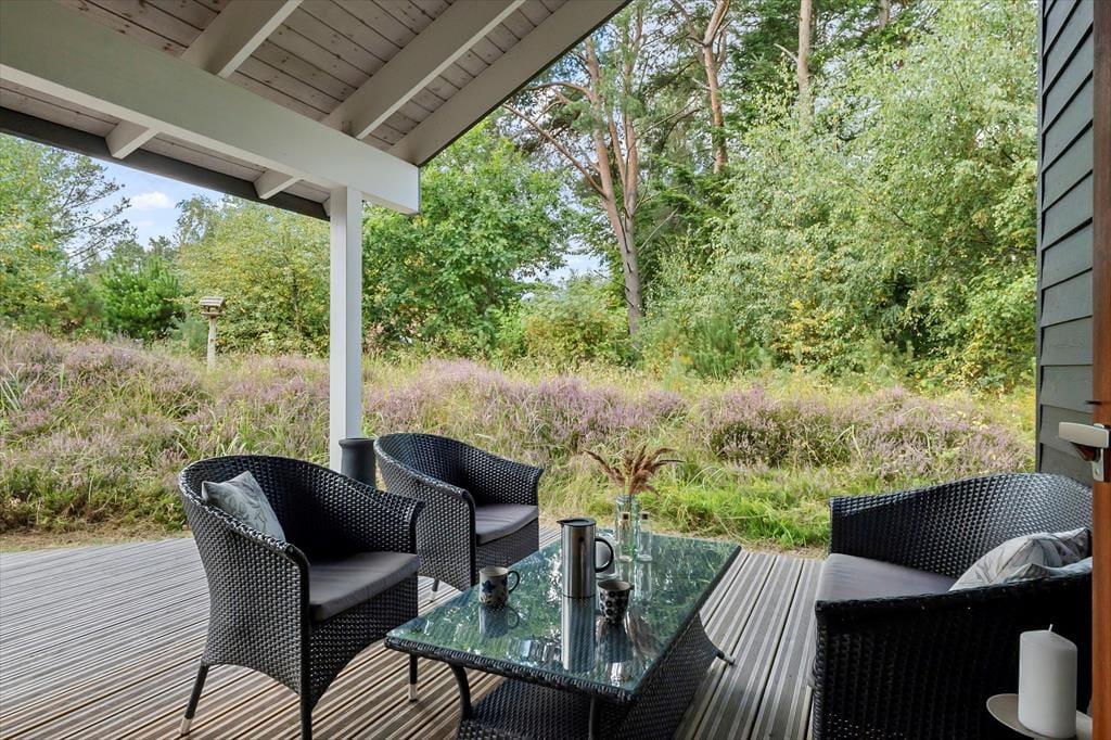 Sommerhusets terrasse slynger sig hele vejen rundt om huset, og det betyder, at du altid kan finde en plads i solen eller læ til en stille stund. Her er det oplagt at nyde dagens måltider i det fri, mens du lytter til fuglekvidder og mærker den friske havluft. Den store naturgrund byder på masser af små hyggelige kroge, hvor du kan slå dig ned med en kop te eller gemme dig lidt væk med en god bog. På grunden finder du også både shelter og udebruser, der tilsammen gør udelivet endnu mere autentisk og afslappende – hvad enten du har lyst til at sove under stjernerne eller skylle dig i det fri efter en tur på stranden. Børnene har samtidig masser af plads at boltre sig på, og når aftenen falder på, kan du tænde op i grillen og samle familien til en afslappet feriemiddag under åben himmel.