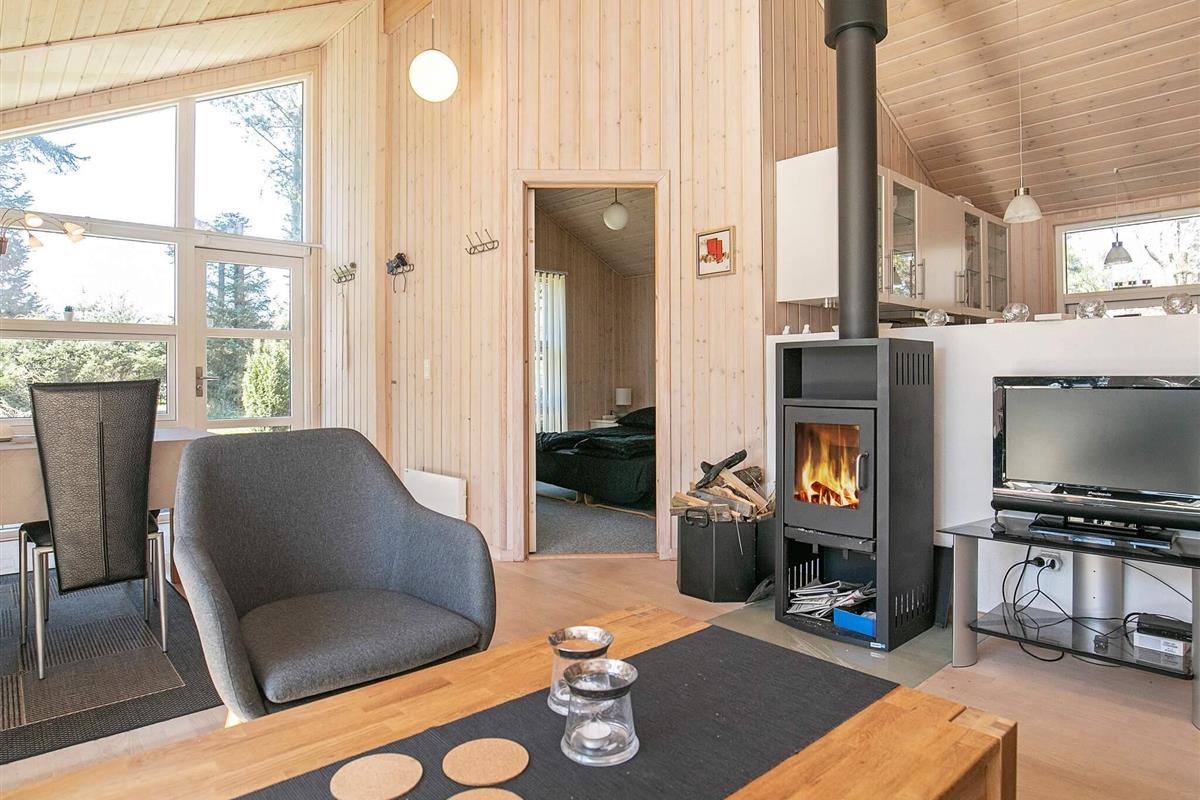 Das Ferienhaus verfügt über drei Schlafzimmer; eines mit zwei Kojen im Etagenbett, die anderen beiden jeweils mit einem Doppelbett. Dazu gibt es einen Schlafboden (Hems) oben im Haus. Das Badezimmer ist mit angenehmer Fußbodenheizung, ebenerdiger Dusche, Whirlpool und Dampfbad ausgestattet – ideal zum Entspannen nach einem Tag in der Natur. Das einladende, helle Wohnzimmer mit Kaminofen, Fernseher mit Chromecast und Internetanschluss lädt zum Verweilen ein.