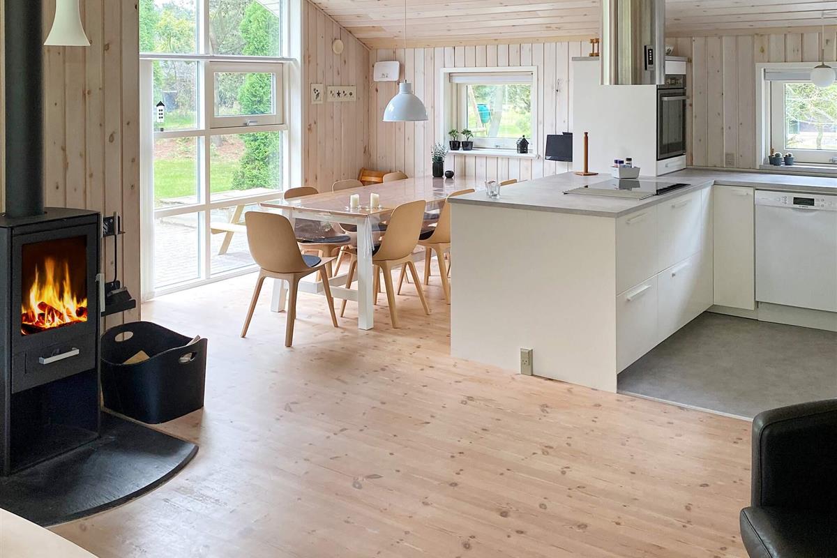 Wunderschön gelegenes Ferienhaus in Bisnap direkt am Wasser, in der Nähe von Hals. Das Haus verfügt über drei komfortable Schlafzimmer, zwei davon mit ¾-Betten und das dritte mit einem Doppelbett. Herzstück des Hauses ist der helle und einladende Wohnbereich, der das Wohnzimmer mit der offenen Wohnküche verbindet. Ein Holzofen sorgt für gemütliche Atmosphäre. Zur modernen Ausstattung gehören Kabel-TV, Highspeed-Glasfaser-Internet und Fußbodenheizung im Badezimmer und im Eingangsbereich.