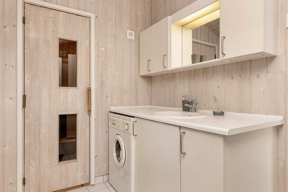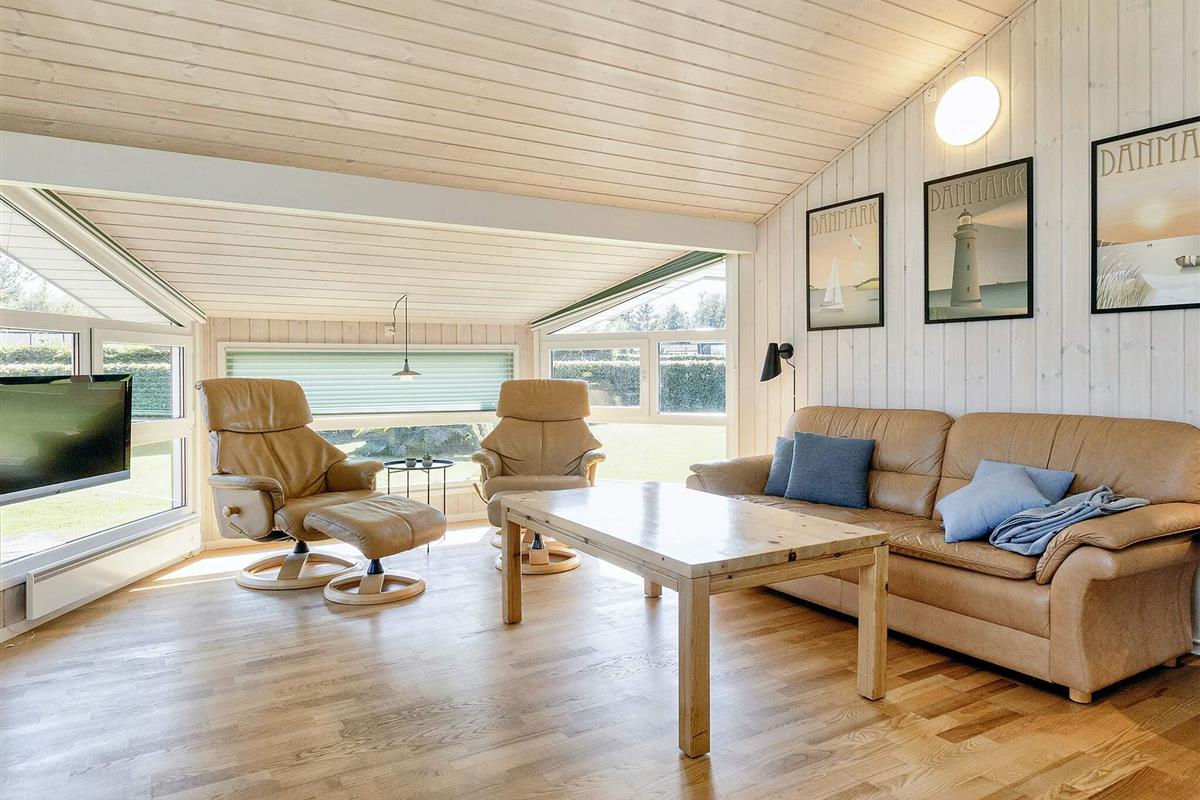 Ferienhaus mit Whirlpool und Sauna, nur etwa 100 m von der Küste bei Koldkær gelegen. Von der Terrasse haben Sie ein wenig Meerblick. Das Haus verfügt über drei Schlafzimmer. Im Schlafzimmer befindet sich ein Doppelbett (zwei zusammengestellte Einzelbetten). Beide sind mit Erhebung. Im Raum neben dem Schlafzimmer befinden sich zwei Einzelbetten - beide mit Erhöhung. Es gibt auch einen Hems mit Matratzen.